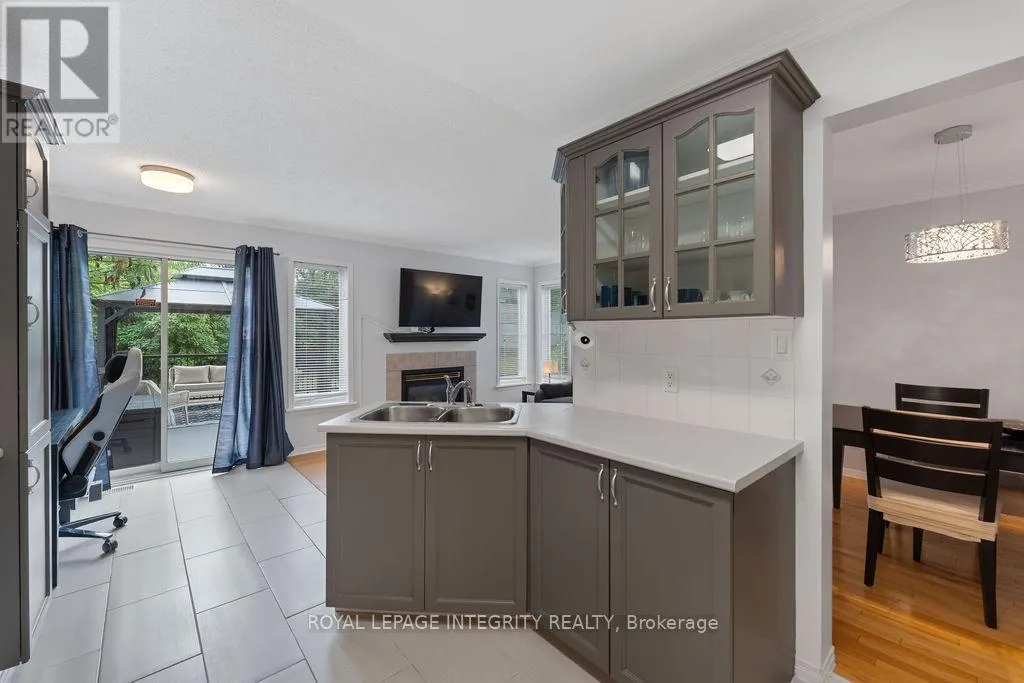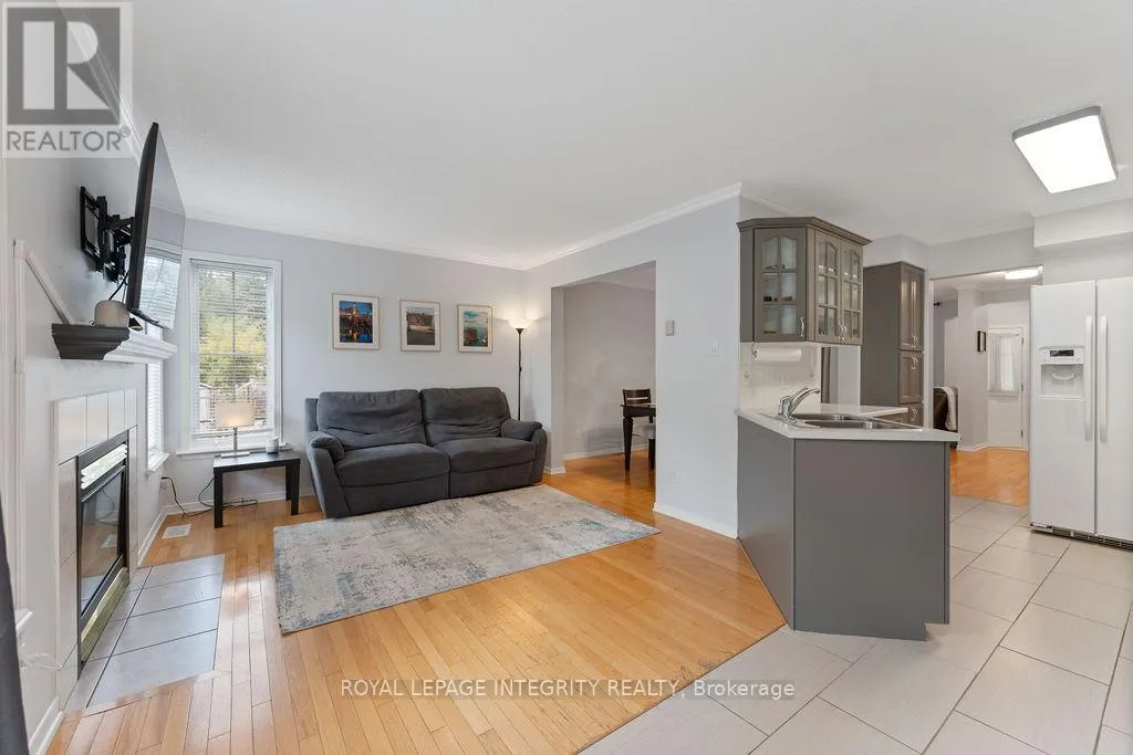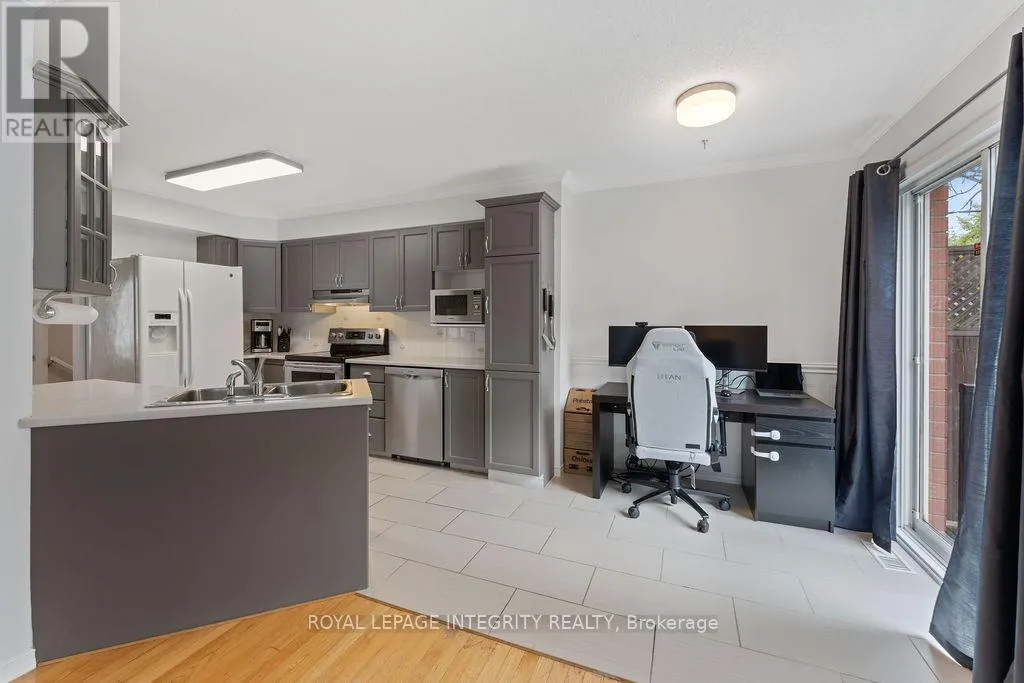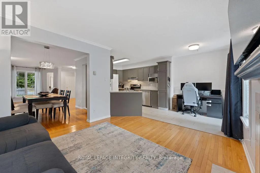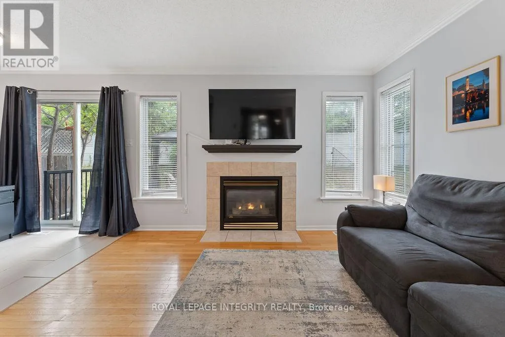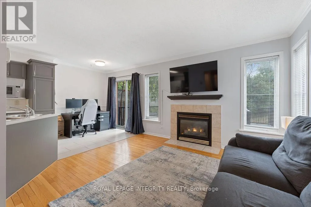 Cross Streets: Cambray Lane and Bishops Mills Way. ** Directions: From Campeau Drive turn into the Village Green on Colchester Square, right on Edenvale Drive, left on Kettleby St, right on Bishops Mills Way. Welcome to this spacious 3-bed, 4-bath end-unit townhouse, ideally located in Kanata's family-friendly 'Village Green' neighborhood and just steps from Ed Hollyer Park. A long driveway leads to a welcoming covered front porch. Inside, the main level offers an open-concept layout featuring a bright living room, dining area, and a cozy family room complete with a natural gas fireplace. The well-appointed galley kitchen provides ample cabinetry and counter space, with convenient access from the main foyer or its own eating area. Step out from the kitchen eating area through patio doors to a large, expansive composite deck (21'x16') w/natural gas hookup for your barbeque, ideal for outdoor entertaining. Upstairs, you'll find three generously sized bedrooms, including a 4-piece ensuite bathroom boasting a separate shower and a large soaker tub. The main 4-piece bathroom is conveniently located near the 2nd and 3rd bedrooms. Good closet space completes the second level. The fully finished lower level adds even more living space, with a large recreation room, a dedicated office, a 3-piece bathroom, a large laundry room, + storage areas! The single attached garage does provide inside access. Recent updates include: composite deck-2023; natural gas line on deck in backyard-2023; natural gas furnace-2017; central air 2015; shingles 2013;+++! (id:27476)