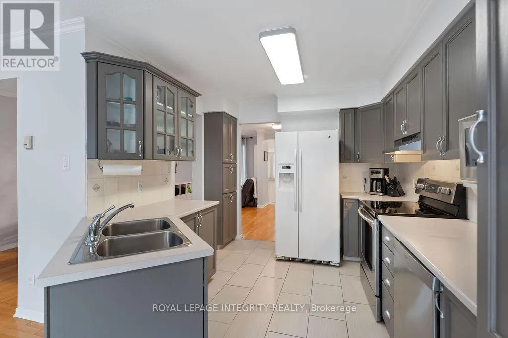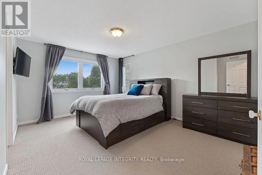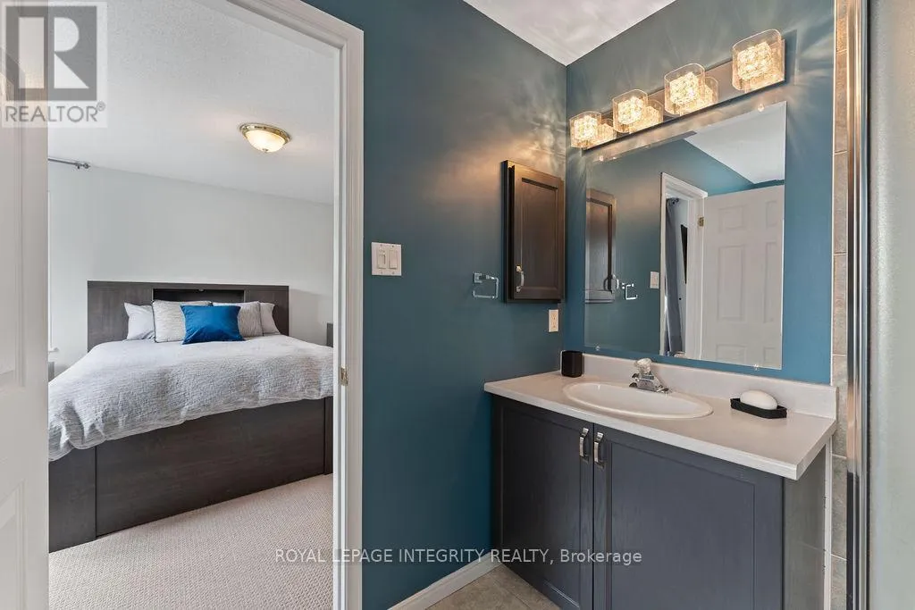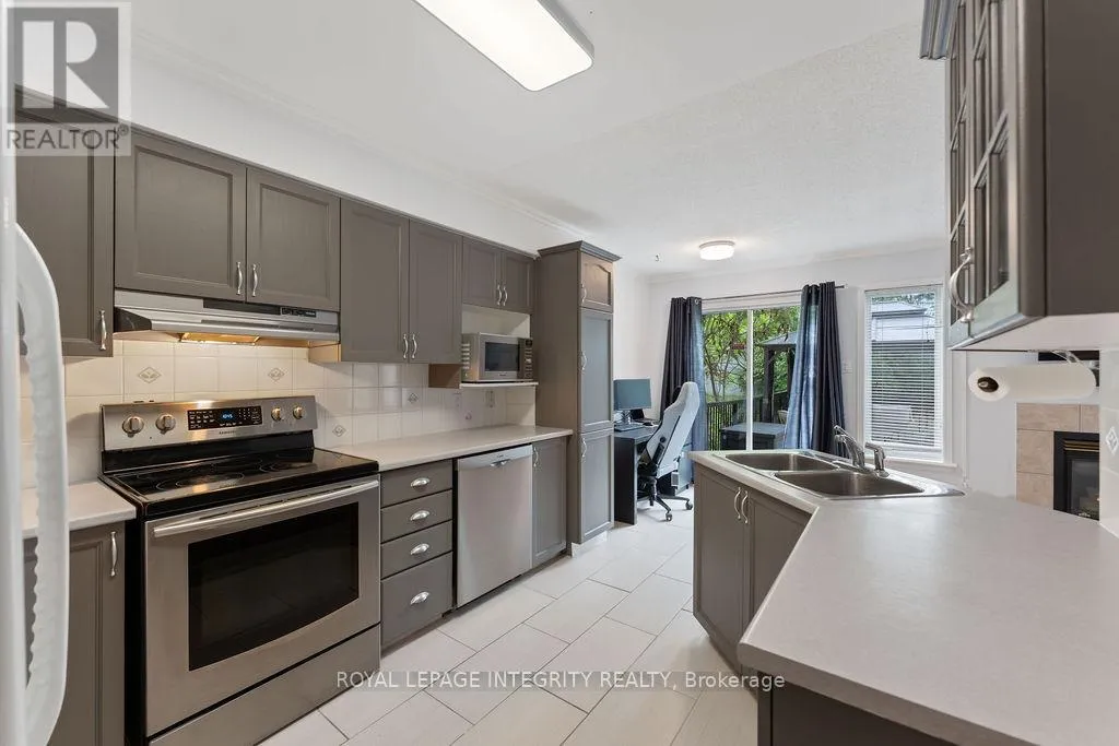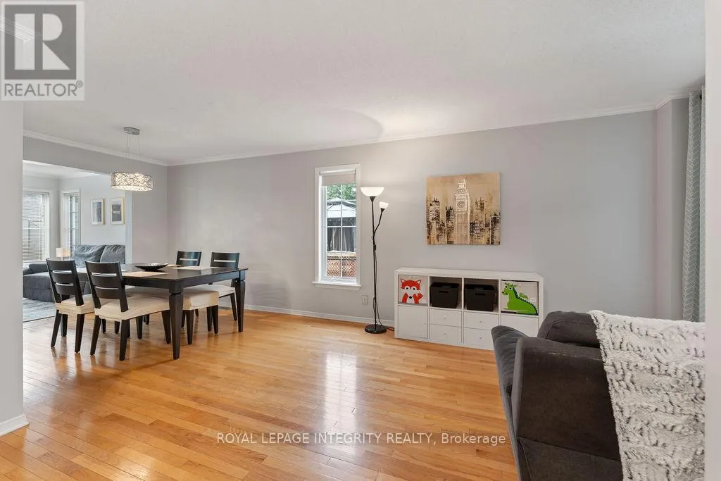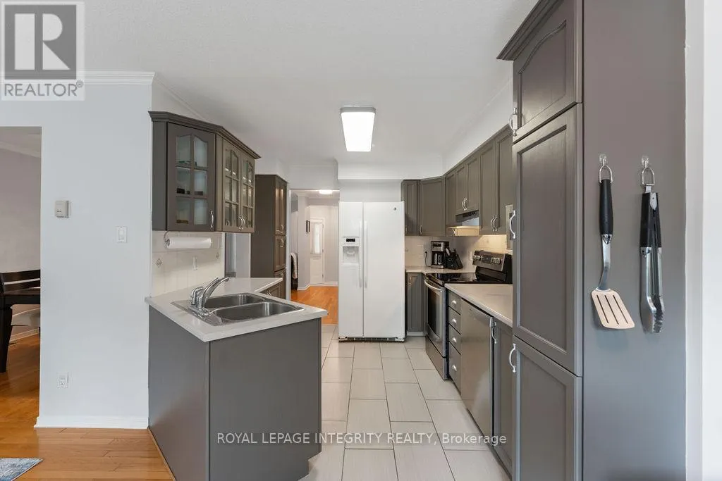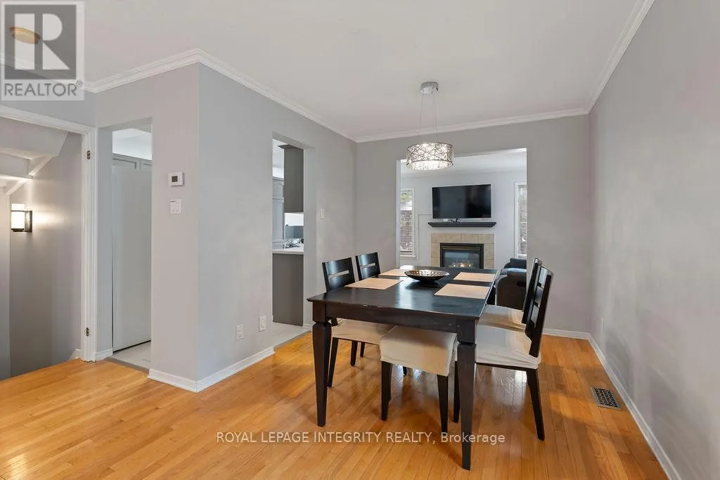 Cross Streets: Cambray Lane and Bishops Mills Way. ** Directions: From Campeau Drive turn into the Village Green on Colchester Square, right on Edenvale Drive, left on Kettleby St, right on Bishops Mills Way. Welcome to this spacious 3-bed, 4-bath end-unit townhouse, ideally located in Kanata's family-friendly 'Village Green' neighborhood and just steps from Ed Hollyer Park. A long driveway leads to a welcoming covered front porch. Inside, the main level offers an open-concept layout featuring a bright living room, dining area, and a cozy family room complete with a natural gas fireplace. The well-appointed galley kitchen provides ample cabinetry and counter space, with convenient access from the main foyer or its own eating area. Step out from the kitchen eating area through patio doors to a large, expansive composite deck (21'x16') w/natural gas hookup for your barbeque, ideal for outdoor entertaining. Upstairs, you'll find three generously sized bedrooms, including a 4-piece ensuite bathroom boasting a separate shower and a large soaker tub. The main 4-piece bathroom is conveniently located near the 2nd and 3rd bedrooms. Good closet space completes the second level. The fully finished lower level adds even more living space, with a large recreation room, a dedicated office, a 3-piece bathroom, a large laundry room, + storage areas! The single attached garage does provide inside access. Recent updates include: composite deck-2023; natural gas line on deck in backyard-2023; natural gas furnace-2017; central air 2015; shingles 2013;+++! (id:27476)