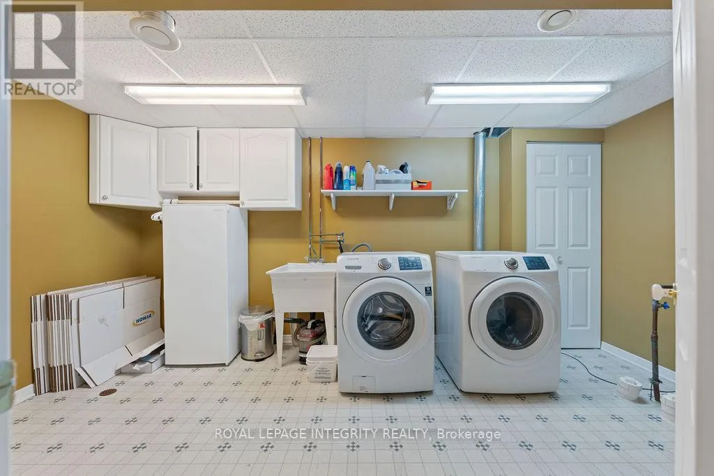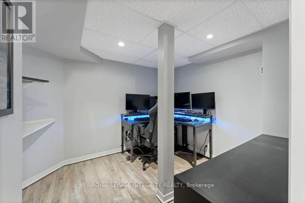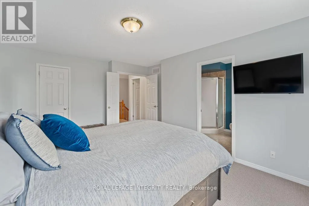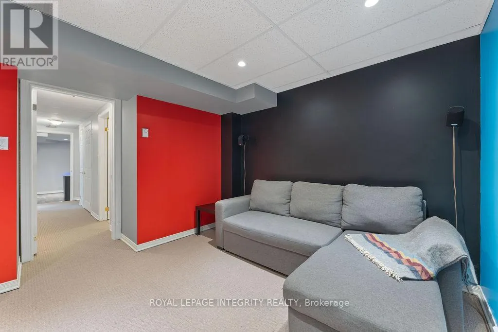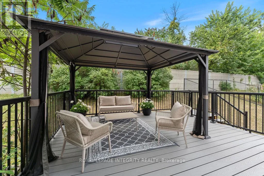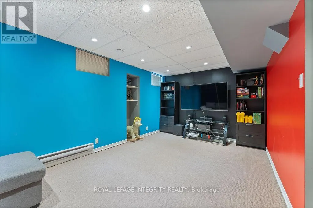 Cross Streets: Cambray Lane and Bishops Mills Way. ** Directions: From Campeau Drive turn into the Village Green on Colchester Square, right on Edenvale Drive, left on Kettleby St, right on Bishops Mills Way. Welcome to this spacious 3-bed, 4-bath end-unit townhouse, ideally located in Kanata's family-friendly 'Village Green' neighborhood and just steps from Ed Hollyer Park. A long driveway leads to a welcoming covered front porch. Inside, the main level offers an open-concept layout featuring a bright living room, dining area, and a cozy family room complete with a natural gas fireplace. The well-appointed galley kitchen provides ample cabinetry and counter space, with convenient access from the main foyer or its own eating area. Step out from the kitchen eating area through patio doors to a large, expansive composite deck (21'x16') w/natural gas hookup for your barbeque, ideal for outdoor entertaining. Upstairs, you'll find three generously sized bedrooms, including a 4-piece ensuite bathroom boasting a separate shower and a large soaker tub. The main 4-piece bathroom is conveniently located near the 2nd and 3rd bedrooms. Good closet space completes the second level. The fully finished lower level adds even more living space, with a large recreation room, a dedicated office, a 3-piece bathroom, a large laundry room, + storage areas! The single attached garage does provide inside access. Recent updates include: composite deck-2023; natural gas line on deck in backyard-2023; natural gas furnace-2017; central air 2015; shingles 2013;+++! (id:27476)