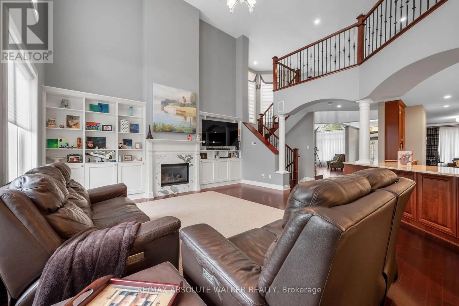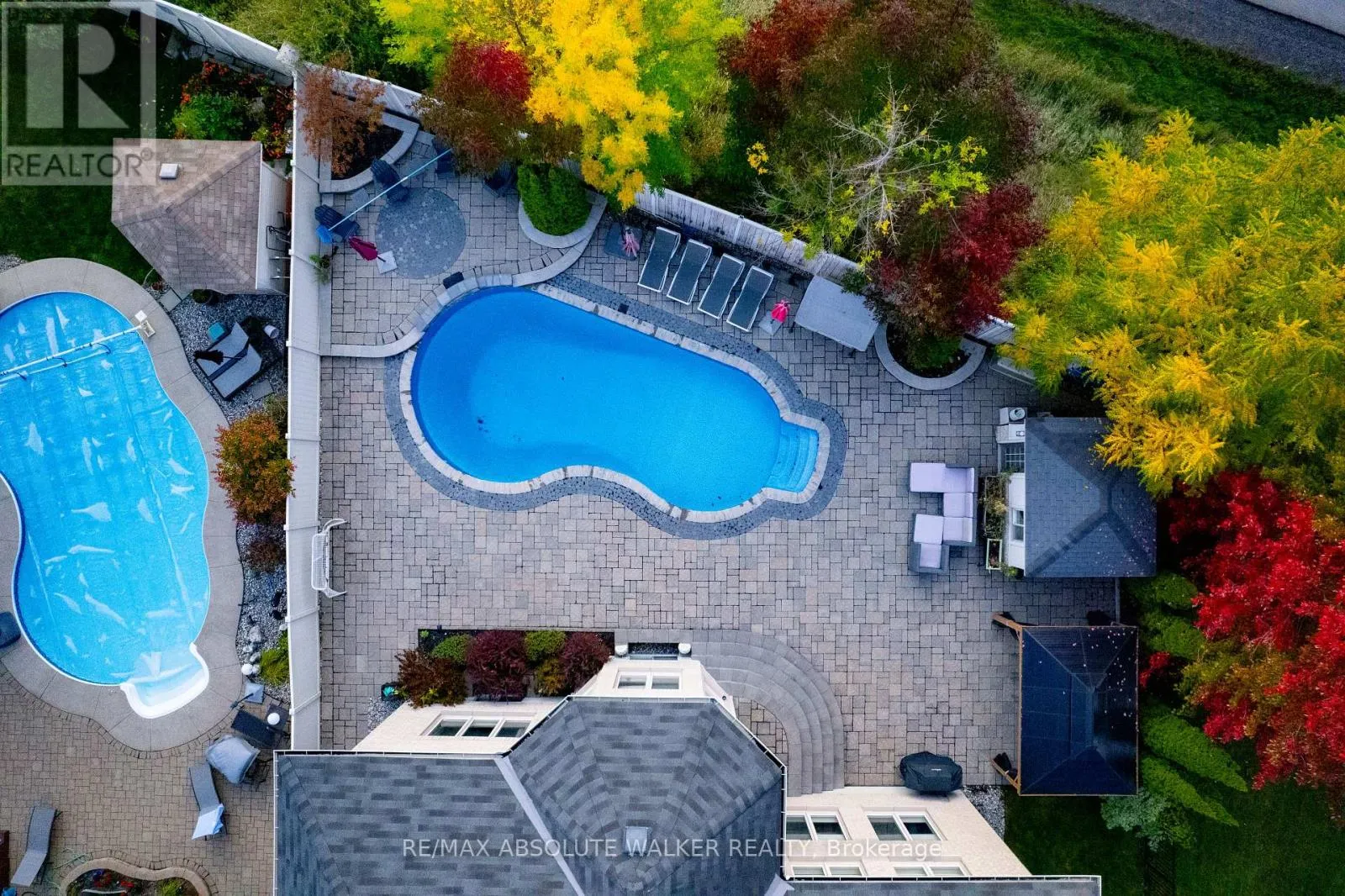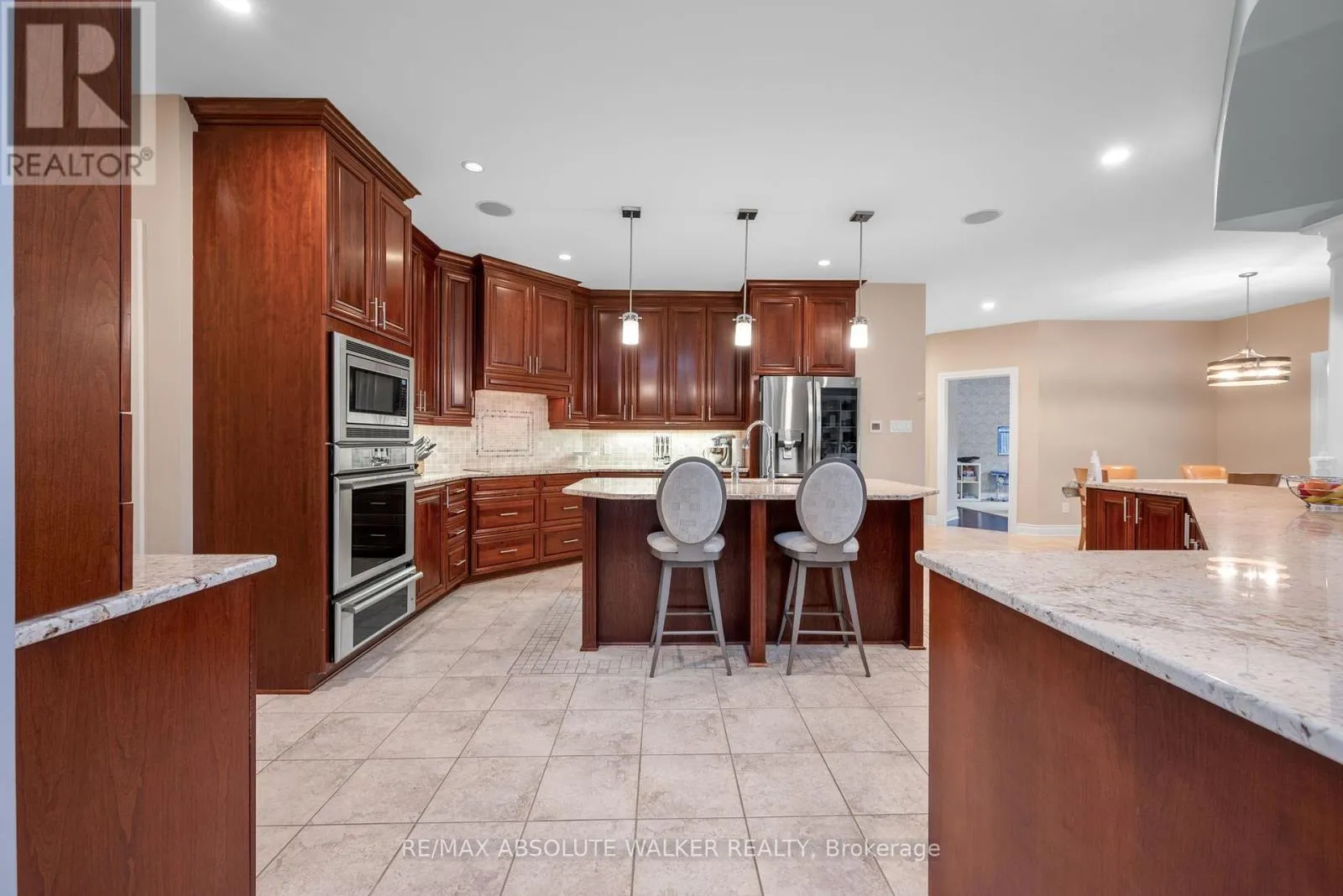 Prince Of Wales to Heathwood Gate. Left on Tradewinds. Welcome to this stunning Barrhaven residence offering over 5,000 sq. ft. of above-grade living space, designed for families who value both comfort and room to grow. A grand entrance with a striking staircase and gleaming Brazilian Cherry hardwood sets the tone for this elegant home. Attention to detail is evident throughout the principal rooms with crown moulding, coffered ceilings, pot lighting, and built-in speakers.The epicurean kitchen boasts rich Cherry wood cabinetry, granite counters, and a double island, seamlessly connected to the eat-in area and sunroom overlooking the private backyard oasis. Expansive living and dining areas are filled with natural light, while a warm and inviting family room provides the perfect gathering space.A thoughtful main-floor layout includes a bedroom that can double as a flexible office space, paired with a full bathroom an ideal setup for multi-generational living or guests. Upstairs, you'll find four generously sized bedrooms, including a luxurious primary suite with a walk-in closet and spa-inspired ensuite, offering the perfect retreat at the end of the day.The fully finished basement is exceptionally large and versatile, featuring another bedroom and full bathroom alongside endless options for a home theatre, gym, office, guest suite, games room, or hobby space.Step outside to enjoy your own backyard paradise, complete with a large inground pool perfect for summer entertaining and relaxation. Situated on a sizable lot in a sought-after Barrhaven neighbourhood, this home is close to excellent schools, shopping, parks, and transit making it a rare opportunity to own a true family estate within the city. (id:27476)
