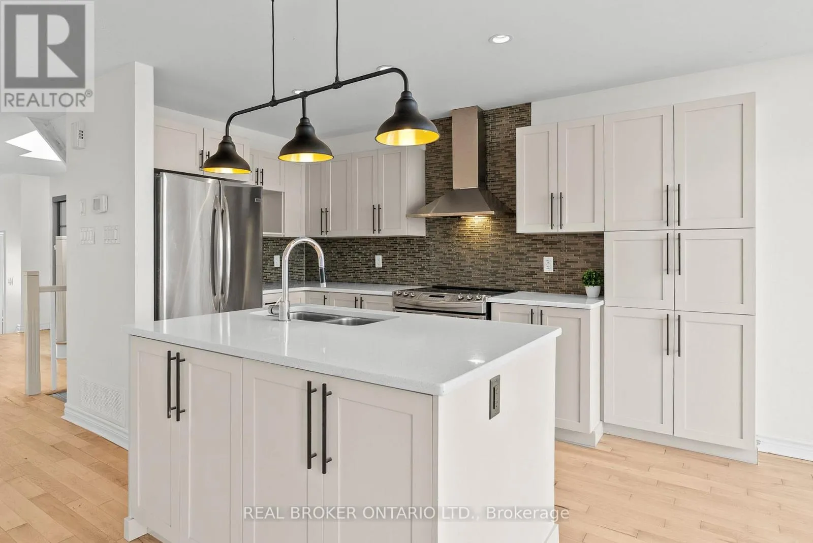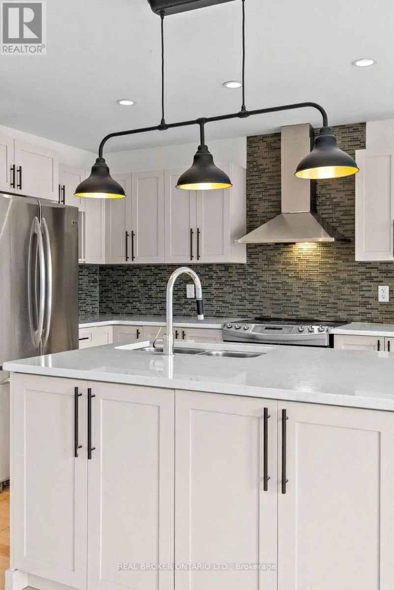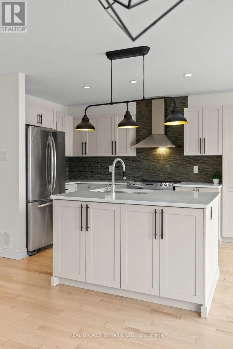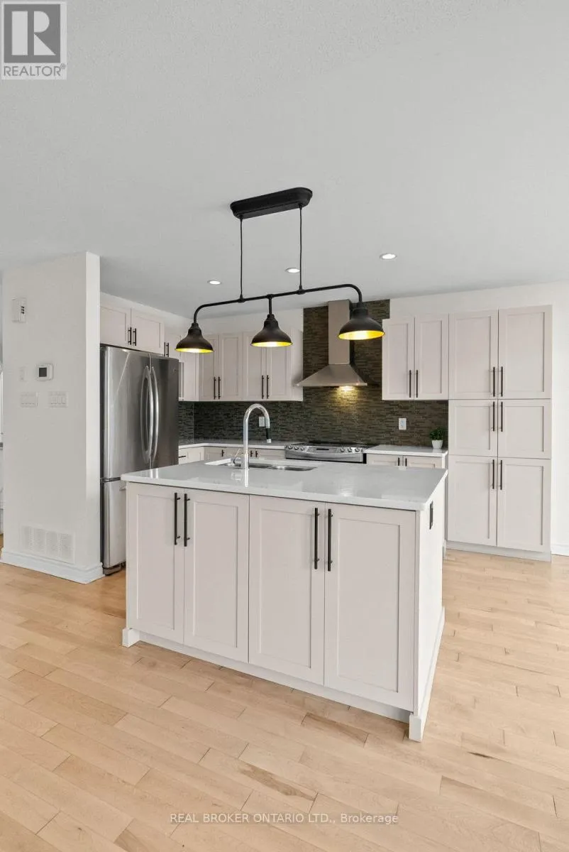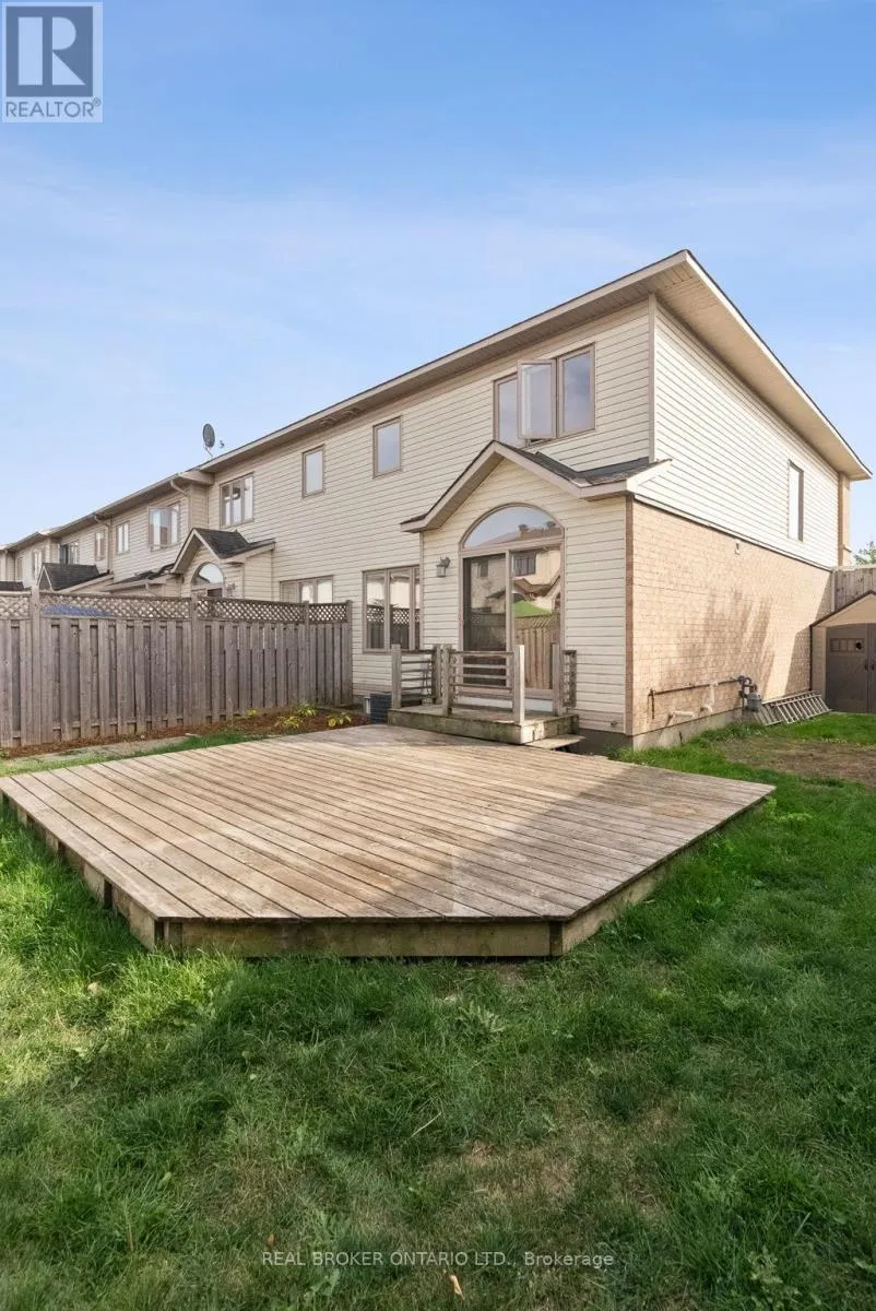 Cross Streets: Longfields Drive and Paul Metivier Drive. ** Directions: South on Longfields Dr, Left on Chapman Mills Dr, Right on Leamington Way, Right on Garrity Crescent. Beautifully Updated End-Unit Townhome in Barrhaven! Welcome to this immaculate 3 bedroom, 2.5 bathroom end-unit, perfectly situated in one of Barrhaven's most sought after neighbourhoods Chapman Mills. From the moment you step inside, you'll notice the fresh, modern feel of the home - recently painted throughout, with refinished hardwood floors that flow seamlessly across the main level.The spacious, open-concept floor plan is anchored by a newly renovated kitchen, featuring a large island, upgraded cabinetry, and stainless steel appliances, perfect for both everyday living and entertaining. A sweeping hardwood staircase leads to the second level, where you'll find three generously sized bedrooms, including a primary retreat with a walk-in closet and private ensuite.The fully finished lower level offers an oversized family room with a cozy gas fireplace, rare leather plank flooring, a partial bath, and plenty of storage. Outdoors, enjoy the oversized lot with a large fully fenced backyard with deck, ideal for summer gatherings and family fun. Steps from schools, parks, shopping, and public transit, this home offers the perfect blend of style, comfort, and convenience. Move in ready and designed to impress! (id:27476)