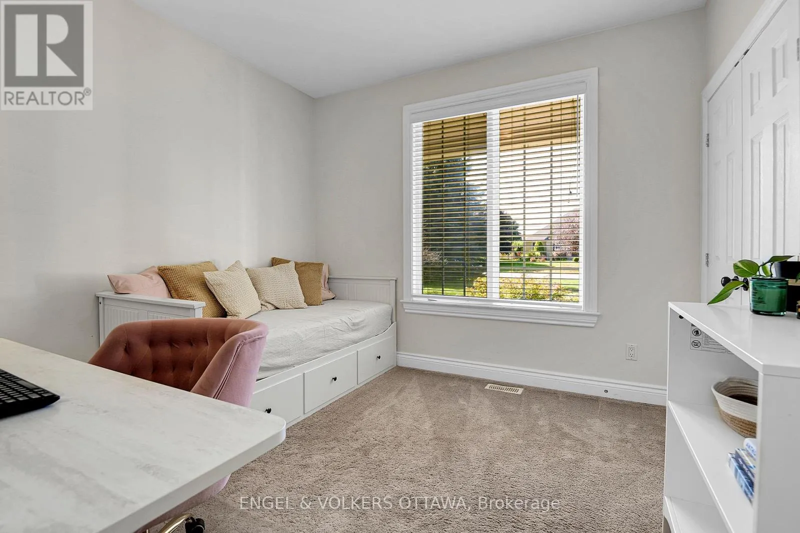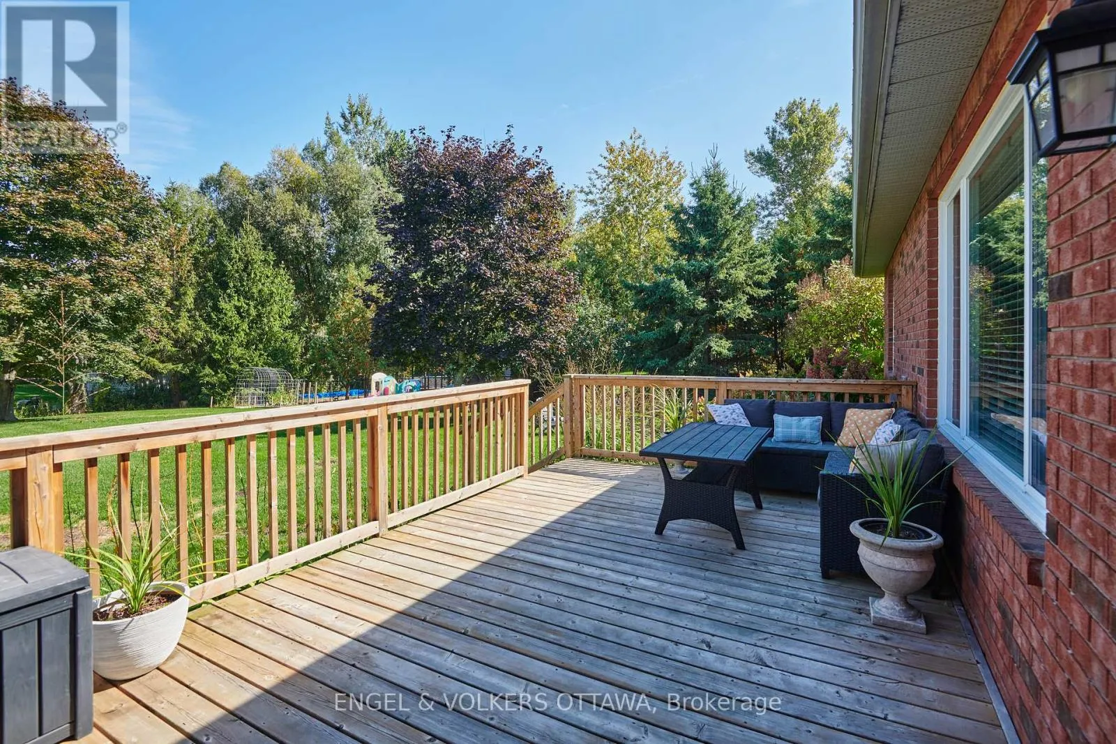 Cross Streets: Black Stallion Way & Stableview Way. ** Directions: From Apple Orchard Road, turn onto Spartan Grove Street, Black Stallion Way and then Stableview Way. Picture perfect bungalow offers fine country living on over half an acre (0.6). This red brick beauty greets you with the warmth and welcome of a vast front porch. Perfect for morning coffee, or an afternoon beverage. The spacious dining room allows for formal dinners, an updated kitchen offers granite counters, breakfast bar, ample storage and separate wine fridge for added function. All flowing seamlessly into the living room for spending time with family. Primary suite is on the left wing of the home offering a large walk in closet and private 4 piece bath. In the right wing of the house youll find two good sized bedrooms and additional full bath. Lower level provides ample storage space as well as 3 bedrooms/flex rooms, a full bath, gym and rec space! This home is move in ready with many upgrades including: Furnace (2021), Iron/Sulpher Filter (2021), Deck (2022), new shed roof (2024), Fridge (2024), Bar Fridge (2024). Additional inclusions: Generac Generator, Heated double car garage, gas BBQ hook-up, in-ground irrigation system throughout property, main floor laundry, storage shed, 70" mounted TV in basement family room. (id:27476)