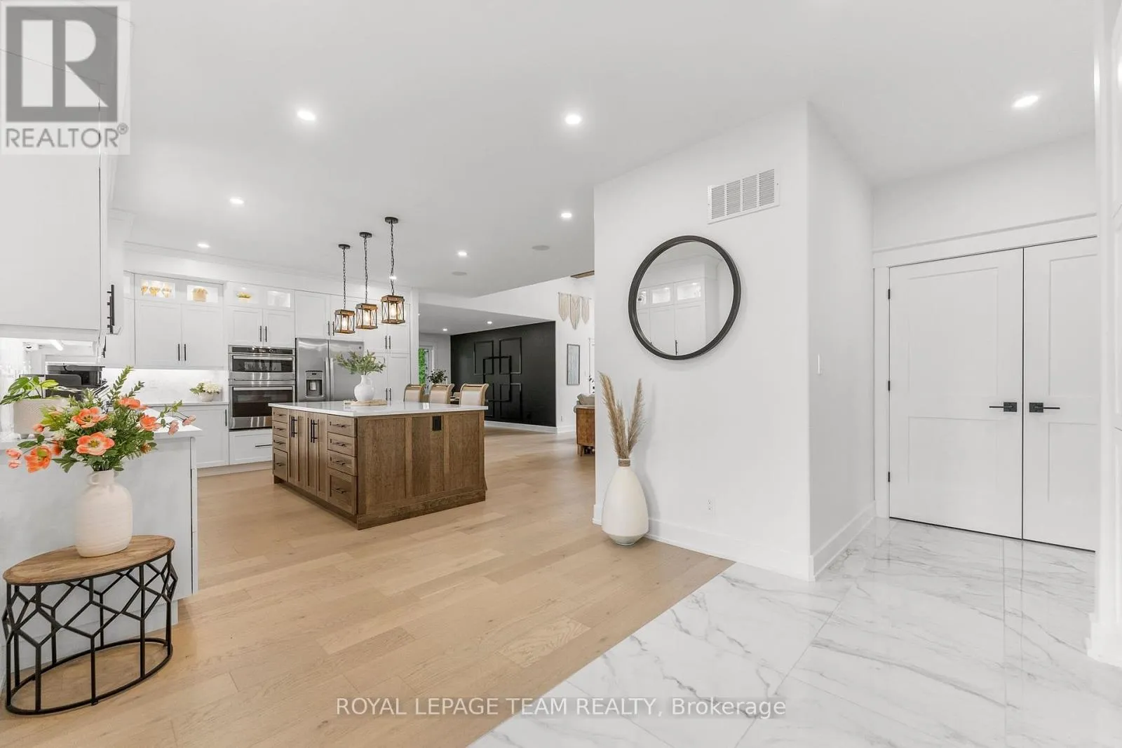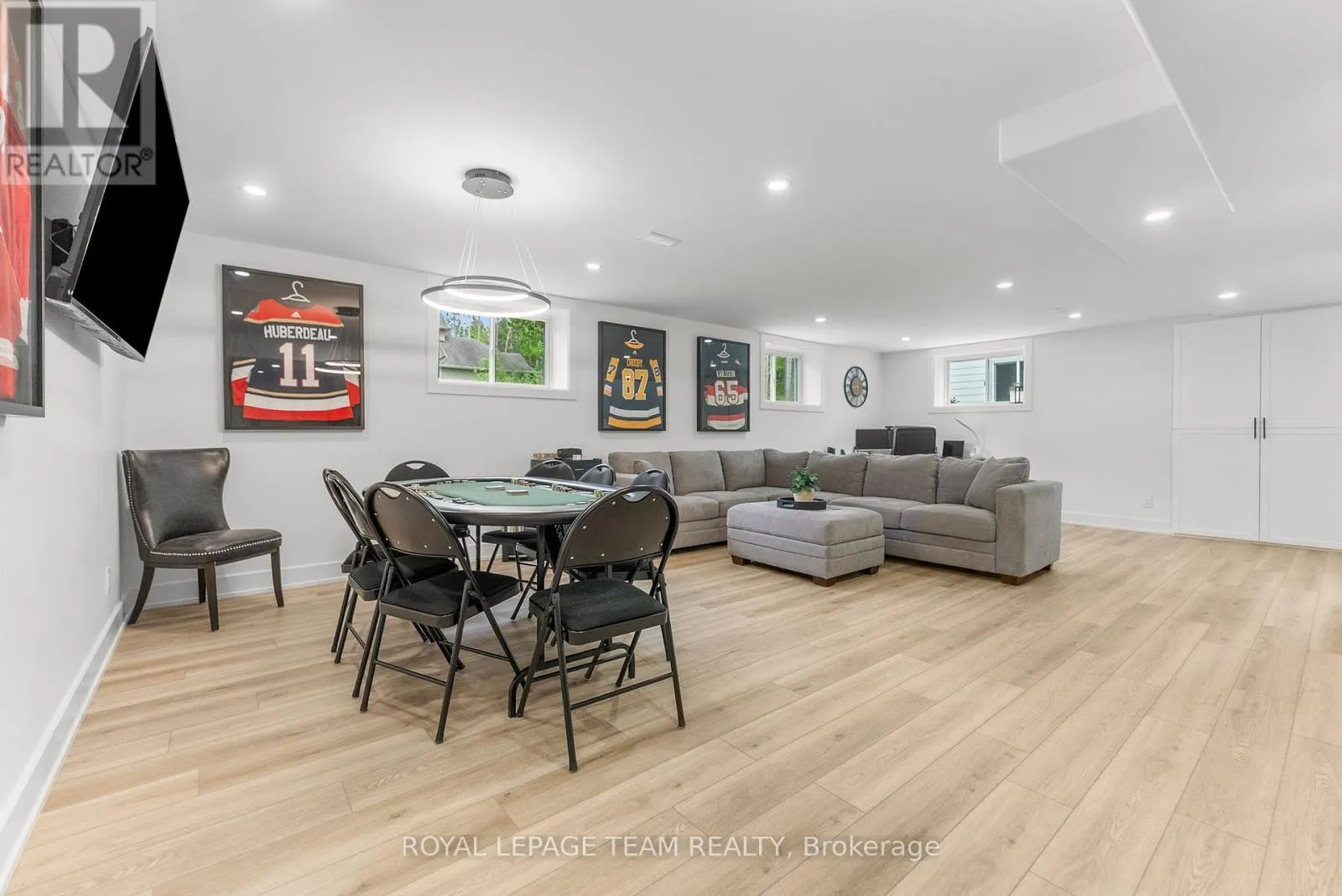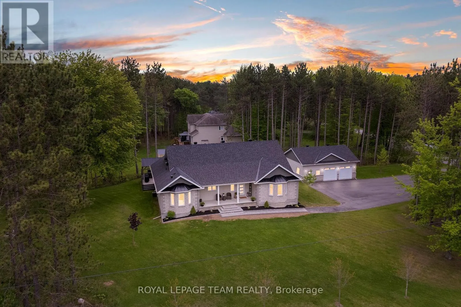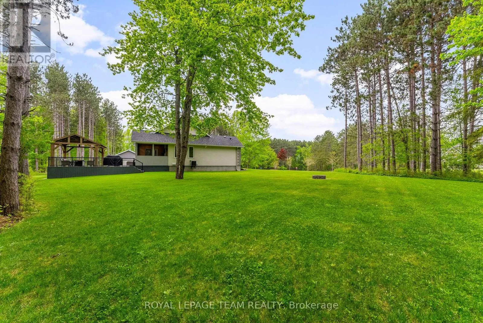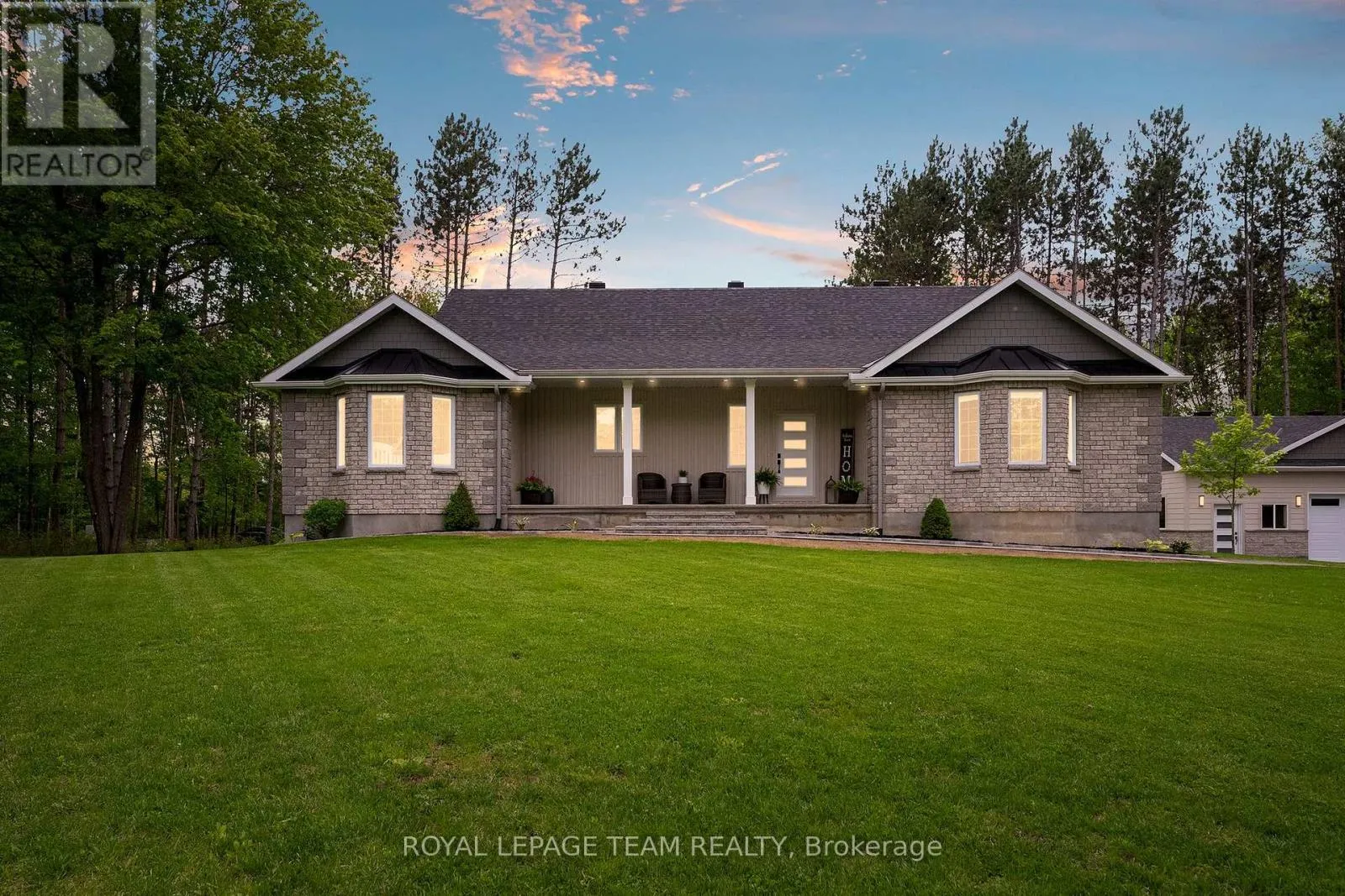 Cross Streets: Pine Valley Ct / Royal Troon Ln. ** Directions: From March Road, turn right to Dunrobin Road, right on Vance's Side Rd, left on Greenland Rd, left on Pine Valley Ct. and right on Royal Troon Ln. Welcome to this CUSTOM-finished, show-stopping BUNGALOW where luxury and lifestyle collide on a pristine 1-ACRE lot, just steps from the prestigious Eagle Creek Golf Club in beautiful Dunrobin - just 35 minutes from downtown Ottawa and 20 from Kanata. From the moment you arrive, you are greeted by the OVERSIZED DRIVEWAY and detached 2-car garage with a heated workshop. Inside the home, premium oak engineered hardwood and sleek marble-gloss tiles guide you through an OPEN-CONCEPT masterpiece. The kitchen is a chefs dream, featuring custom cabinetry with built-in lighting, a MASSIVE island perfect for gathering, a pot filler faucet for added convenience, and high-end stainless steel appliances. The dining area shines with a built-in hutch & bold ACCENT wall, while the living room stuns with CATHEDRAL ceilings, seamlessly flowing to a screened-in porch, ideal for entertaining or watching the game. Step onto the oversized COMPOSITE DECK, soak in the HOT TUB, and embrace outdoor living like never before. The main-level primary suite is a retreat of its own, boasting a SPA-INSPIRED 5-piece ensuite with heated marble flooring, a glass stand-up shower, a luxurious soaker tub, DUAL SINKS, and a walk-in closet. Another spacious bedroom and full bath complete this level. And yes, theres even your very own indoor GOLF SIMULATOR room. Practice year-round, rain or shine on this state of the art system. Downstairs, luxurious comfort continues - enjoy a FULLY FINISHED rec room with two distinct living areas, a dedicated exercise room, a third bedroom, and a full bath. This isnt just a home it's a lifestyle - and it's waiting for you. Every detail found at this property has been meticulously designed and thoughtfully crafted from doors & hardware to lighting, flooring, paint and cabinetry. 24 hour irrevocable on all offers. (id:27476)