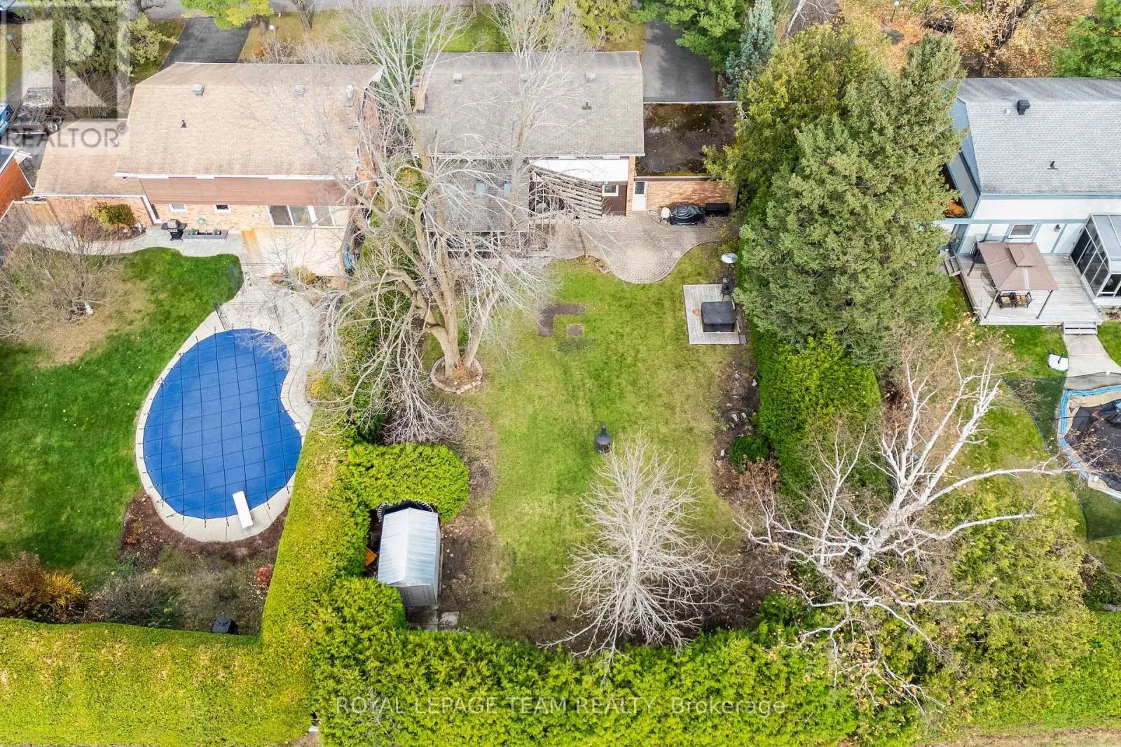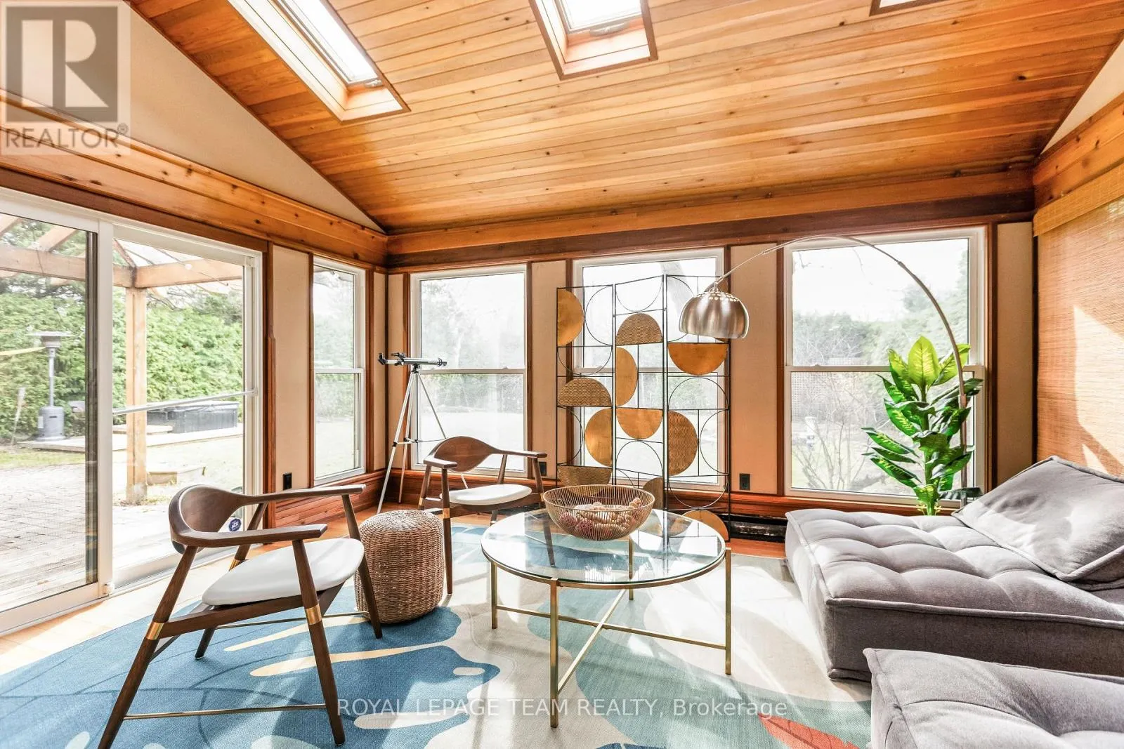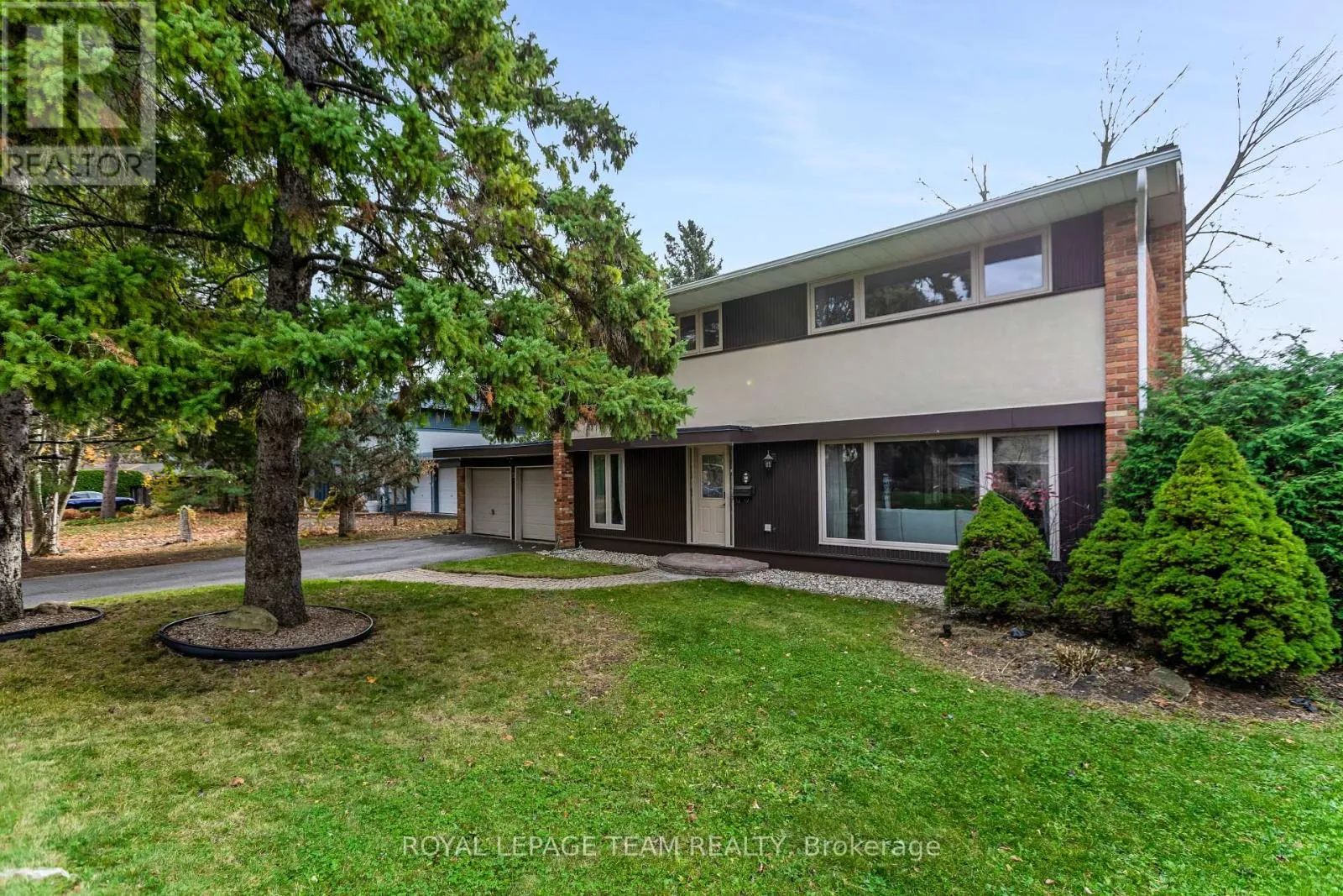 Cross Streets: Varley Drive. ** Directions: Campeau to Teron Rd. Left onto Beaverbrook Rd. Right at the second Varley. First Right onto Pellan Cres. No rear neighbors! This striking mid-century modern 4-bed, 3-bath home sits on a quiet street in prestigious Beaverbrook, with an oversized lot that feels like your own private retreat. Extensively renovated throughout including flush beam installed creating open concept main floor living, it blends timeless design with contemporary updates. The open-concept main floor features clean lines, oversized windows, and a striking brick feature wall with a cozy wood-burning fireplace. A true highlight is the 4-season solarium with vaulted ceilings and skylights - perfect for soaking in views of the private backyard oasis year-round. A sunny flex room on the main level offers the ideal spot for a home office or dining room. Recent updates include the kitchen, three bathrooms, banister and iron railings, hardwood flooring, lighting, and wiring. Upstairs, the primary suite boasts a custom walk-through closet and sleek 3-pc ensuite. The finished basement extends the living space with a playroom and family room. Step outside to enjoy a spacious patio with pergola, hot tub, and mature landscaping - all with no rear neighbors. Close to parks, trails, and everyday amenities, this home offers the rare combination of privacy, style, and convenience. An iconically Canadian gem in the heart of Beaverbrook! (id:27476)