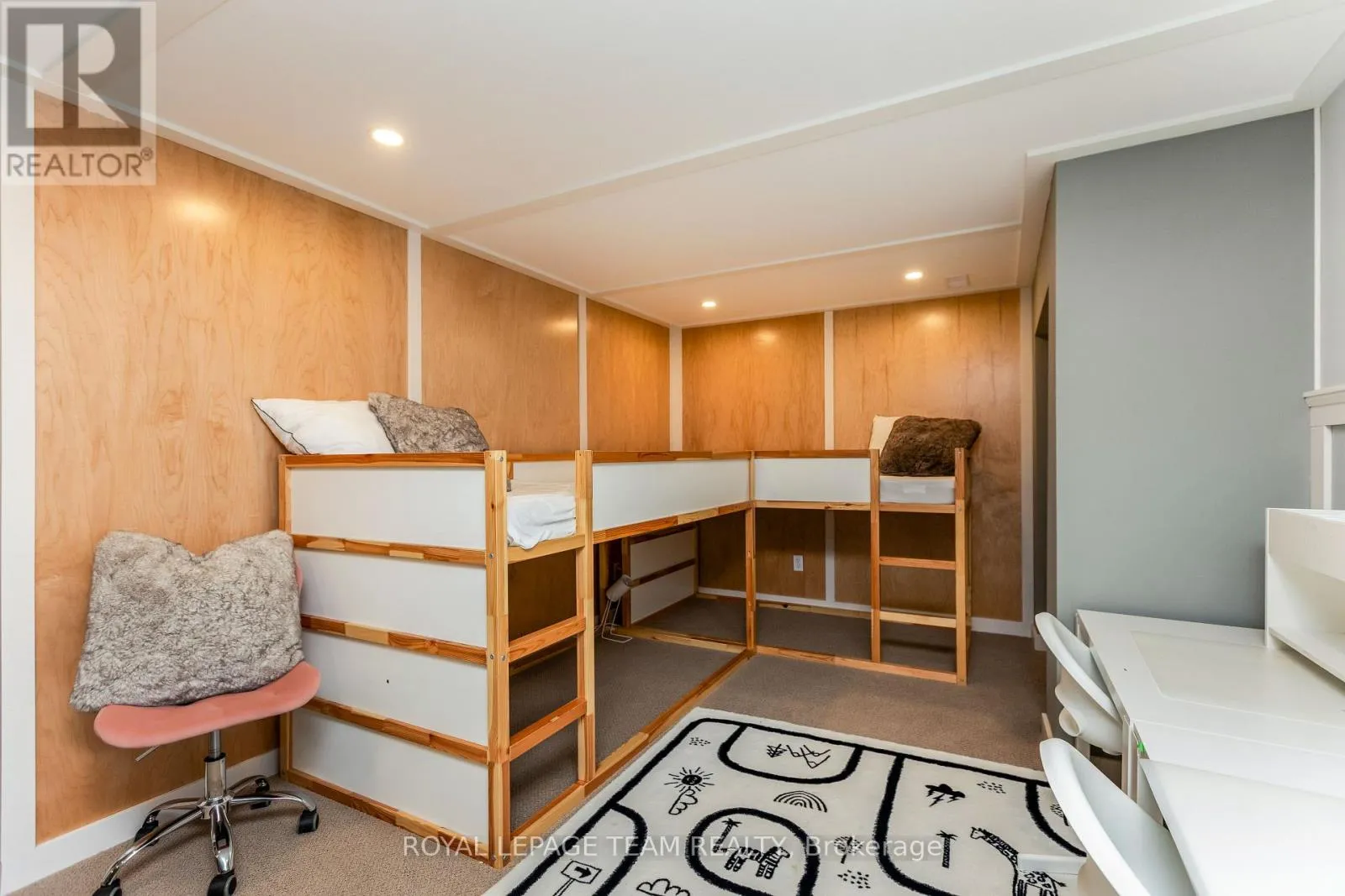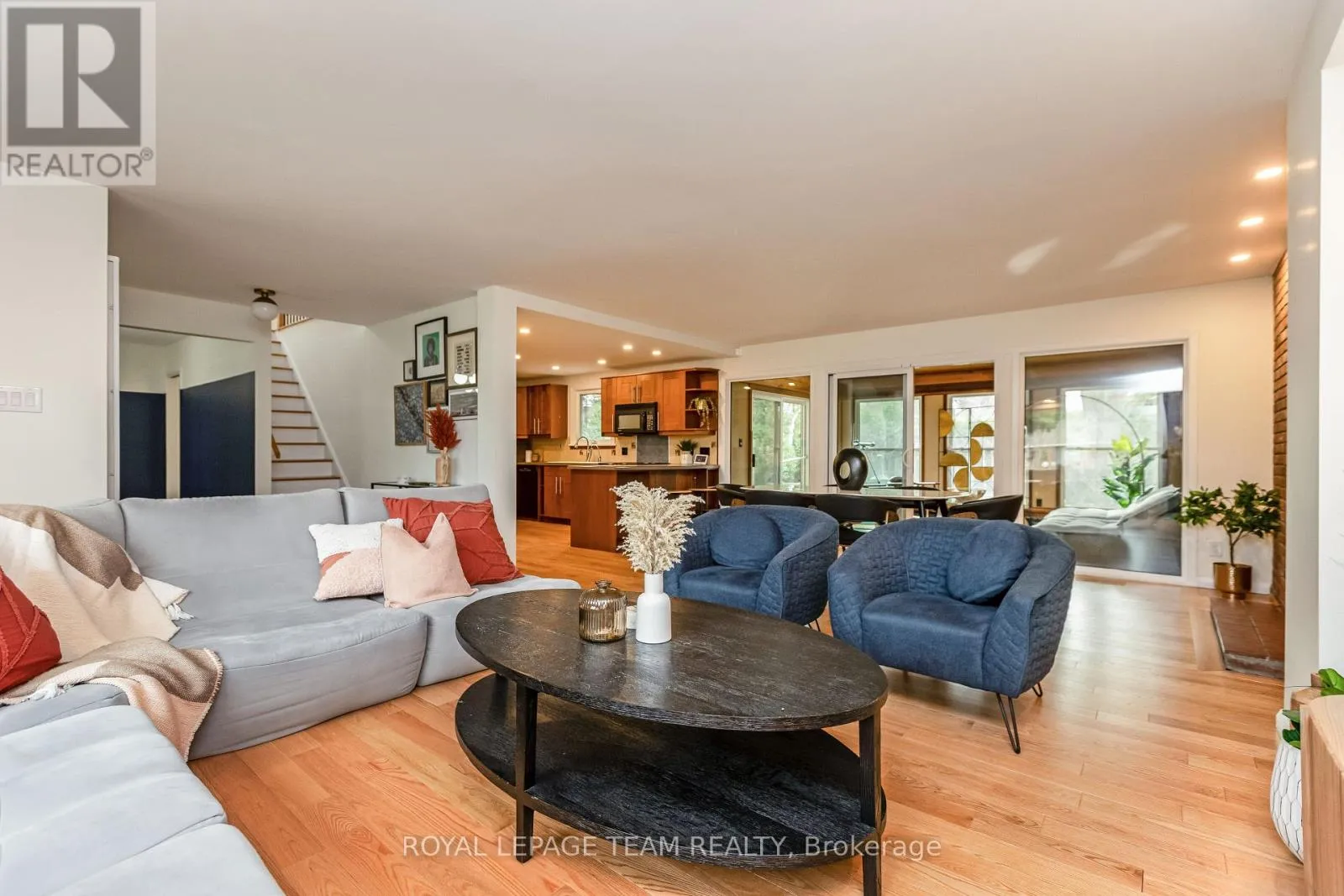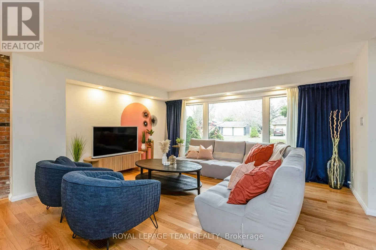 Cross Streets: Varley Drive. ** Directions: Campeau to Teron Rd. Left onto Beaverbrook Rd. Right at the second Varley. First Right onto Pellan Cres. No rear neighbors! This striking mid-century modern 4-bed, 3-bath home sits on a quiet street in prestigious Beaverbrook, with an oversized lot that feels like your own private retreat. Extensively renovated throughout including flush beam installed creating open concept main floor living, it blends timeless design with contemporary updates. The open-concept main floor features clean lines, oversized windows, and a striking brick feature wall with a cozy wood-burning fireplace. A true highlight is the 4-season solarium with vaulted ceilings and skylights - perfect for soaking in views of the private backyard oasis year-round. A sunny flex room on the main level offers the ideal spot for a home office or dining room. Recent updates include the kitchen, three bathrooms, banister and iron railings, hardwood flooring, lighting, and wiring. Upstairs, the primary suite boasts a custom walk-through closet and sleek 3-pc ensuite. The finished basement extends the living space with a playroom and family room. Step outside to enjoy a spacious patio with pergola, hot tub, and mature landscaping - all with no rear neighbors. Close to parks, trails, and everyday amenities, this home offers the rare combination of privacy, style, and convenience. An iconically Canadian gem in the heart of Beaverbrook! (id:27476)
