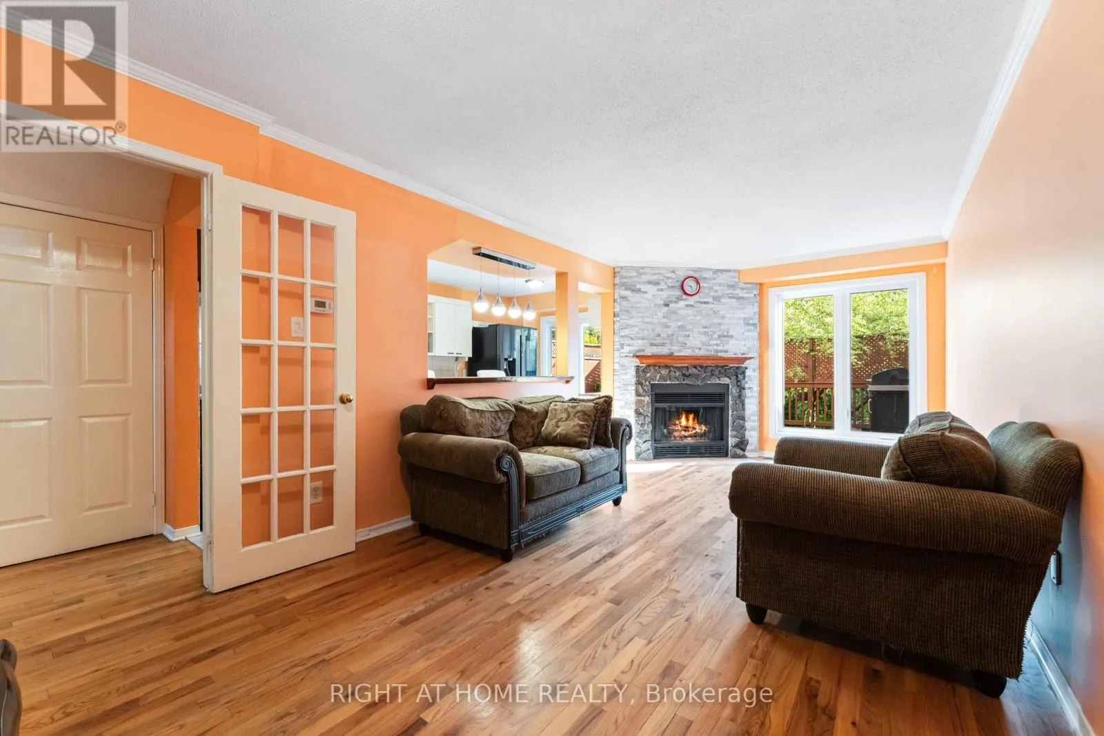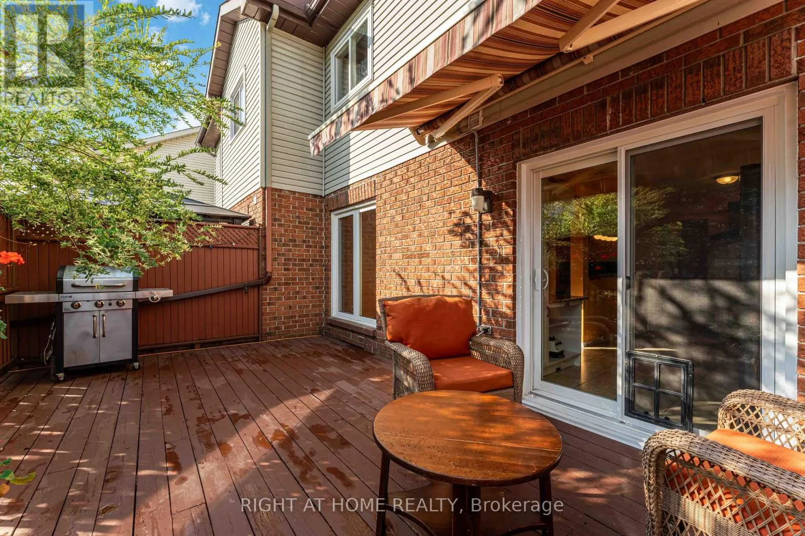 Cross Streets: kenins. ** Directions: kanata av to walden to kenins to harrington. Charming 3-bedroom, 3-bathroom townhouse located on a quiet cul-de-sac in the highly popular Kanata Lakes community. Surrounded by mature trees, this home offers both privacy and convenience in one of Kanata's most desirable neighbourhoods. The main floor welcomes you with a bright foyer leading into a living and dining area, complete with hardwood floors and a cozy wood-burning fireplace. The gourmet kitchen provides ample cabinet space and a sunny breakfast area with direct access to a private backyard featuring a large deck. Upstairs, you'll find three bedrooms, including a primary retreat with its own en-suite, plus a full family bath. The finished basement adds even more living space with a versatile rec room, laundry area, and plenty of storage. This home combines comfort, functionality, and an unbeatable location close to top schools, parks, shopping, and transit. Don't miss your chance to make this Kanata Lakes property your new home! (id:27476)