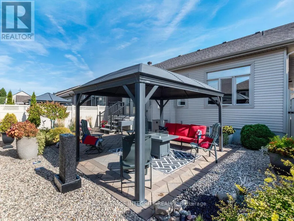 Cross Streets: Bobolink Ridge. ** Directions: Bobolink to Elfin Grove. Welcome to 112 Elfin Grove, a beautifully maintained home on one of Kanata/Stittsville's most popular streets. This open-concept bungalow offers 2 spacious bedrooms and 2 full bathrooms on the main level. The professionally finished lower level adds exceptional bright living space with a 3rd bedroom, full bathroom, large entertainment area, and a handy office nook at the stairway landing. Don't miss the well place Murphy bed for spill over guests which was custom built to maximize space. Enjoy the outdoors in the stunning, fully fenced backyard featuring a large interlock patio with gazebo, stunning gardens, perfect for gatherings. The front yard is equally beautiful with landscaped gardens, an interlock walkway, and a welcoming front porch where you can enjoy the sunny afternoons. A double garage and plentiful storage add to the home's practicality. Located close to Kanata's top amenities shopping, dining, schools, parks, and transit this property is move-in ready and offers an ideal balance of comfort, style, and convenience. 24 Hour Irrevocable on all offers. (id:27476)