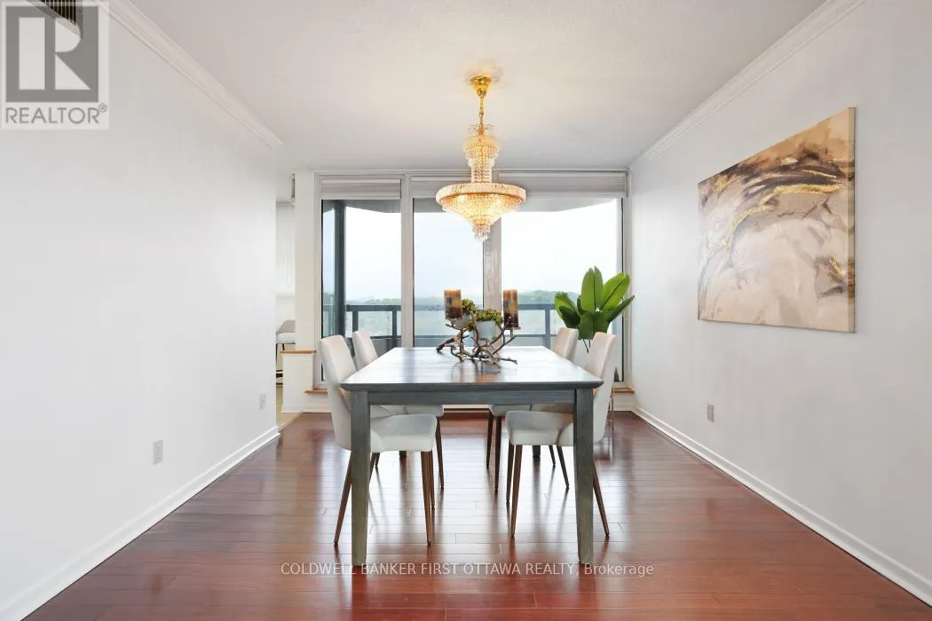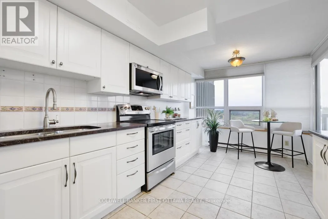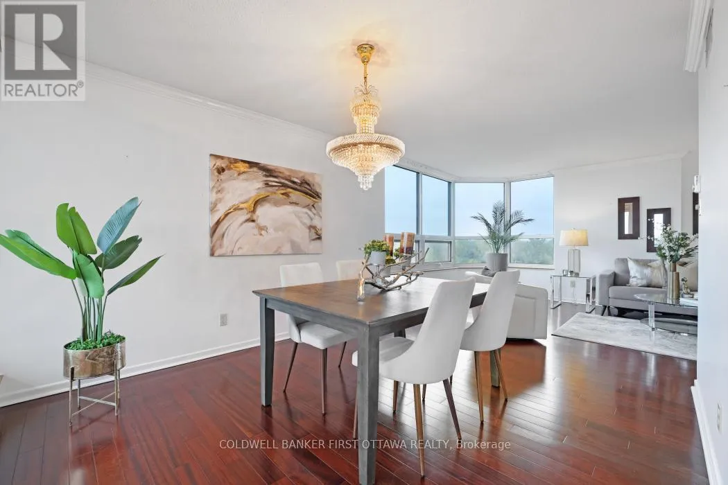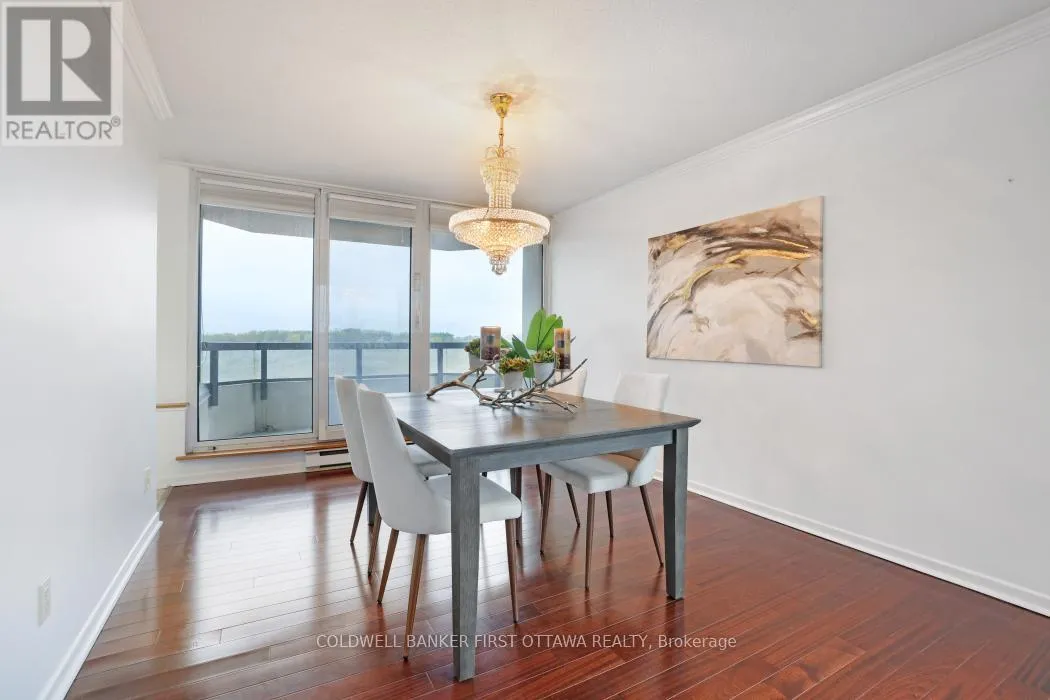 Cross Streets: Riverside Dr. ** Directions: Riverside Dr and San Remo Pvt. Welcome to the sought-after St. Tropez! This 1,279 sq. ft. suite (per builders plan) is perched just above the treetops, offering both north-west and east-facing views that flood the space with natural light. Featuring gleaming hardwood floors throughout and timeless tile accents, this home combines style and comfort. The updated eat-in kitchen is perfect for everyday living, while the spacious L-shaped living and dining room is ideal for entertaining or relaxing in style. Residents enjoy year-round recreation facilities - Club Riviera, a 24/7 gatehouse security for peace of mind, and an unbeatable location close to major transit routes, the train station, LRT, and shopping. This is more than a condo it's a lifestyle. Once you visit, you'll want to call it home. Be sure to admire the most picturesque landscaping. NOTE: One blind in the kitchen is not functioning. (id:27476)