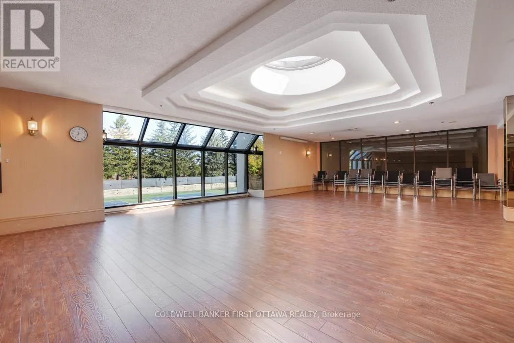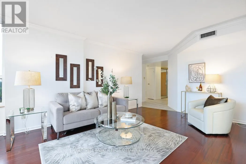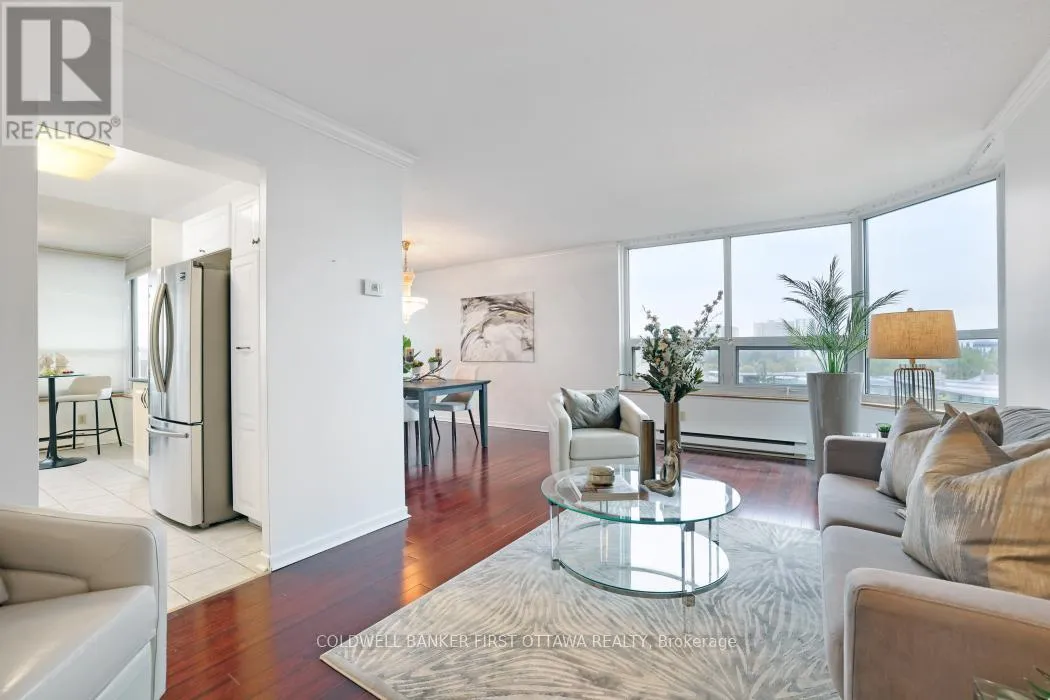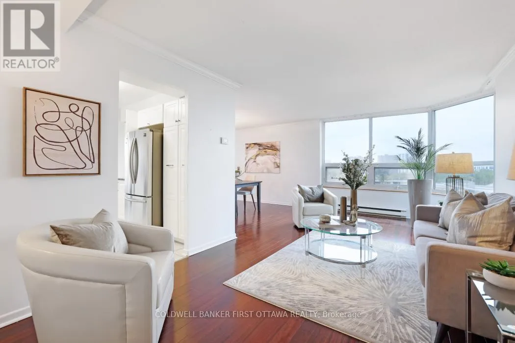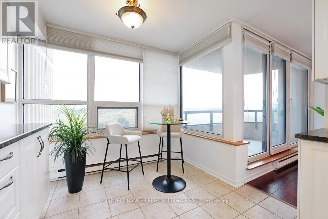 Cross Streets: Riverside Dr. ** Directions: Riverside Dr and San Remo Pvt. Welcome to the sought-after St. Tropez! This 1,279 sq. ft. suite (per builders plan) is perched just above the treetops, offering both north-west and east-facing views that flood the space with natural light. Featuring gleaming hardwood floors throughout and timeless tile accents, this home combines style and comfort. The updated eat-in kitchen is perfect for everyday living, while the spacious L-shaped living and dining room is ideal for entertaining or relaxing in style. Residents enjoy year-round recreation facilities - Club Riviera, a 24/7 gatehouse security for peace of mind, and an unbeatable location close to major transit routes, the train station, LRT, and shopping. This is more than a condo it's a lifestyle. Once you visit, you'll want to call it home. Be sure to admire the most picturesque landscaping. NOTE: One blind in the kitchen is not functioning. (id:27476)