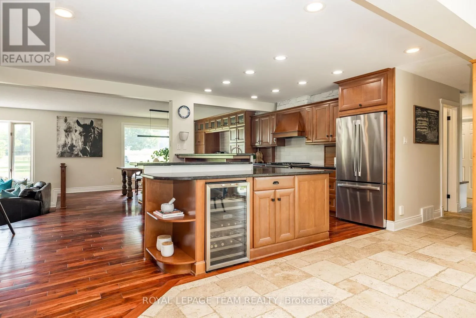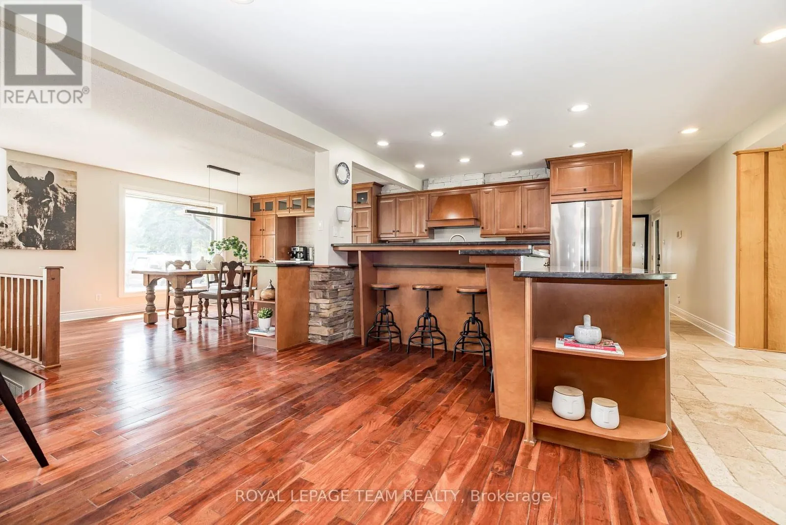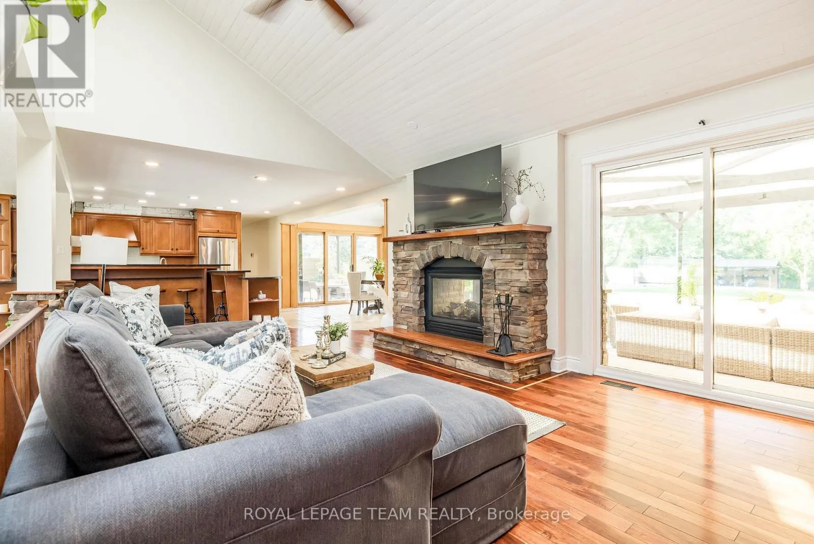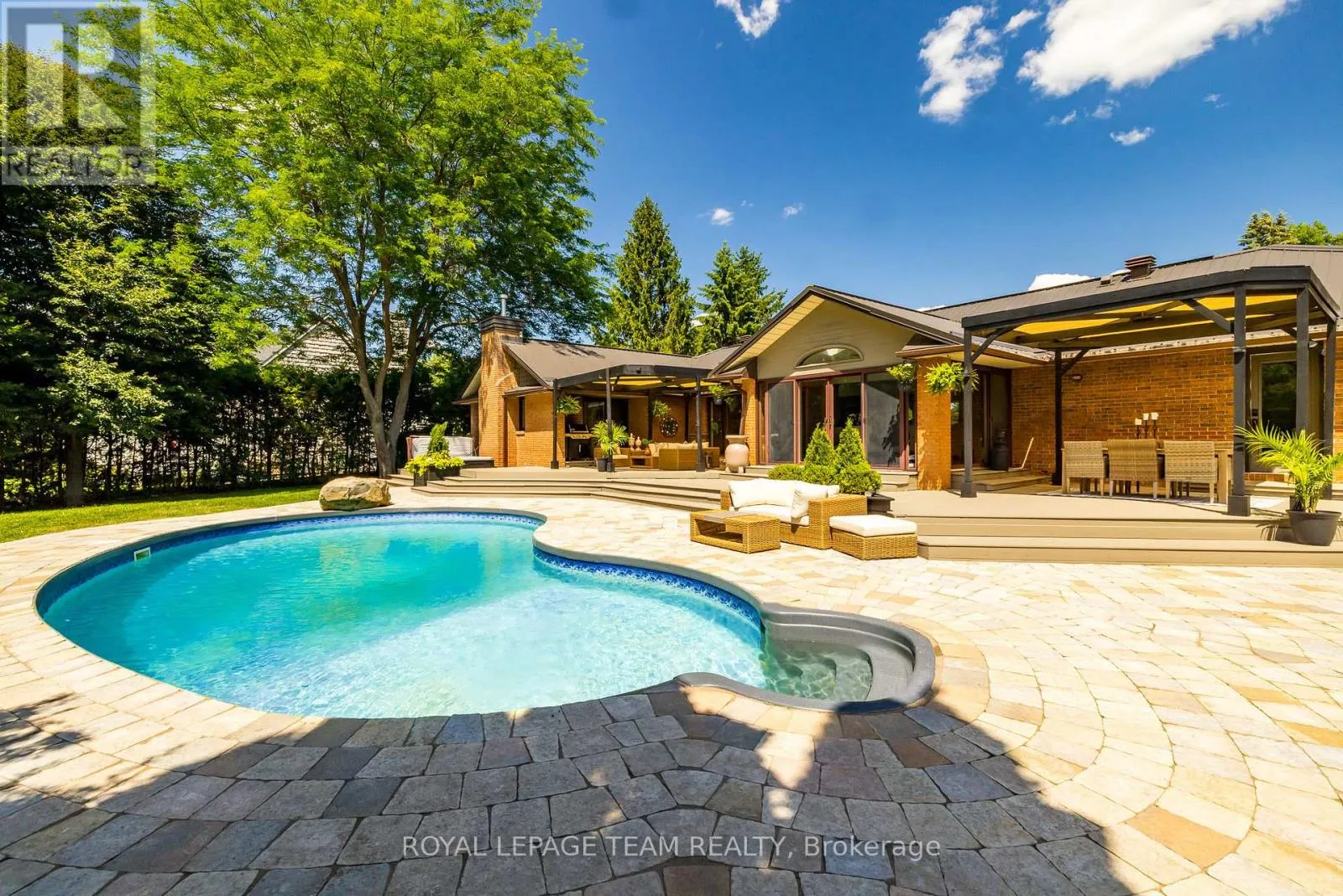 Cross Streets: River Rd/Bridge Street. ** Directions: 417 to Bankfield Rd to Manotick Main St to Bridge Street to River Road. A rare offering along a serene stretch of the Rideau River just moments from the heart of Manotick, this exceptional 3-bedroom, 2.5-bathroom estate bungalow is set on a beautifully landscaped 2.25-acre lot with 60 feet of pristine waterfront. A private paradise, the property features a resort-style backyard with a gorgeous salt water in-ground pool, mature trees, and sweeping views of the river. Step inside to discover a grand entry adorned with travertine marble flooring, leading to a spectacular library crowned by a vaulted cedar-plank ceiling. Floor-to-ceiling bookshelves, complete with a rolling ladder, create an atmosphere of refined charm, while a dramatic double-sided fireplace connects this space to the expansive sunken living room and rear deck beyond. The chef's kitchen is a showpiece, seamlessly open to the main living areas; designed for both entertaining and daily luxury. Rich granite countertops, an abundance of custom cabinetry, and a high-end gas range are paired with a unique breakfast nook offering warmth and style. Bathed in natural light, the four-season sunroom is a seamless extension of the living space, with multiple sliding glass doors opening to the tranquil grounds. The primary suite is a true retreat, with direct access to the deck, a cozy gas fireplace, custom walk-in closet, and an opulent 5-piece ensuite complete with double vanities, soaking tub, and glass-enclosed shower. The partially finished lower level with new flooring & 9ft ceilings offers flexibility for additional living or recreation space. Recently updated landscaping and a lush canopy of mature trees provide privacy and timeless beauty. Nestled in one of Ottawa's most coveted communities, this home is just minutes from boutique shops, fine dining, excellent schools, and the village charm that makes Manotick so desirable. (id:27476)