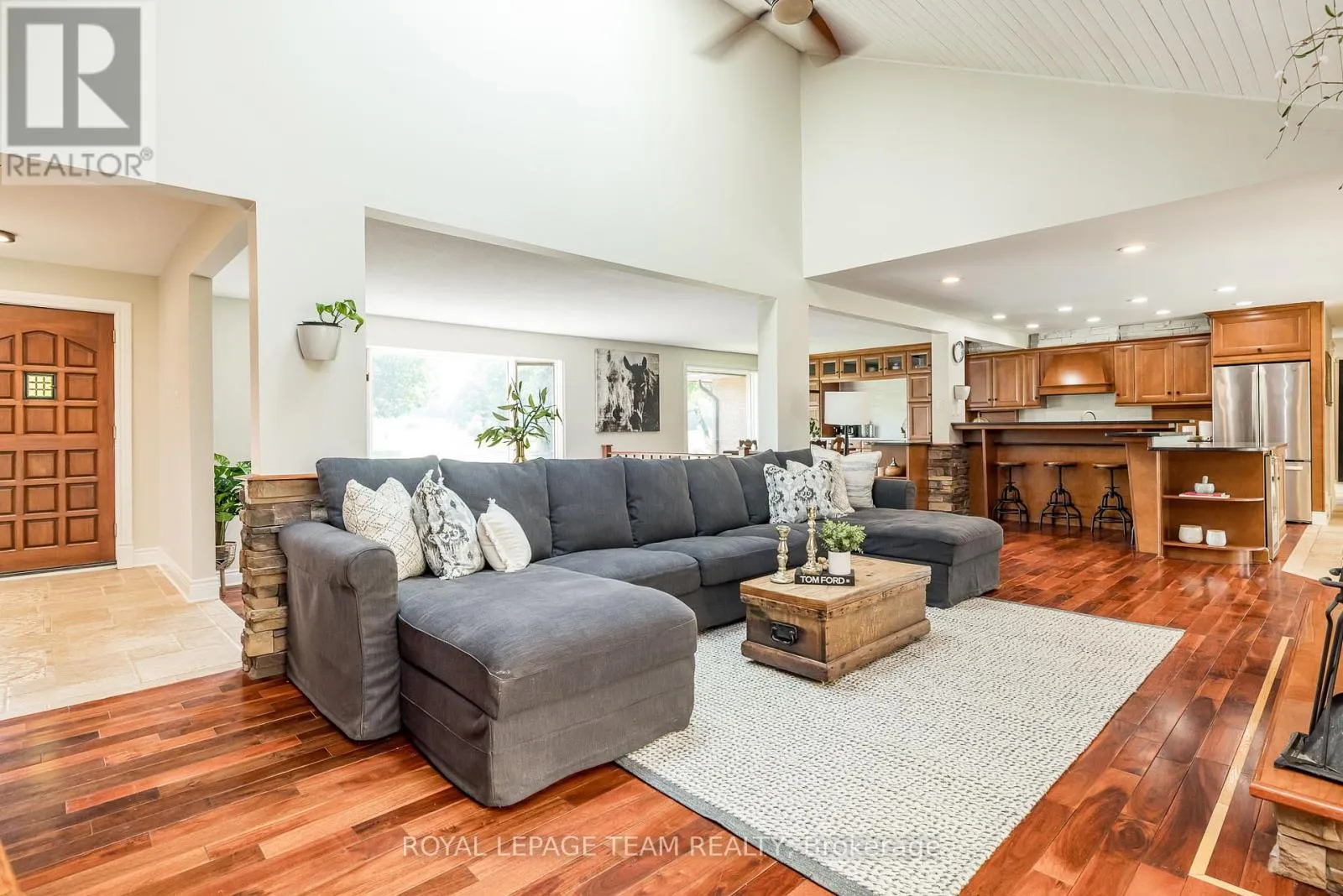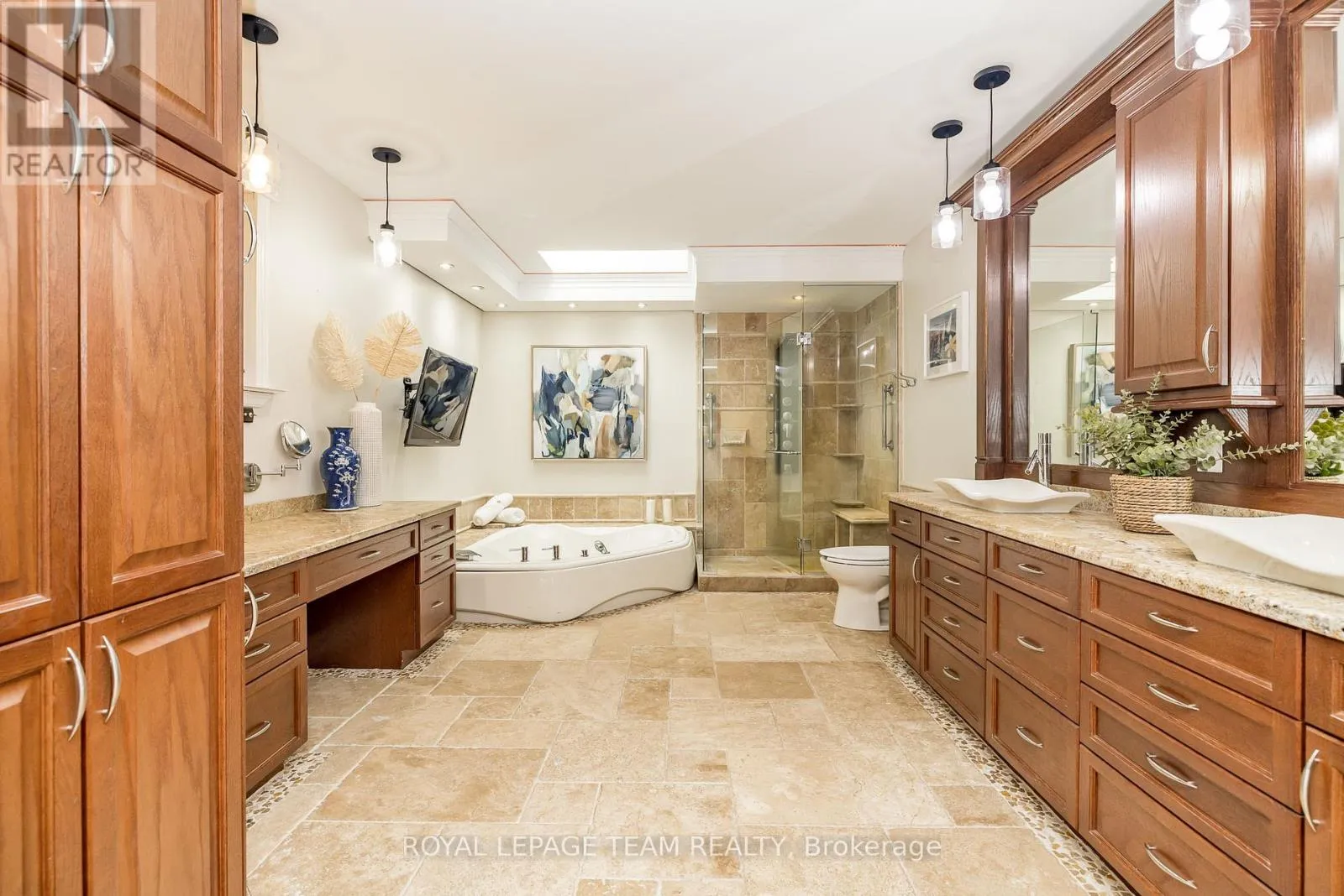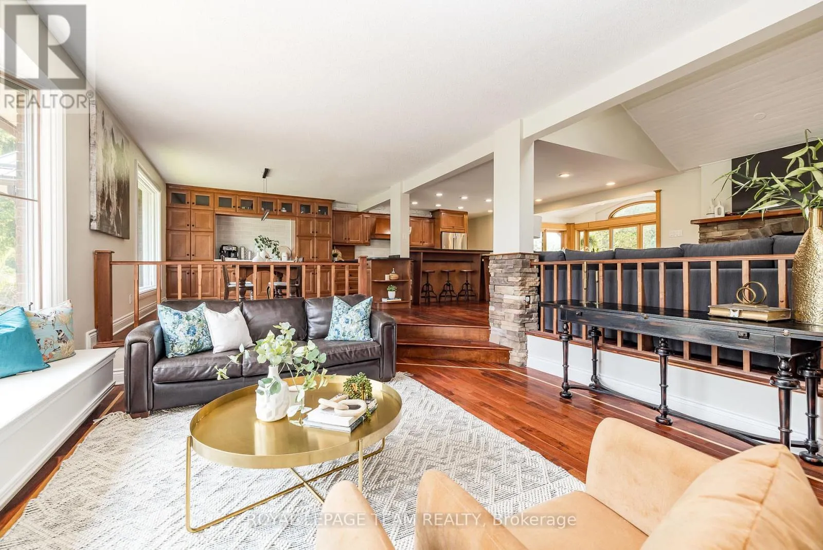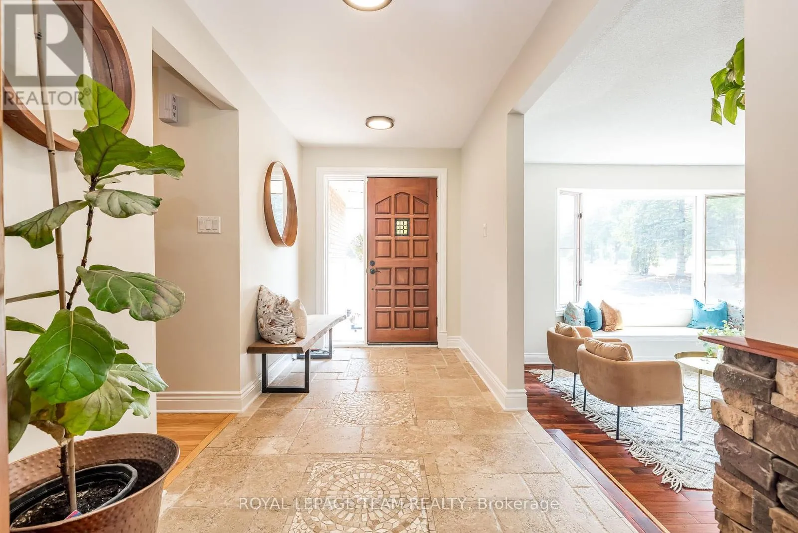 Cross Streets: River Rd/Bridge Street. ** Directions: 417 to Bankfield Rd to Manotick Main St to Bridge Street to River Road. A rare offering along a serene stretch of the Rideau River just moments from the heart of Manotick, this exceptional 3-bedroom, 2.5-bathroom estate bungalow is set on a beautifully landscaped 2.25-acre lot with 60 feet of pristine waterfront. A private paradise, the property features a resort-style backyard with a gorgeous salt water in-ground pool, mature trees, and sweeping views of the river. Step inside to discover a grand entry adorned with travertine marble flooring, leading to a spectacular library crowned by a vaulted cedar-plank ceiling. Floor-to-ceiling bookshelves, complete with a rolling ladder, create an atmosphere of refined charm, while a dramatic double-sided fireplace connects this space to the expansive sunken living room and rear deck beyond. The chef's kitchen is a showpiece, seamlessly open to the main living areas; designed for both entertaining and daily luxury. Rich granite countertops, an abundance of custom cabinetry, and a high-end gas range are paired with a unique breakfast nook offering warmth and style. Bathed in natural light, the four-season sunroom is a seamless extension of the living space, with multiple sliding glass doors opening to the tranquil grounds. The primary suite is a true retreat, with direct access to the deck, a cozy gas fireplace, custom walk-in closet, and an opulent 5-piece ensuite complete with double vanities, soaking tub, and glass-enclosed shower. The partially finished lower level with new flooring & 9ft ceilings offers flexibility for additional living or recreation space. Recently updated landscaping and a lush canopy of mature trees provide privacy and timeless beauty. Nestled in one of Ottawa's most coveted communities, this home is just minutes from boutique shops, fine dining, excellent schools, and the village charm that makes Manotick so desirable. (id:27476)