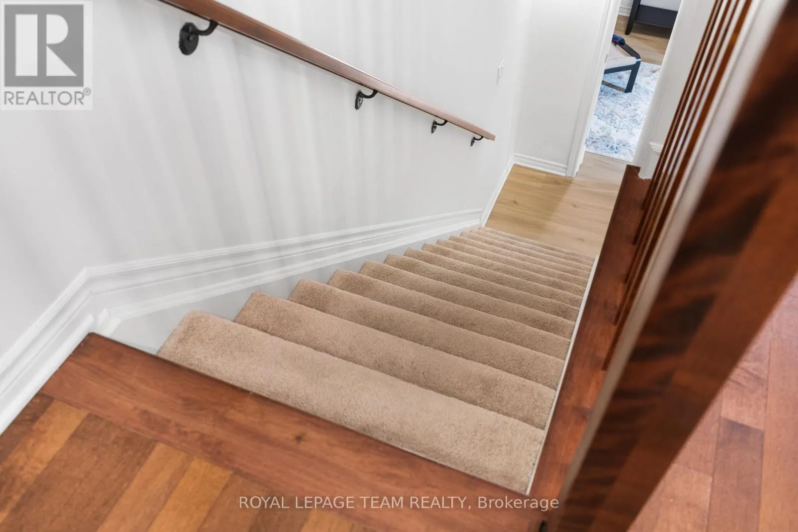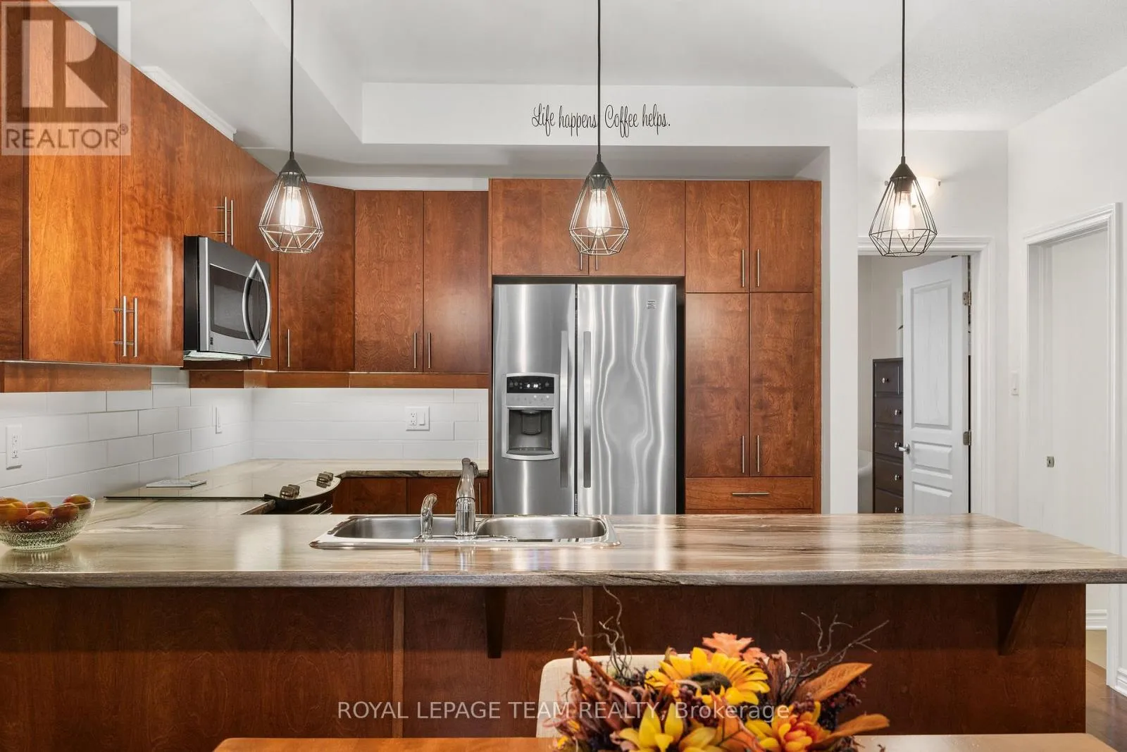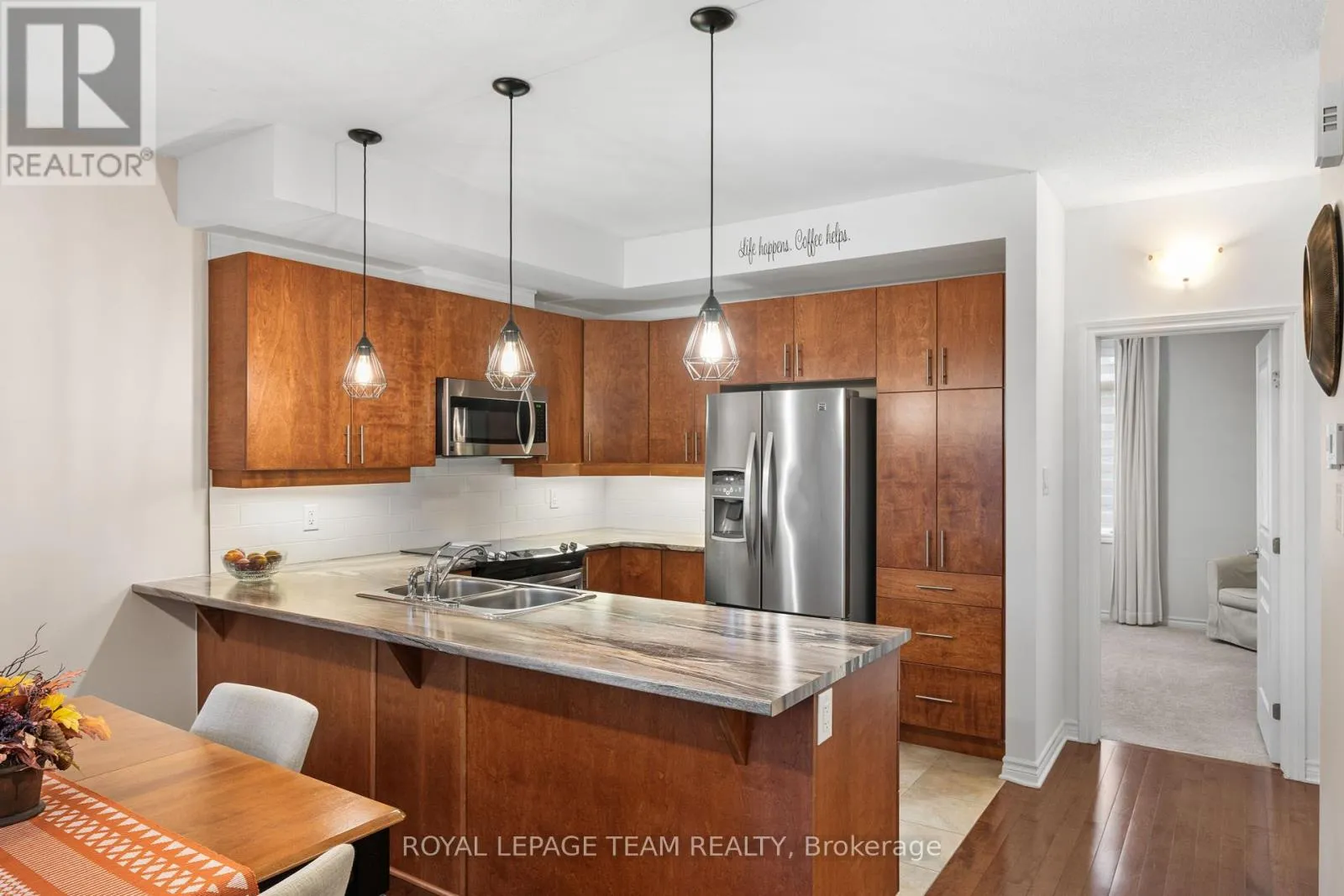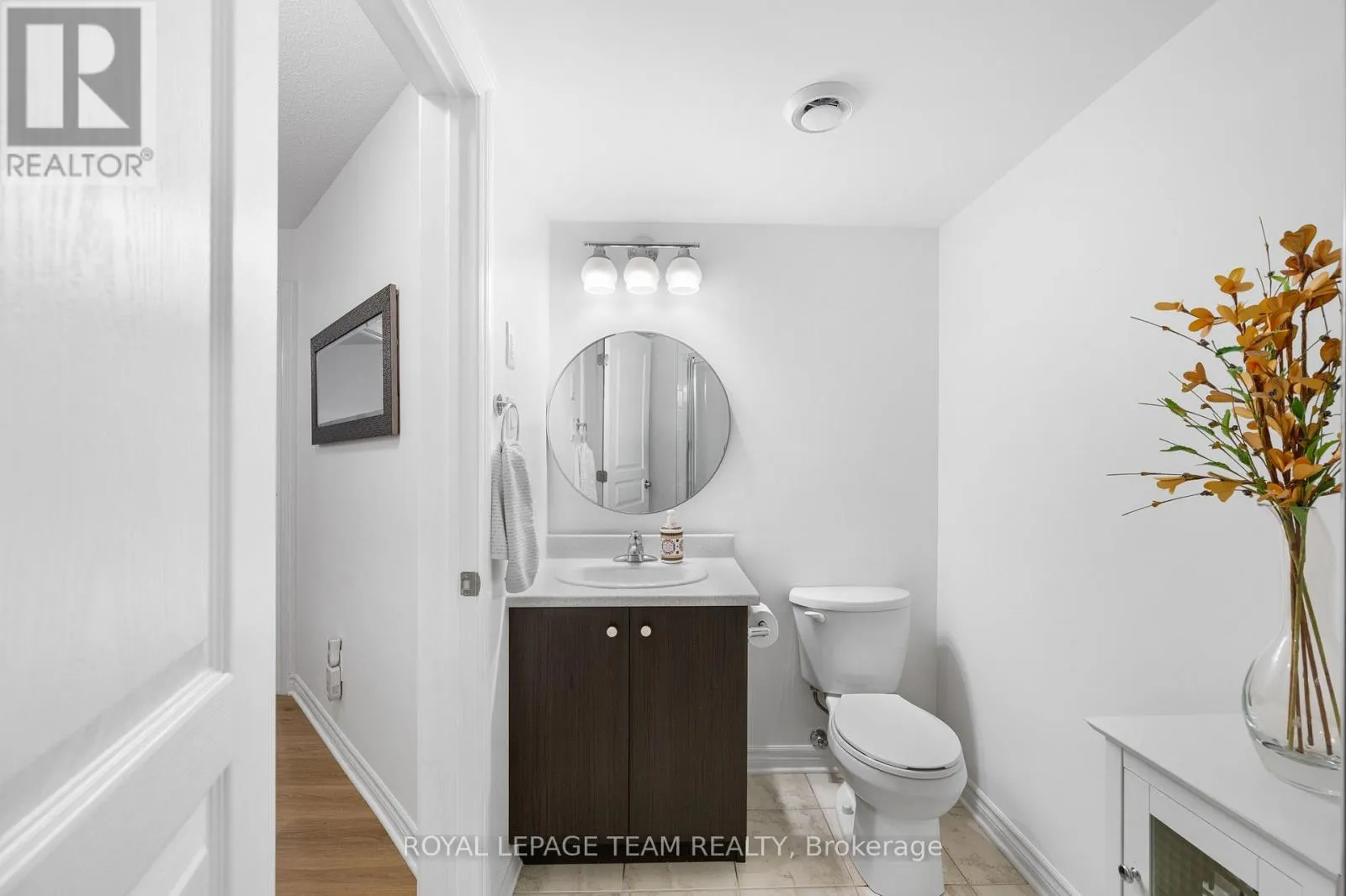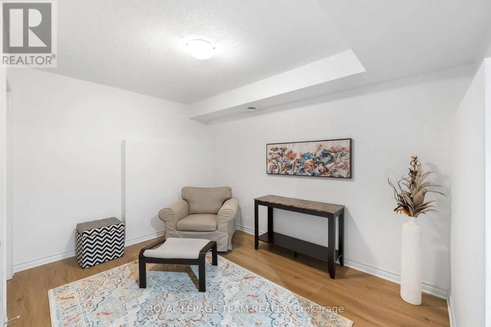 Cross Streets: Brian Good Ave & Poplin St. ** Directions: Earl Armstrong Rd, turn onto Brian Good Ave, left onto Poplin St - available street parking in front of the unit. This bright and spacious end unit features an open-concept layout, with the living, dining, and kitchen areas seamlessly connected, making it perfect for entertaining or everyday comfort. Step out onto your private balcony, ideal for grilling or simply relaxing outdoors. Enjoy hardwood flooring throughout the main level, with cozy carpet in the primary bedroom on the main floor for added warmth. The kitchen includes a peninsula with an overhang for seating and a walk-in pantry for ample storage. The main-floor bedroom serves as a spacious primary suite, complete with a walk-in closet. It is conveniently located near a luxurious full bathroom featuring a soaker tub and separate shower. An inside entry from the garage leads to the fully finished basement, which includes a second bedroom (or ideal home office), a utility closet, a deep storage closet, and a dedicated laundry area with a new washer & dryer. The basement features new laminate flooring, adding both style and durability. Additional Features: NO pet restrictions, perfect for animal lovers! Above & below grade approx. 1412.41 sq.ft., Garage 2.90m x 5.79m. Tandem parking space for 2 cars, Condo-managed snow removal & lawn maintenance, Window coverings included, Utilities: Water: approx. $672.49/year (2024), Hydro: approx. $84/month, Gas: approx. $68/month, Tankless water heater rental: $50/month. Located near the Rideau River, beautiful parks, and local shops, this home offers both comfort and convenience in a highly sought-after neighborhood. Don't miss the 360 iGuide tour. See attachment for additional information. 24 hrs irrev on all offers. (id:27476)