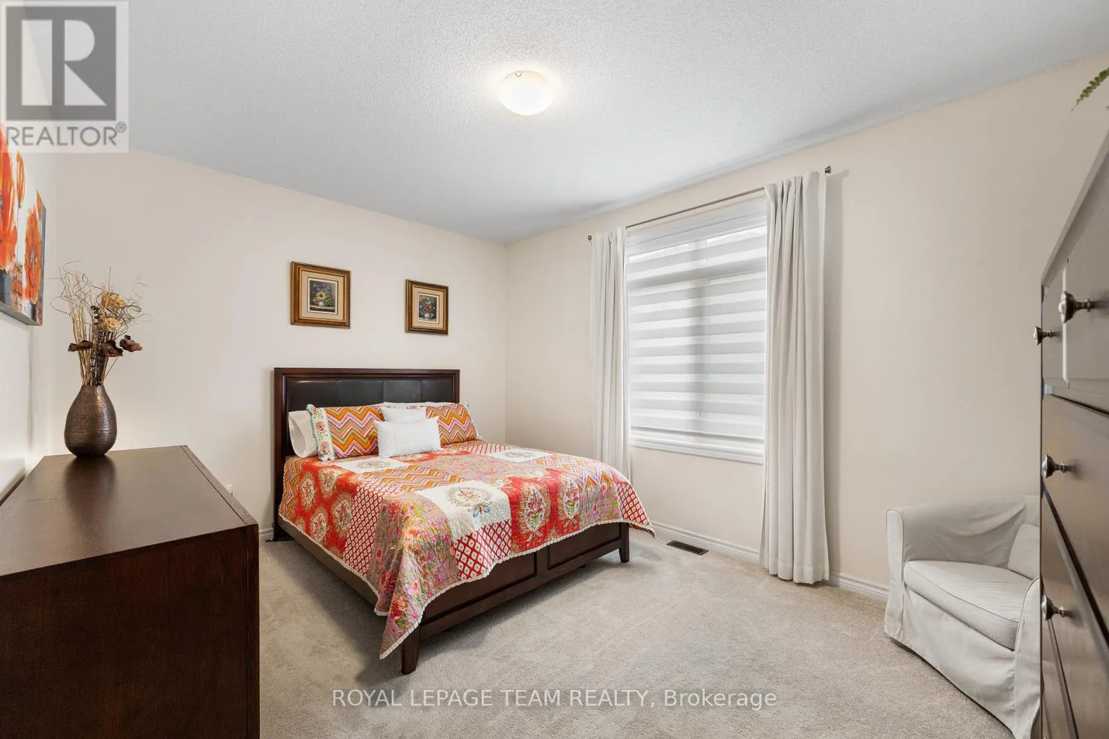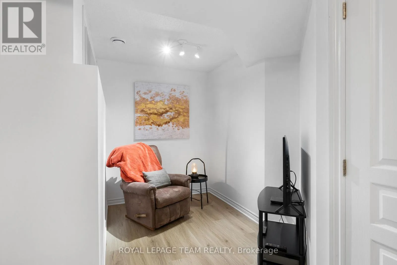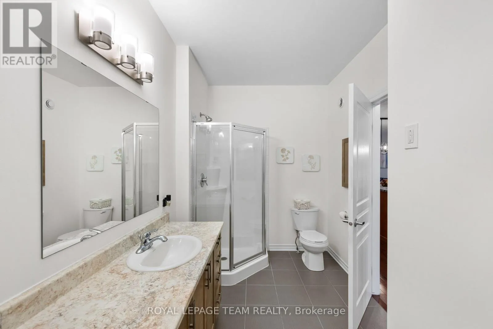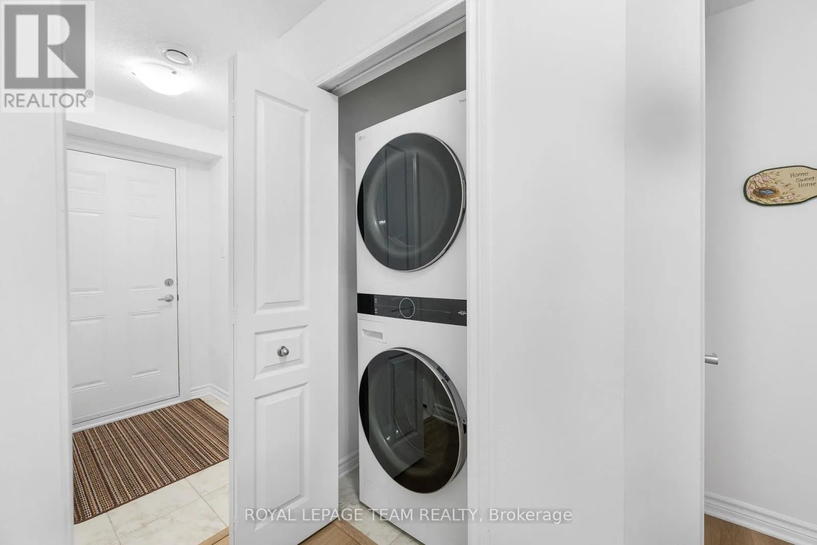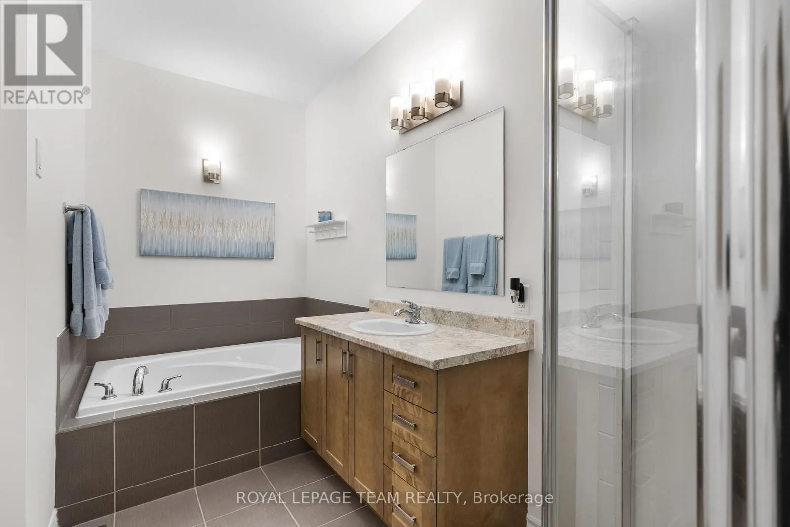 Cross Streets: Brian Good Ave & Poplin St. ** Directions: Earl Armstrong Rd, turn onto Brian Good Ave, left onto Poplin St - available street parking in front of the unit. This bright and spacious end unit features an open-concept layout, with the living, dining, and kitchen areas seamlessly connected, making it perfect for entertaining or everyday comfort. Step out onto your private balcony, ideal for grilling or simply relaxing outdoors. Enjoy hardwood flooring throughout the main level, with cozy carpet in the primary bedroom on the main floor for added warmth. The kitchen includes a peninsula with an overhang for seating and a walk-in pantry for ample storage. The main-floor bedroom serves as a spacious primary suite, complete with a walk-in closet. It is conveniently located near a luxurious full bathroom featuring a soaker tub and separate shower. An inside entry from the garage leads to the fully finished basement, which includes a second bedroom (or ideal home office), a utility closet, a deep storage closet, and a dedicated laundry area with a new washer & dryer. The basement features new laminate flooring, adding both style and durability. Additional Features: NO pet restrictions, perfect for animal lovers! Above & below grade approx. 1412.41 sq.ft., Garage 2.90m x 5.79m. Tandem parking space for 2 cars, Condo-managed snow removal & lawn maintenance, Window coverings included, Utilities: Water: approx. $672.49/year (2024), Hydro: approx. $84/month, Gas: approx. $68/month, Tankless water heater rental: $50/month. Located near the Rideau River, beautiful parks, and local shops, this home offers both comfort and convenience in a highly sought-after neighborhood. Don't miss the 360 iGuide tour. See attachment for additional information. 24 hrs irrev on all offers. (id:27476)