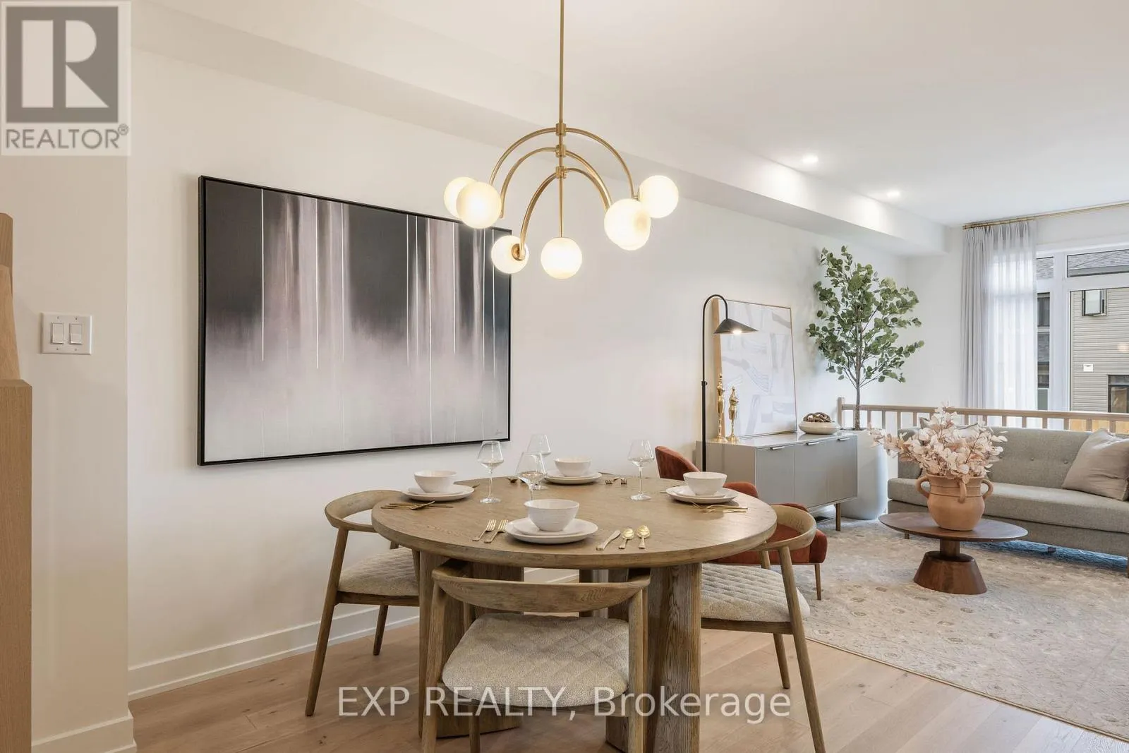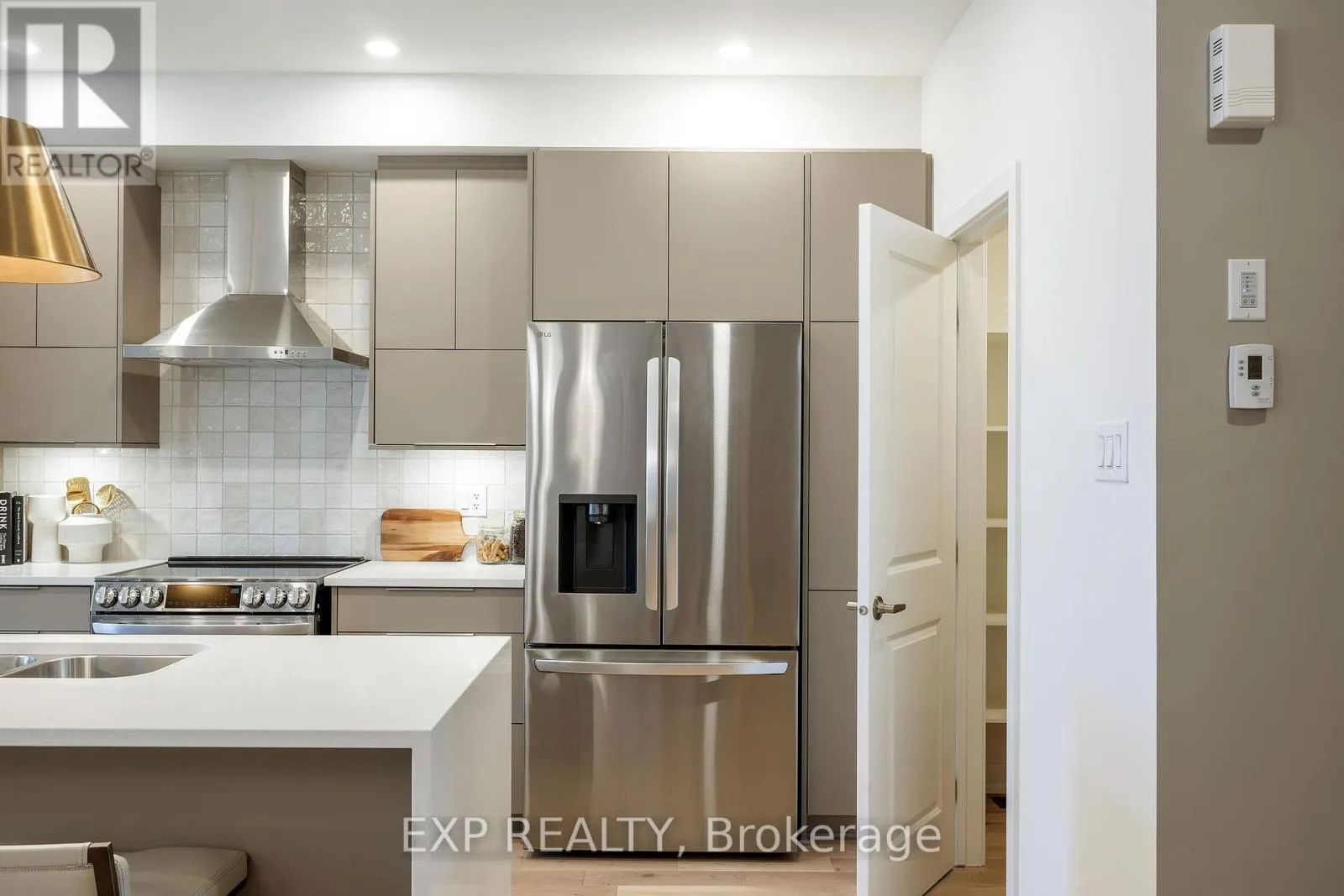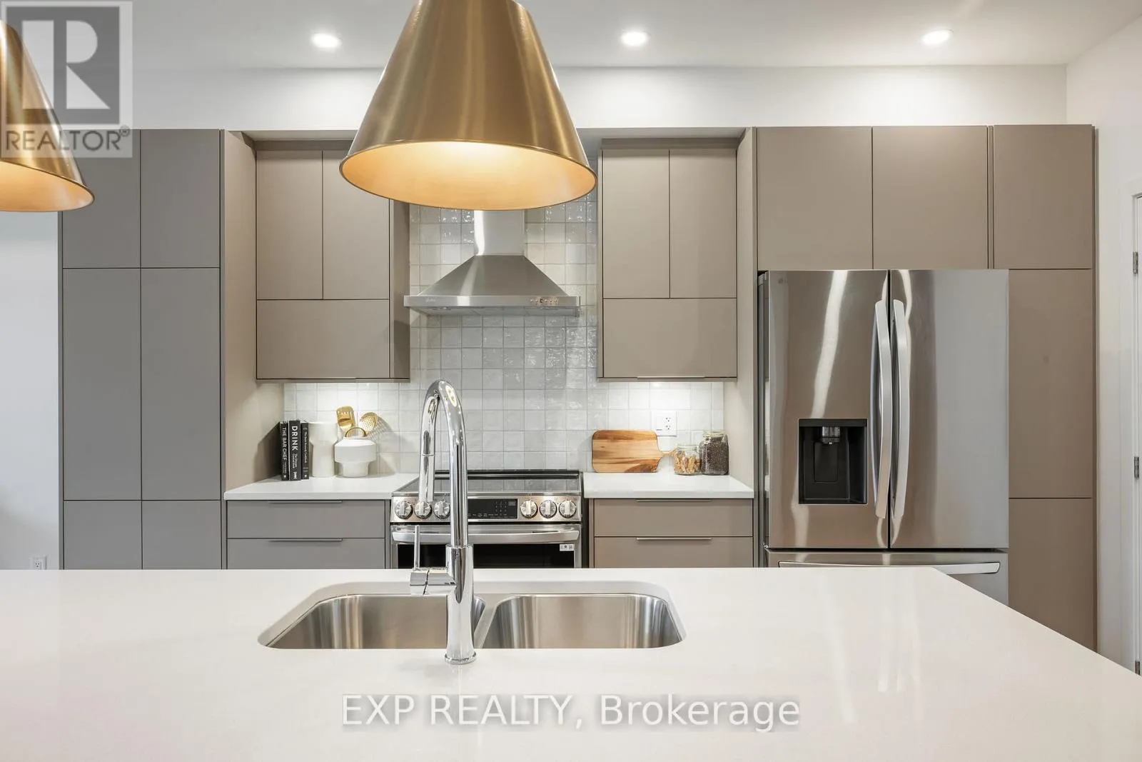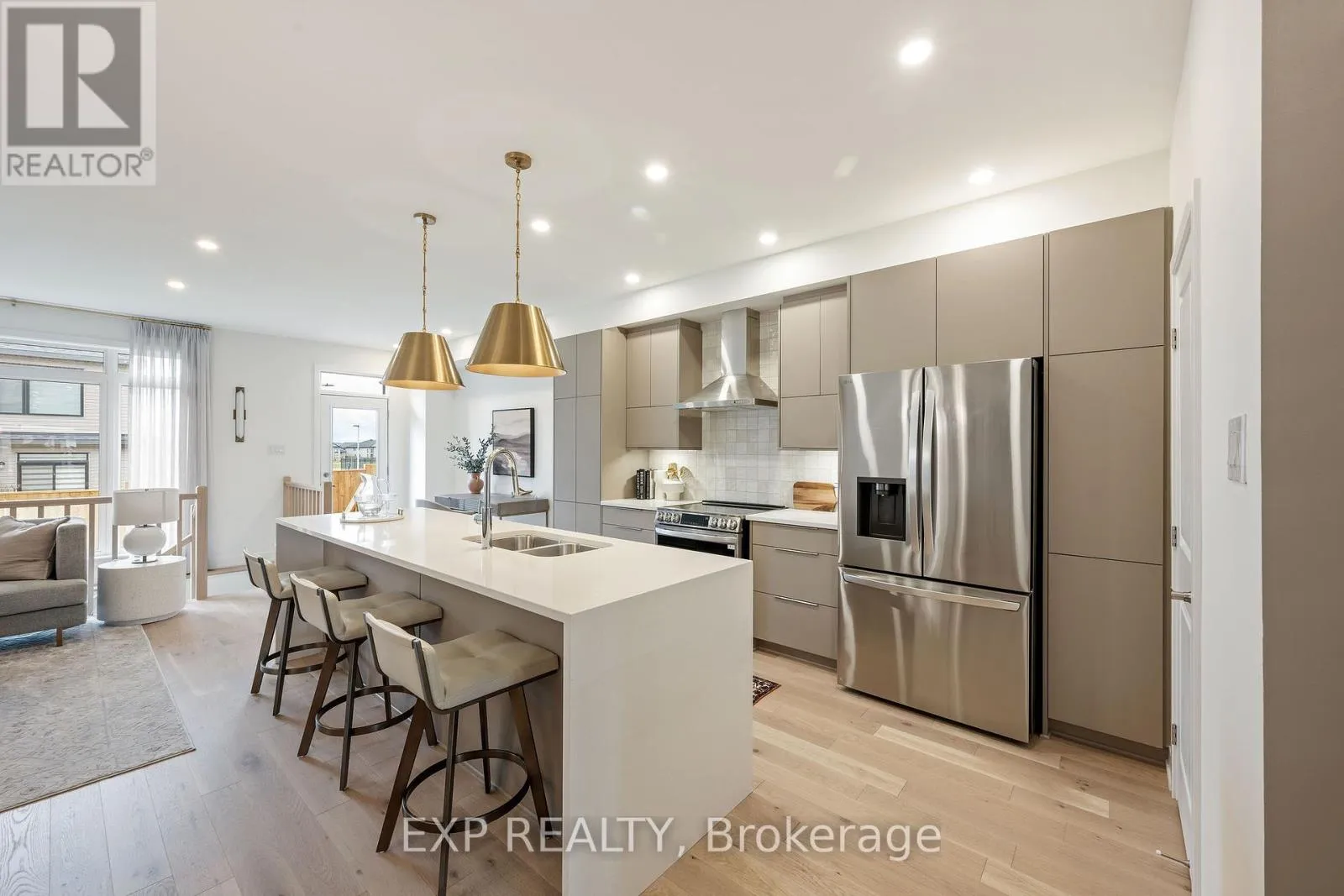 Cross Streets: Summerhill/River Rd. ** Directions: River Road to Summerhill Street, then right turn onto Vision St., then right onto Haresfield Court. Welcome to this stunning brand-new 3-bedroom luxury townhome located on a quiet cul-de-sac in a fully established neighbourhood in Riverside South ( no ongoing construction). With 9ft ceilings on the main floor, this home showcases high-end finishes throughout, including upgraded hardwood flooring on the main level, smooth ceilings, pot lights, and a large window at the back of the house to allow loads of natural light to flow into the home. The gourmet kitchen features upgraded quartz countertops, sleek tile backsplash, brand-new luxury stainless steel appliances, and a large island with an extended breakfast bar. For added convenience and organization, there is a large walk-in pantry off the kitchen with shelving. Upstairs, you'll find a generously sized primary bedroom, complete with a walk-in closet and a serene primary ensuite with a double-sink vanity, quartz countertops, a walk-in shower, and built-in shelving. All bathrooms feature upgraded tile floors and upgraded quartz counters for a consistent, upscale look. The staircase at the back of the house leads to a large, finished family room in the basement, which provides ample extra living space for movies, games, or quiet relaxation. With the modern linear electric fireplace, there is added warmth to the space for winter days or nights. Additional features include central air conditioning, a humidifier on the furnace, and an HRV system for year-round comfort. Ideally located near schools, shopping, and transit, this home offers a perfect blend of style, comfort, and convenience in a completed, quiet neighbourhood. Interior photos are of a model home; finishings, paint, light fixtures, appliances & upgrades vary. (id:27476)
