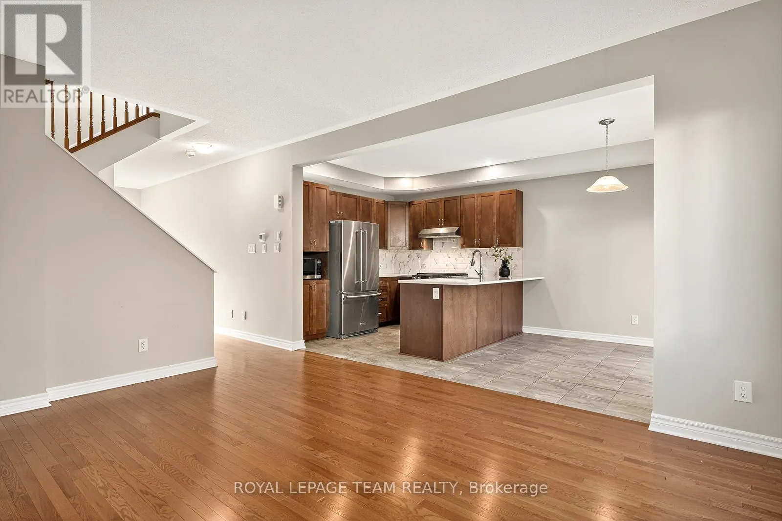 Cross Streets: Bandelier Way and Geranium Walk. ** Directions: Stittsville Main Street to Bandelier Way to Geranium Walk. Beautifully maintained Minto-built family home in the desirable Potter's Key community. Ideally located close to parks, schools, shopping, and restaurants along Main Street.This 3-bedroom, 3-bathroom home features numerous upgrades and a bright, neutral interior with 9 ft ceilings on the main level. The welcoming foyer includes ceramic tile flooring, a double closet, and inside access to the garage. Hardwood floors flow through the main living areas, including the spacious great room with a gas fireplace and custom mantle.The open-concept kitchen offers stainless steel appliances, premium cabinetry, a marble tile backsplash, breakfast bar, and an eating area with sliding patio doors leading to the backyard.Upstairs features neutral carpeting, a generous primary bedroom with walk-in closet and 4-piece ensuite with double sinks and glass shower. Two additional bedrooms with double closets and a full 4-piece family bathroom complete the second level.Unfinished lower level provides ample storage and future potential. Move-in ready and perfect for families! (id:27476)