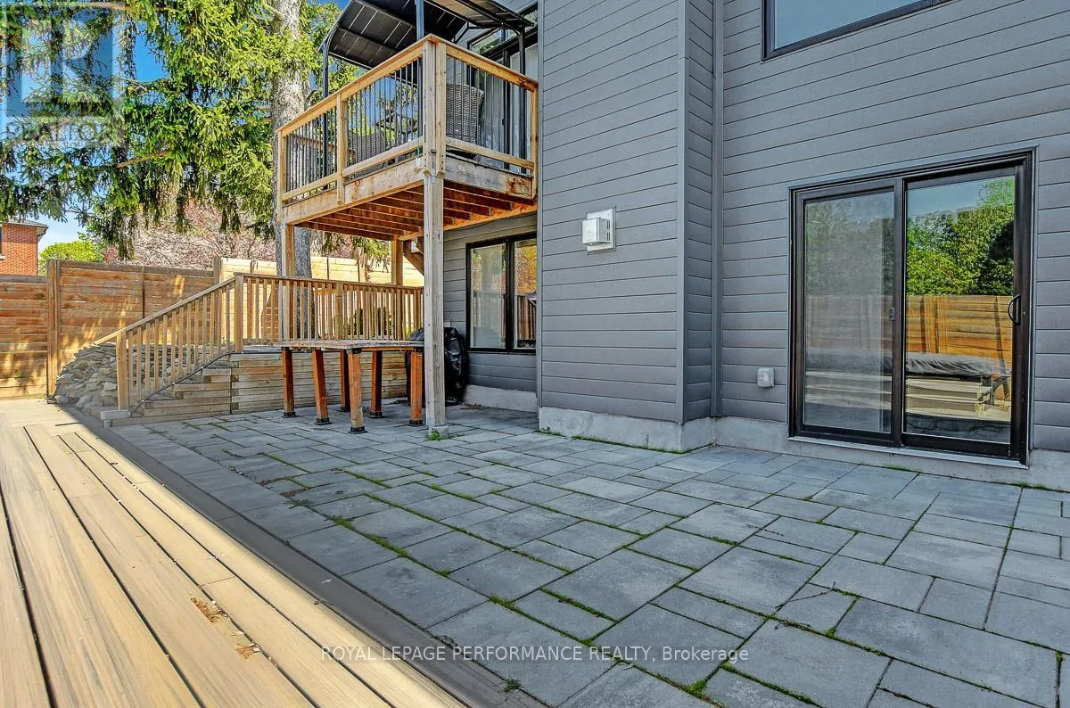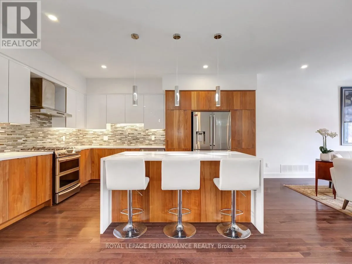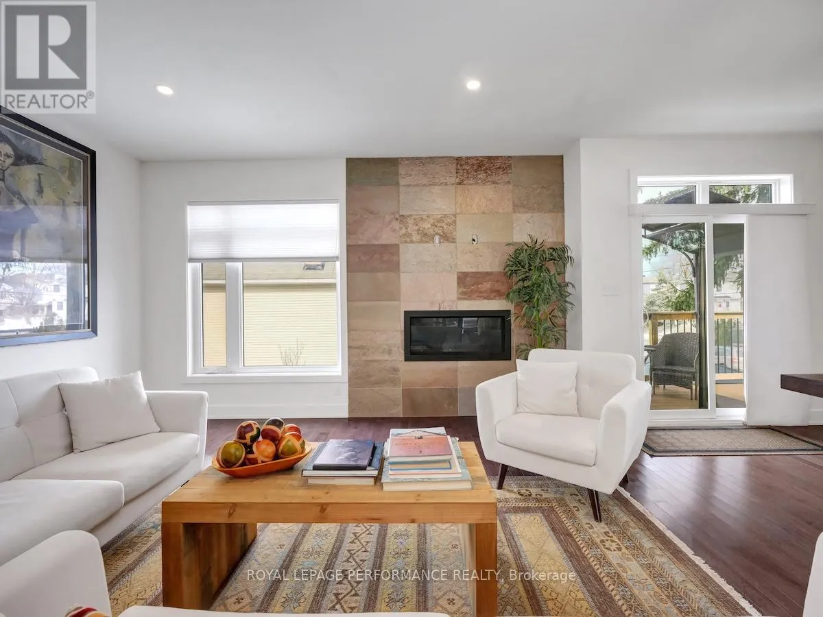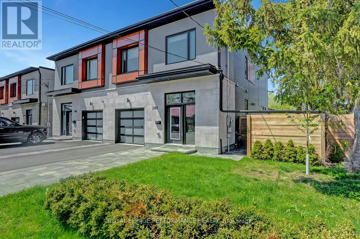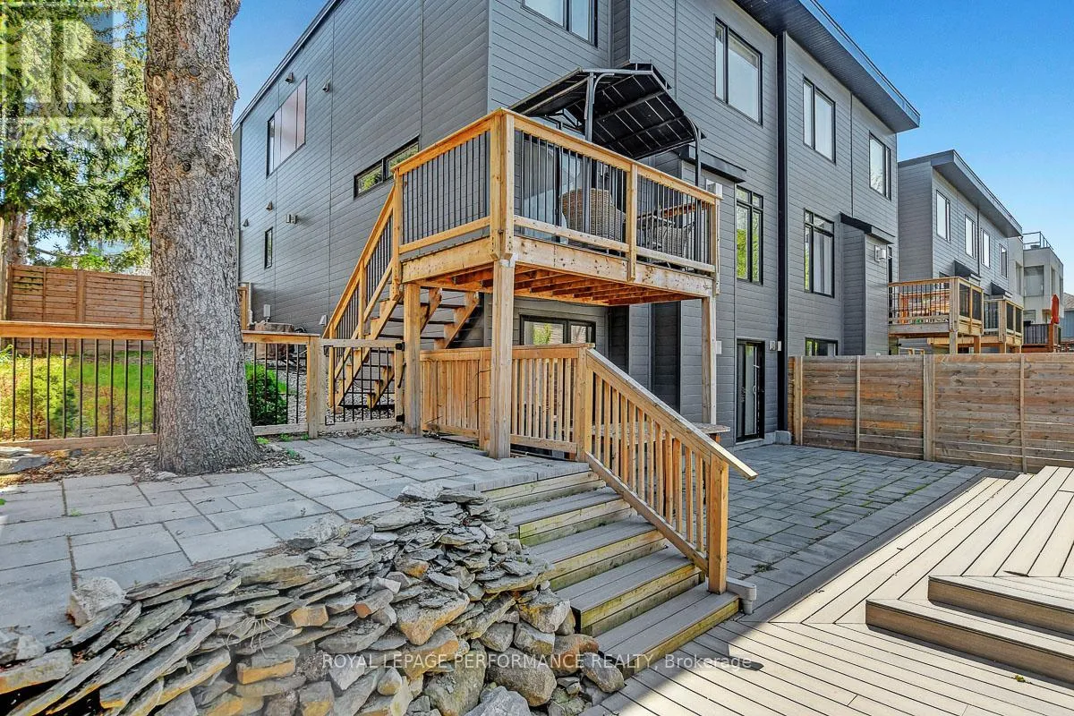 Cross Streets: Woodroffe. ** Directions: Corner of Woodroffe and Deschenes, north of Richmond. Stunning 3+1 bedroom, 3 1/2 bath semi on an oversized corner lot in fantastic location near Ottawa River bike & walking paths, and close to Kichi Zibi Mikan Parkway with easy access to transit, LRT, Quebec & downtown Ottawa. Tasteful high end finishings throughout. Main level features open concept living room with fireplace, dining room with access to back deck & two-toned kitchen boasting an island with breakfast bar seating, stainless steel appliances, & gas stove with double oven. Convenient powder room. Open riser staircase to second level which features primary suite with spacious walk-in closet & luxe 5pce ensuite with soaker tub, double sinks & large glass shower with dual showerheads. 2nd bedroom also has a walk-in closet. Another 5pce bath with seperate tub & shower on the 2nd floor.Handy 2nd floor laundry. Basement family room with walk-out to backyard. 4th bedroom & another full bathroom. Low maintenance fully fenced backyard oasis is landscaped and features a self-clean, 17 foot, 53" deep swim spa with swim tank & sitting area, built into the composite deck, along with a patio, side yard greenspace & 10x10 gazebo. (id:27476)
