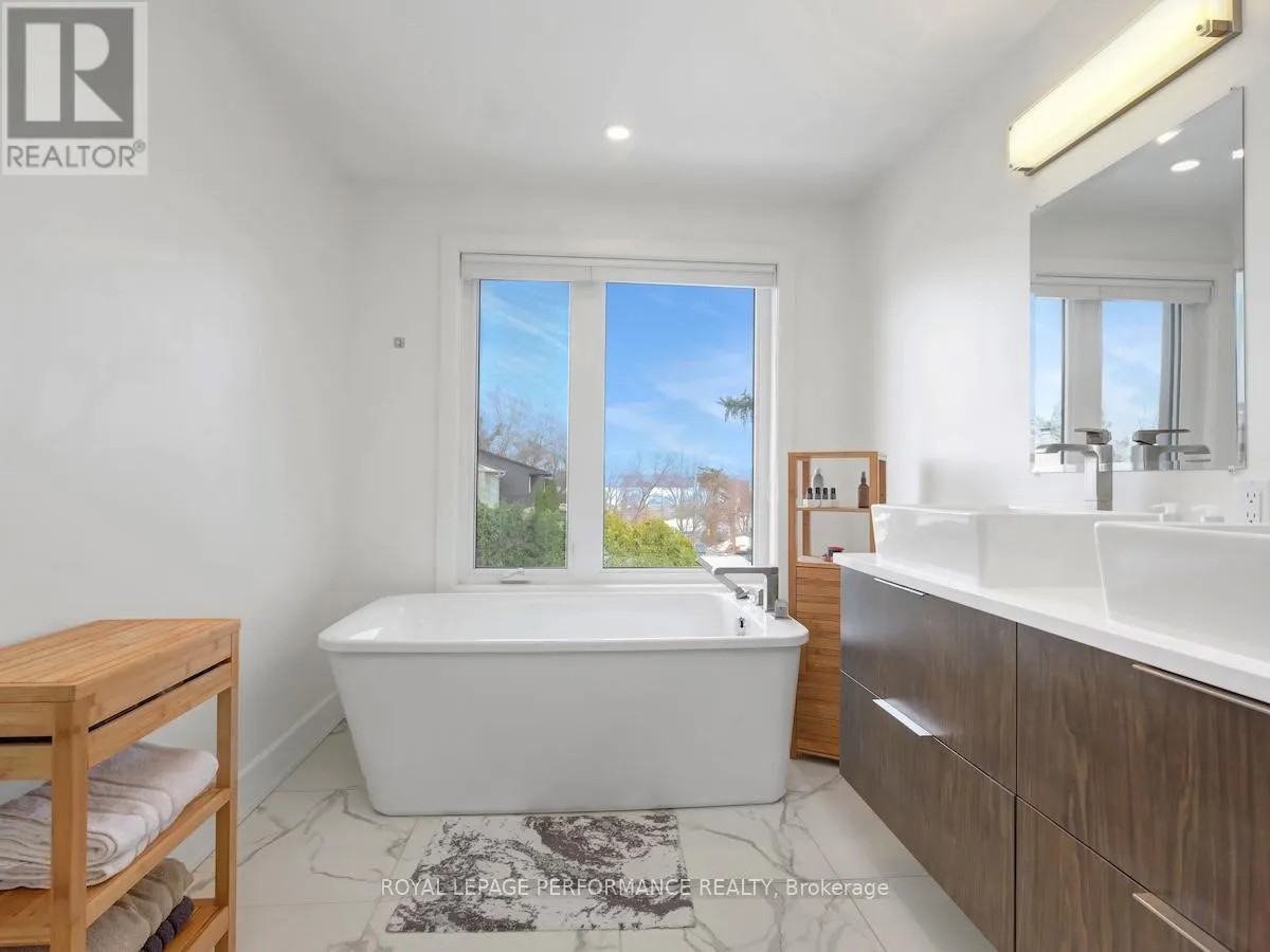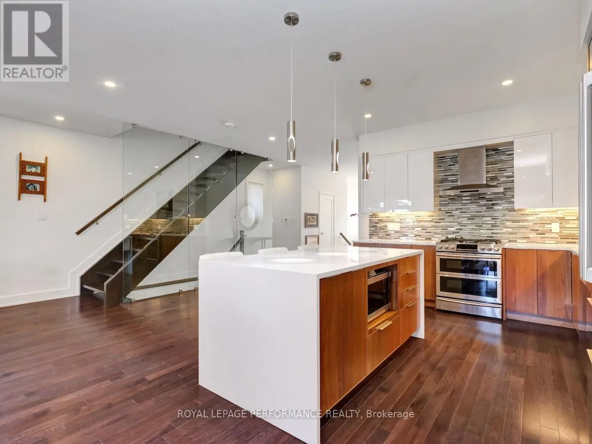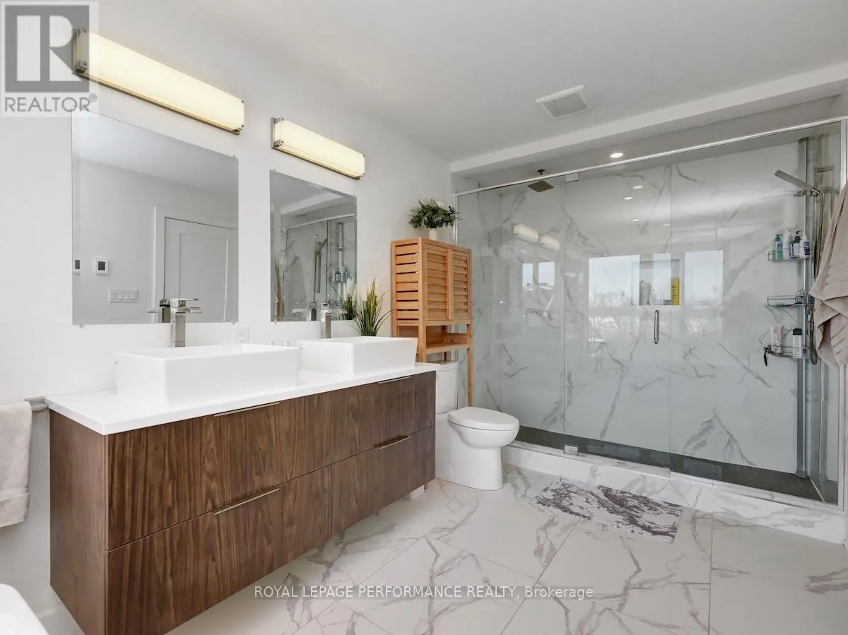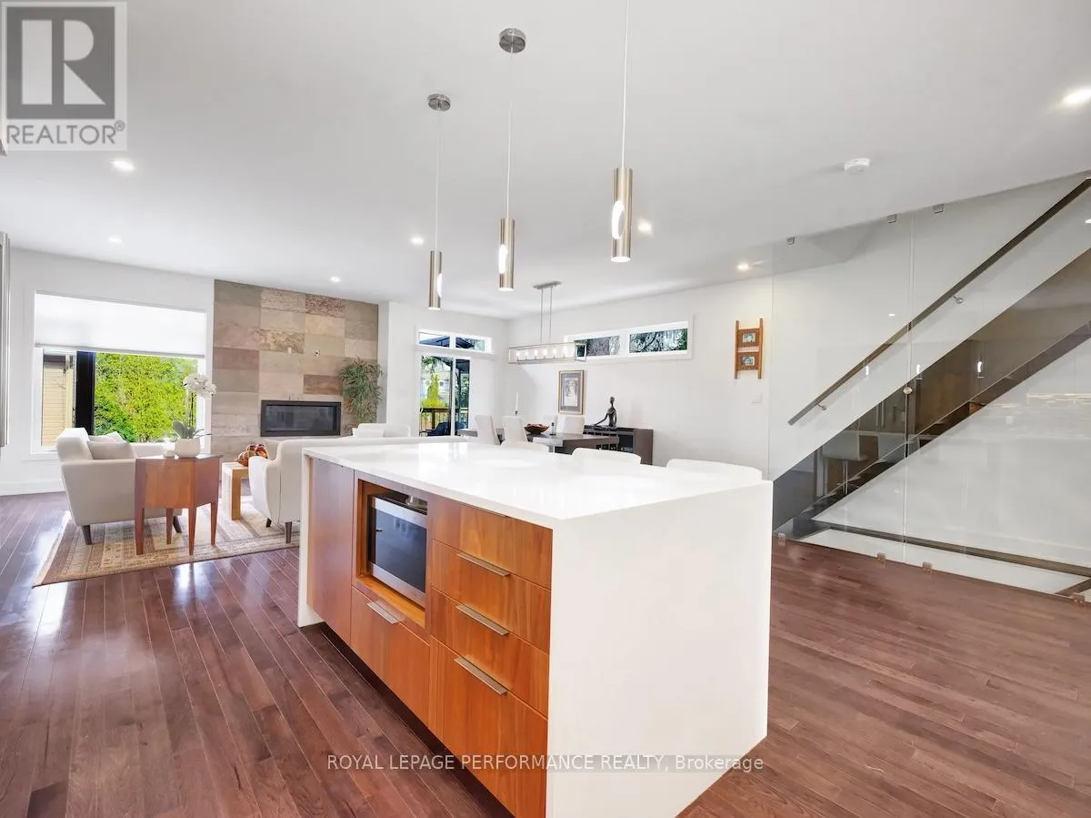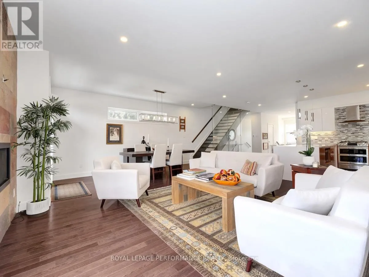 Cross Streets: Woodroffe. ** Directions: Corner of Woodroffe and Deschenes, north of Richmond. Stunning 3+1 bedroom, 3 1/2 bath semi on an oversized corner lot in fantastic location near Ottawa River bike & walking paths, and close to Kichi Zibi Mikan Parkway with easy access to transit, LRT, Quebec & downtown Ottawa. Tasteful high end finishings throughout. Main level features open concept living room with fireplace, dining room with access to back deck & two-toned kitchen boasting an island with breakfast bar seating, stainless steel appliances, & gas stove with double oven. Convenient powder room. Open riser staircase to second level which features primary suite with spacious walk-in closet & luxe 5pce ensuite with soaker tub, double sinks & large glass shower with dual showerheads. 2nd bedroom also has a walk-in closet. Another 5pce bath with seperate tub & shower on the 2nd floor.Handy 2nd floor laundry. Basement family room with walk-out to backyard. 4th bedroom & another full bathroom. Low maintenance fully fenced backyard oasis is landscaped and features a self-clean, 17 foot, 53" deep swim spa with swim tank & sitting area, built into the composite deck, along with a patio, side yard greenspace & 10x10 gazebo. (id:27476)