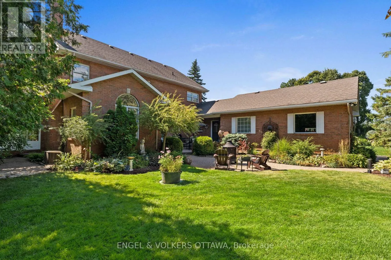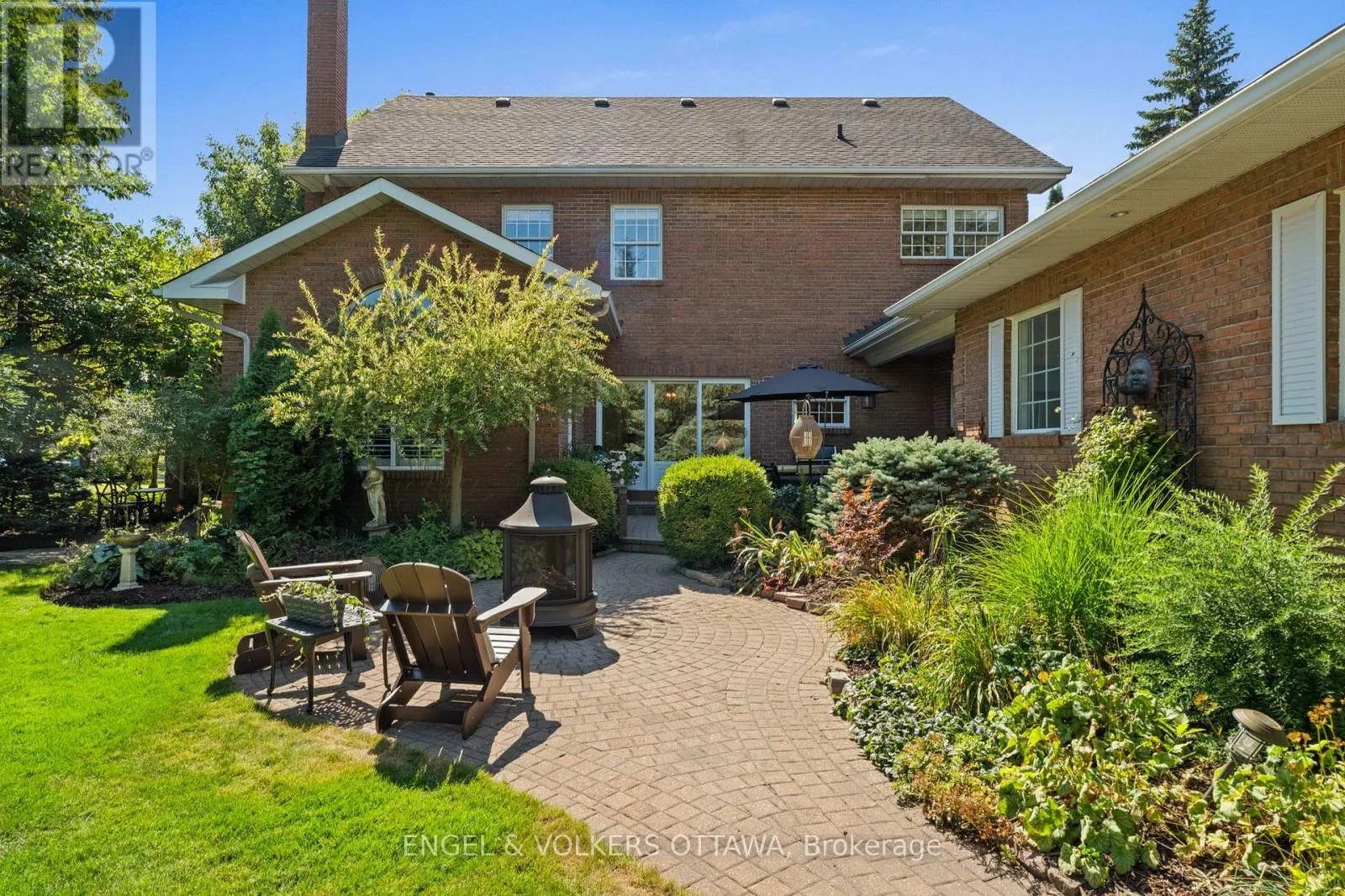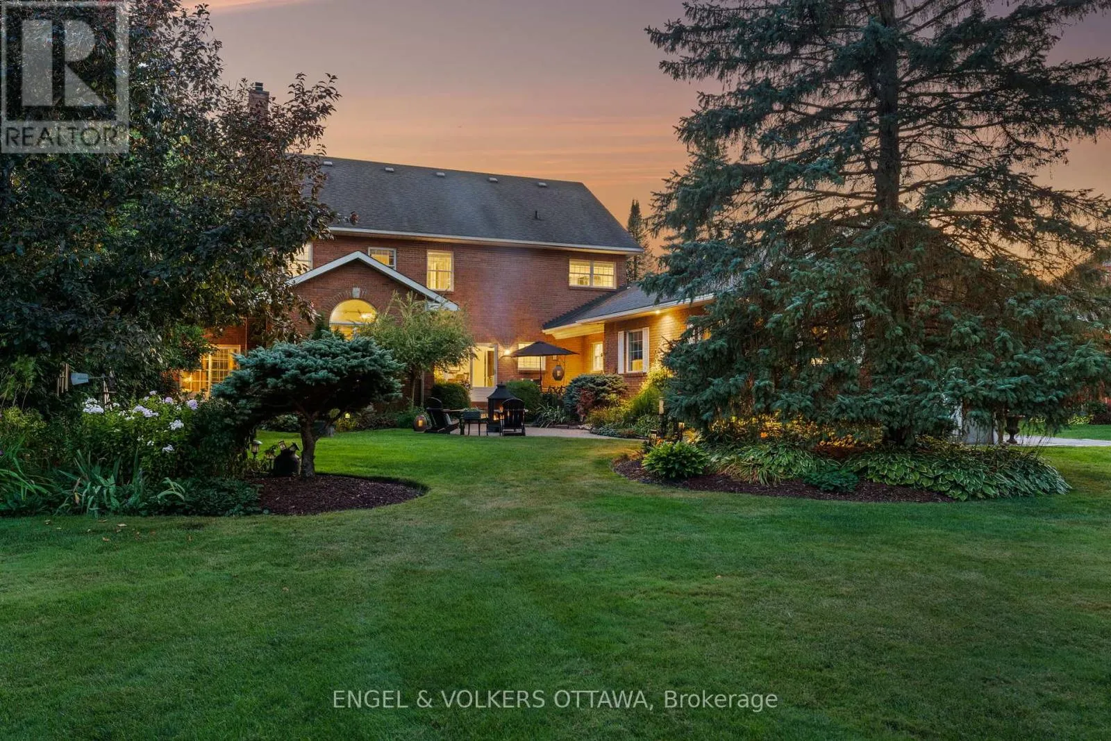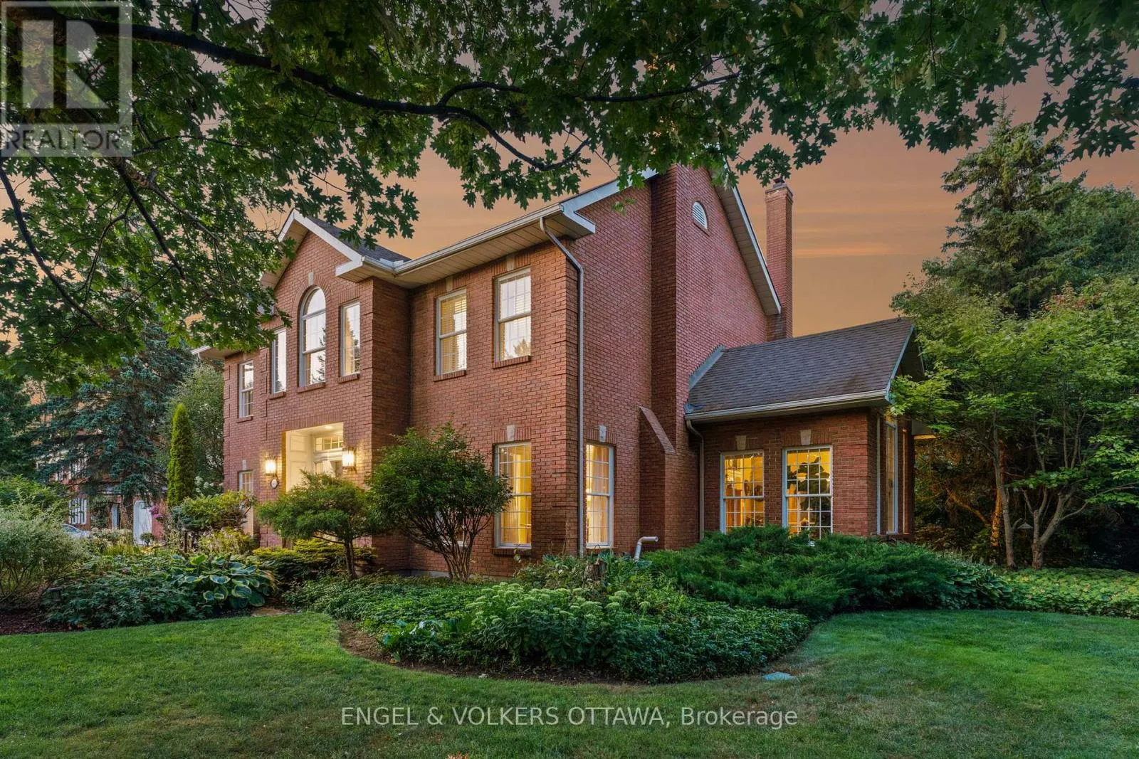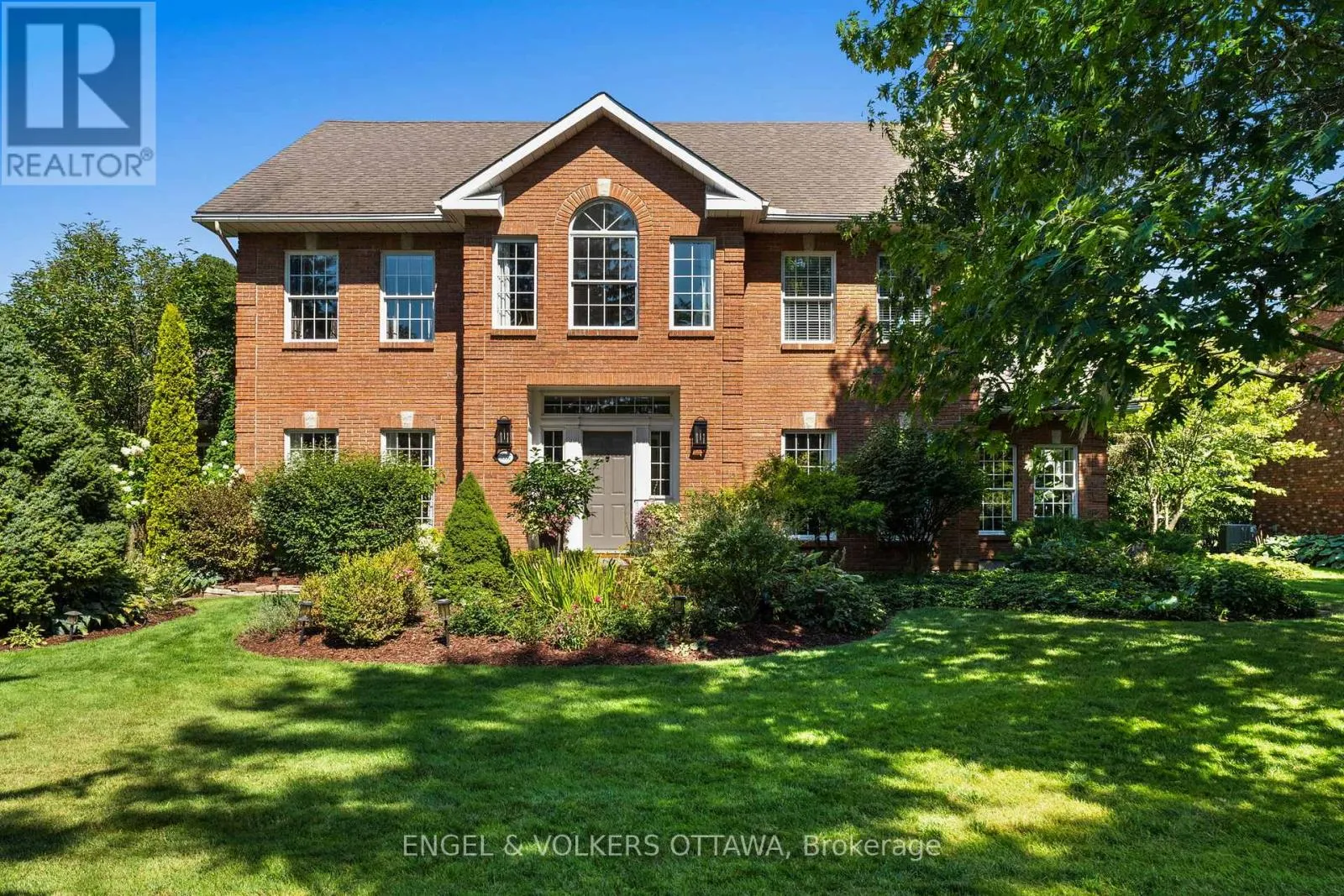 Cross Streets: Bankfield/Potter Drive. ** Directions: Bankfield to Potter, left on Pettapiece, the property will be on your left side. Poised on a serene ravine lot within the prestigious enclave of Manotick Estates, this beautiful Georgian-inspired all-brick residence embodies distinguished architectural character and timeless elegance. Upon entry, elevated ceiling heights, custom millwork, and a gracefully crafted hardwood staircase create an immediate sense of sophistication. The traditional cross-hall plan reveals a formal living room with soaring windows and an elegant gas fireplace, complemented by a grand dining room ideal for entertaining. At the heart of the home, the open-concept kitchen showcases bespoke Cabico cabinetry, quartz countertops, and premium stainless steel appliances. The adjoining breakfast area flows seamlessly into a warm and inviting family room, anchored by a handcrafted brick wood-burning fireplace of exceptional character. Extending from this space, a spectacular sunroom wrapped in floor-to-ceiling windows offers panoramic views of the landscaped grounds and private ravine setting. Thoughtfully designed, the layout also includes a charming side entrance with a covered porch, leading into a well-appointed mudroom and laundry area, along with a versatile office that could easily serve as a main floor bedroom. The home's upper storey is graced with an elegant and spacious primary suite, featuring a stunning ensuite with dual custom walnut vanities, a travertine glass shower, deep soaker tub, and heated flooring. Three additional bedrooms, each generously scaled and filled with natural light, share access to a beautifully appointed bathroom. The meticulously finished lower level presents a cozy family room with a striking feature brick wall, versatile flex rooms ideal for a gym or recreation space, abundant storage, and convenient direct access to the garage. Outdoors, the enchanting backyard evokes the charm of an English garden, with a serene courtyard, water features, and sweeping views of the private ravine lot, a perfect setting for future poolside living. (id:27476)