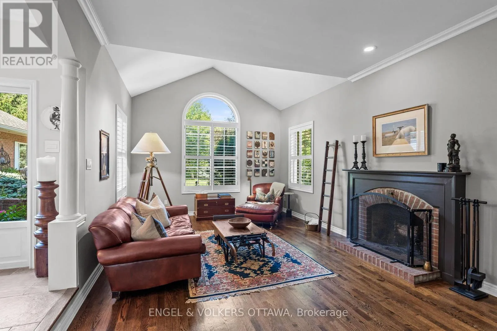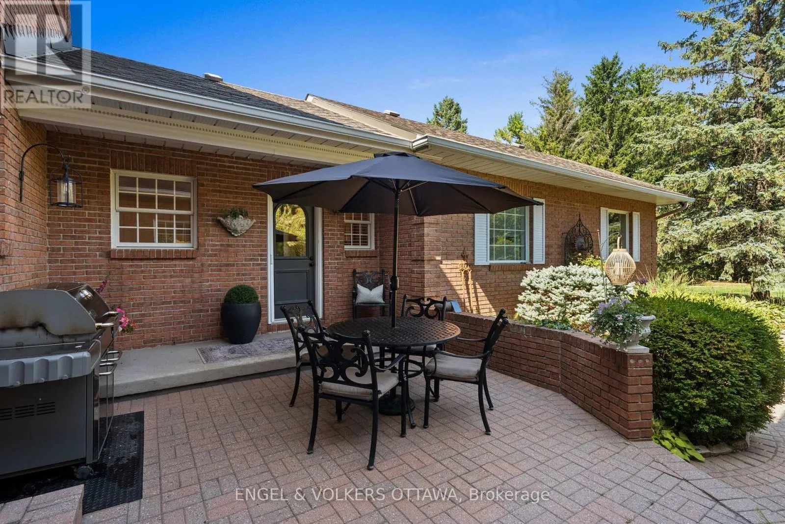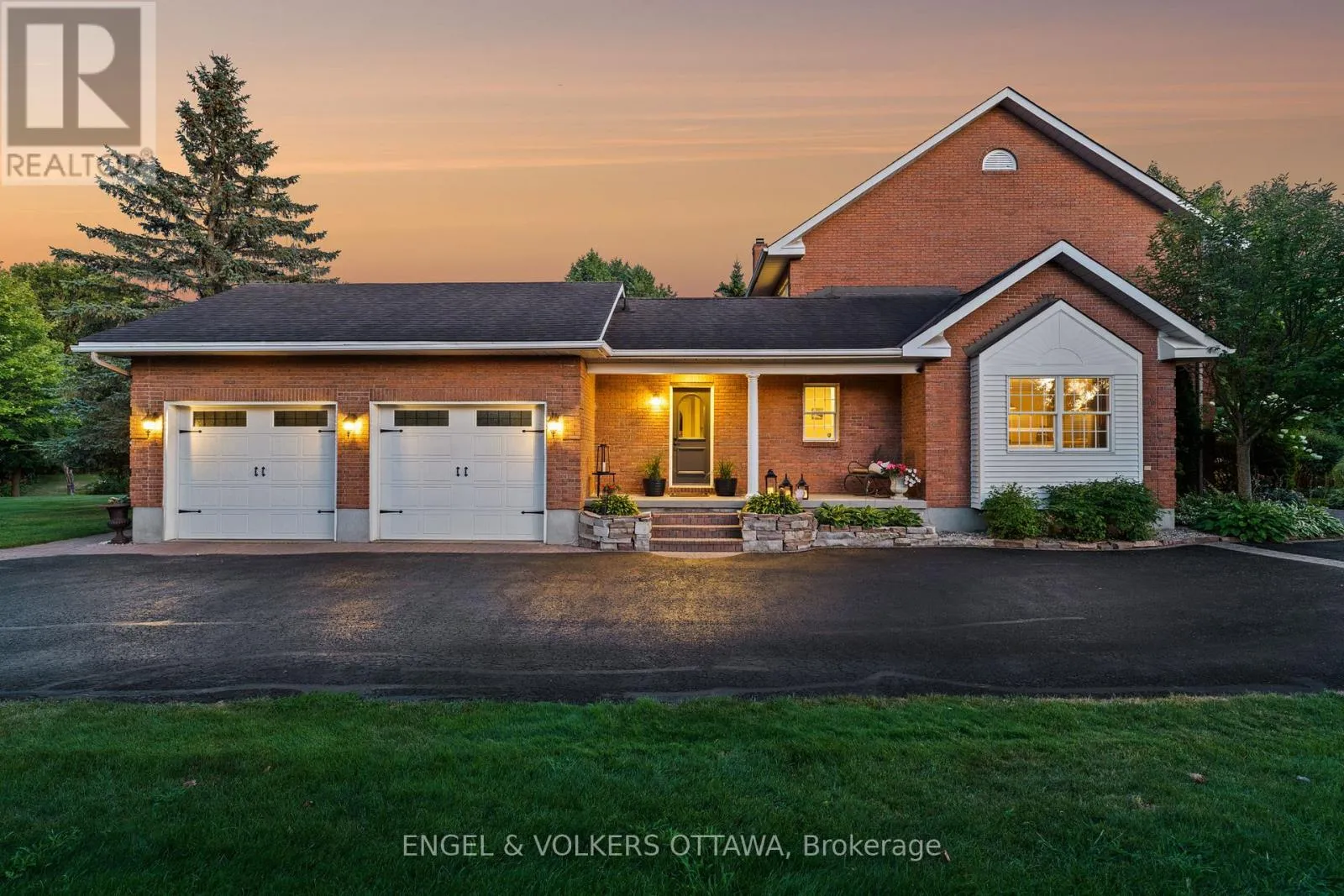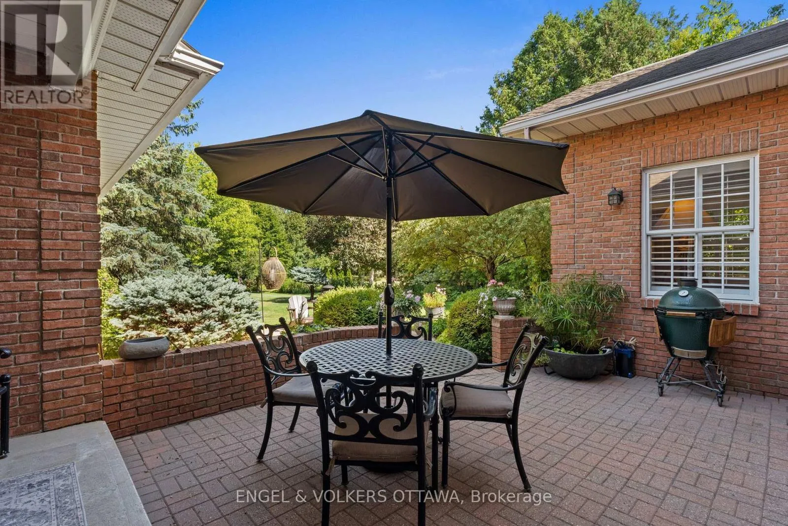Cross Streets: Bankfield/Potter Drive. ** Directions: Bankfield to Potter, left on Pettapiece, the property will be on your left side. Poised on a serene ravine lot within the prestigious enclave of Manotick Estates, this beautiful Georgian-inspired all-brick residence embodies distinguished architectural character and timeless elegance. Upon entry, elevated ceiling heights, custom millwork, and a gracefully crafted hardwood staircase create an immediate sense of sophistication. The traditional cross-hall plan reveals a formal living room with soaring windows and an elegant gas fireplace, complemented by a grand dining room ideal for entertaining. At the heart of the home, the open-concept kitchen showcases bespoke Cabico cabinetry, quartz countertops, and premium stainless steel appliances. The adjoining breakfast area flows seamlessly into a warm and inviting family room, anchored by a handcrafted brick wood-burning fireplace of exceptional character. Extending from this space, a spectacular sunroom wrapped in floor-to-ceiling windows offers panoramic views of the landscaped grounds and private ravine setting. Thoughtfully designed, the layout also includes a charming side entrance with a covered porch, leading into a well-appointed mudroom and laundry area, along with a versatile office that could easily serve as a main floor bedroom. The home's upper storey is graced with an elegant and spacious primary suite, featuring a stunning ensuite with dual custom walnut vanities, a travertine glass shower, deep soaker tub, and heated flooring. Three additional bedrooms, each generously scaled and filled with natural light, share access to a beautifully appointed bathroom. The meticulously finished lower level presents a cozy family room with a striking feature brick wall, versatile flex rooms ideal for a gym or recreation space, abundant storage, and convenient direct access to the garage. Outdoors, the enchanting backyard evokes the charm of an English garden, with a serene courtyard, water features, and sweeping views of the private ravine lot, a perfect setting for future poolside living. (id:27476)