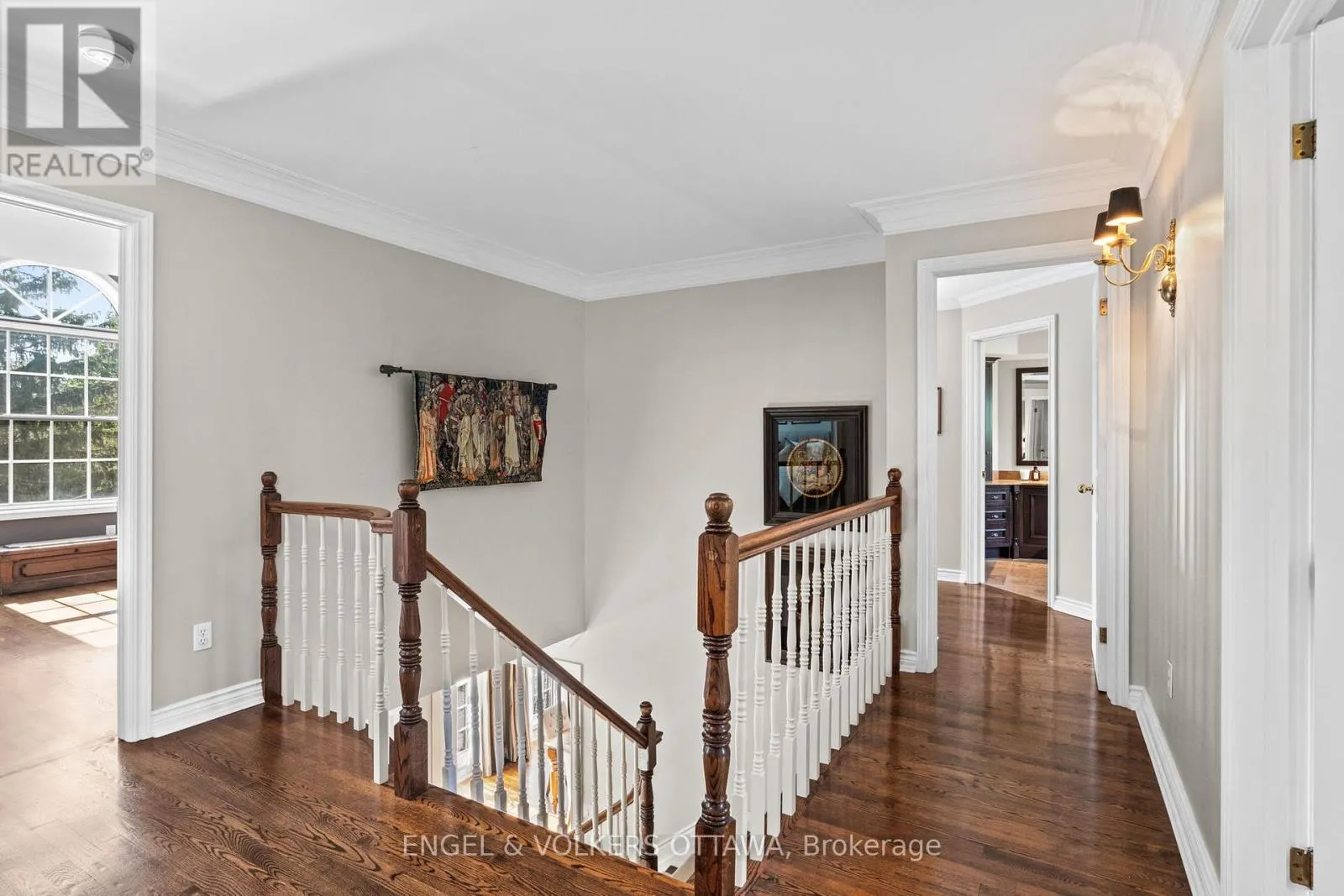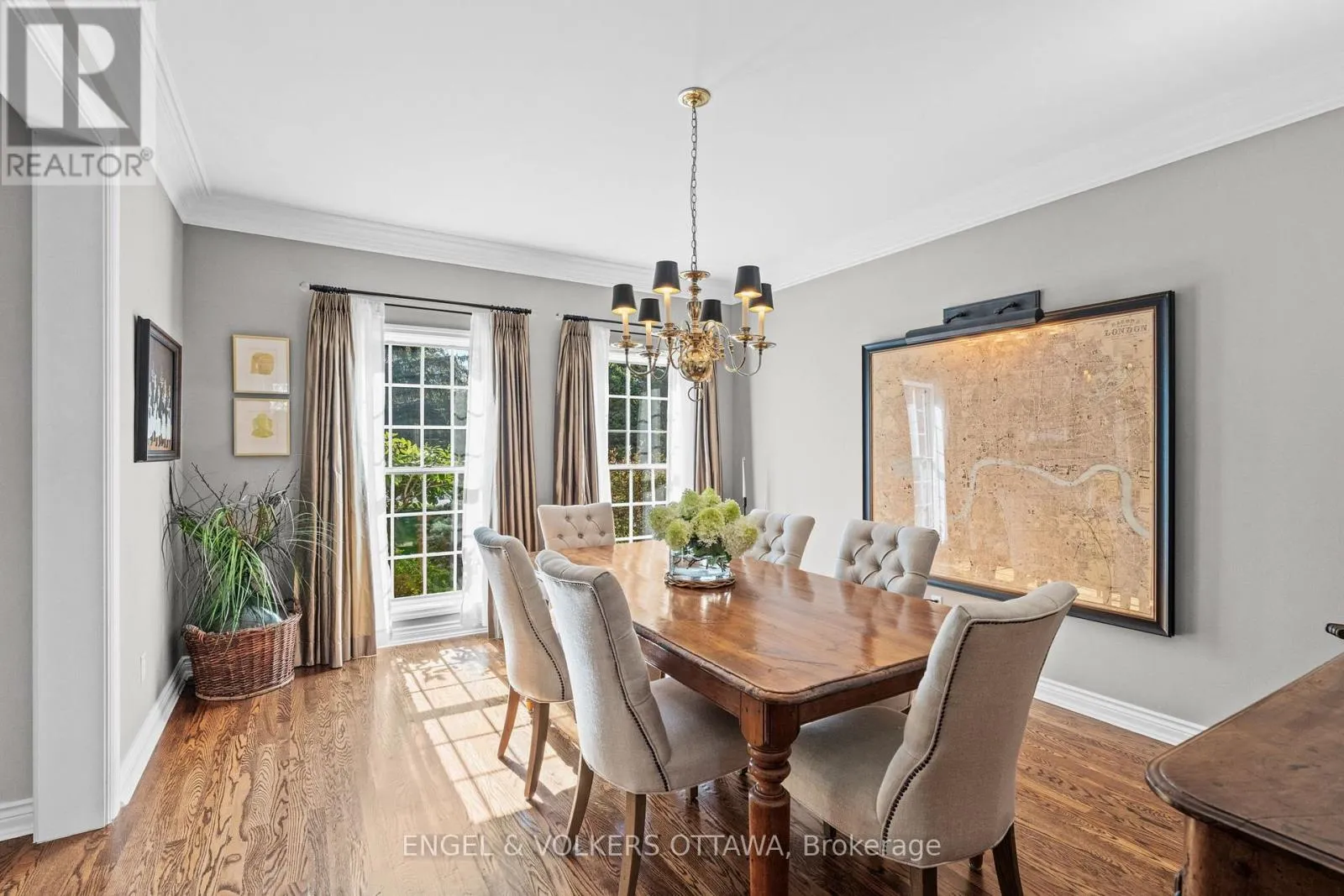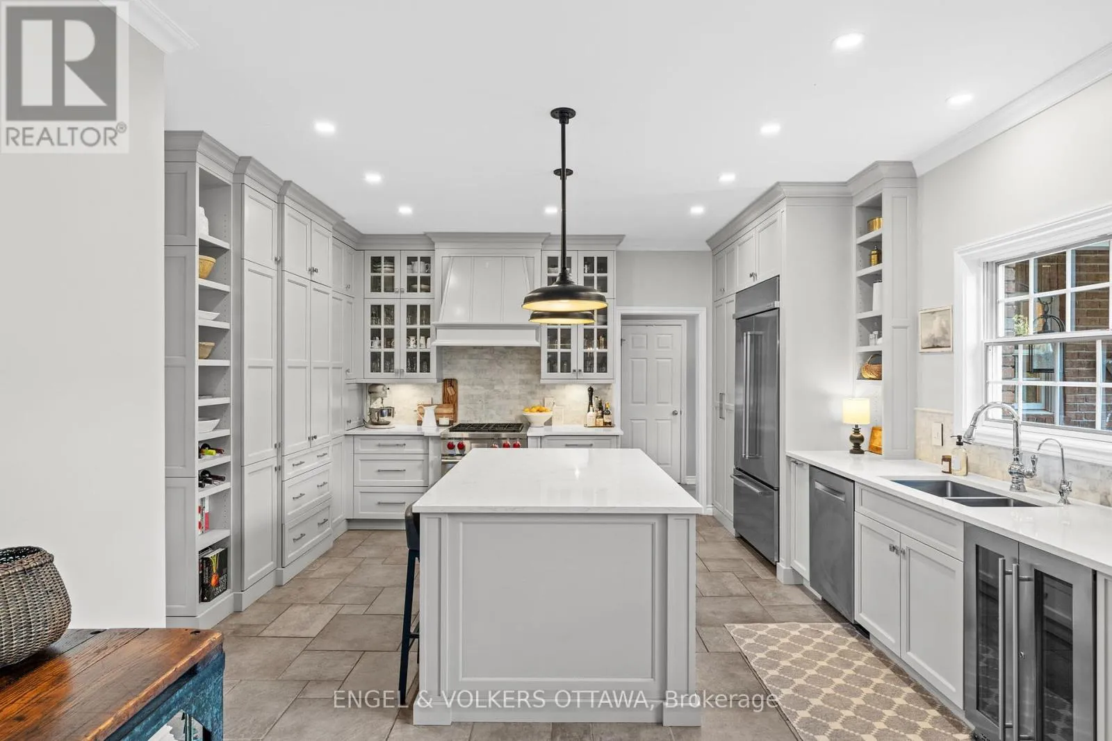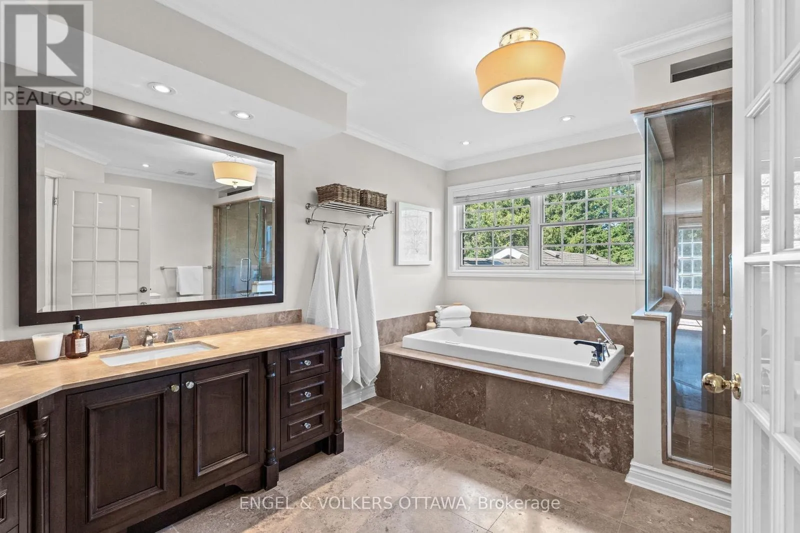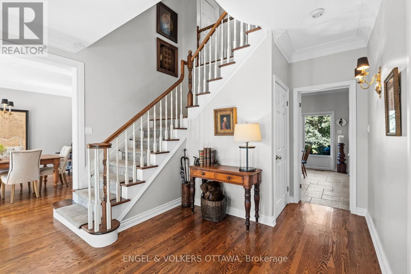 Cross Streets: Bankfield/Potter Drive. ** Directions: Bankfield to Potter, left on Pettapiece, the property will be on your left side. Poised on a serene ravine lot within the prestigious enclave of Manotick Estates, this beautiful Georgian-inspired all-brick residence embodies distinguished architectural character and timeless elegance. Upon entry, elevated ceiling heights, custom millwork, and a gracefully crafted hardwood staircase create an immediate sense of sophistication. The traditional cross-hall plan reveals a formal living room with soaring windows and an elegant gas fireplace, complemented by a grand dining room ideal for entertaining. At the heart of the home, the open-concept kitchen showcases bespoke Cabico cabinetry, quartz countertops, and premium stainless steel appliances. The adjoining breakfast area flows seamlessly into a warm and inviting family room, anchored by a handcrafted brick wood-burning fireplace of exceptional character. Extending from this space, a spectacular sunroom wrapped in floor-to-ceiling windows offers panoramic views of the landscaped grounds and private ravine setting. Thoughtfully designed, the layout also includes a charming side entrance with a covered porch, leading into a well-appointed mudroom and laundry area, along with a versatile office that could easily serve as a main floor bedroom. The home's upper storey is graced with an elegant and spacious primary suite, featuring a stunning ensuite with dual custom walnut vanities, a travertine glass shower, deep soaker tub, and heated flooring. Three additional bedrooms, each generously scaled and filled with natural light, share access to a beautifully appointed bathroom. The meticulously finished lower level presents a cozy family room with a striking feature brick wall, versatile flex rooms ideal for a gym or recreation space, abundant storage, and convenient direct access to the garage. Outdoors, the enchanting backyard evokes the charm of an English garden, with a serene courtyard, water features, and sweeping views of the private ravine lot, a perfect setting for future poolside living. (id:27476)