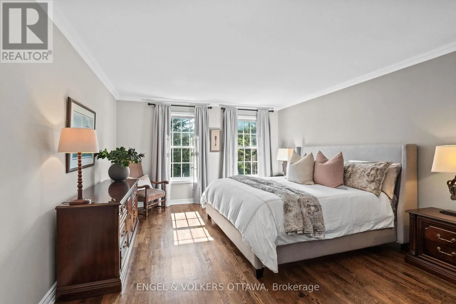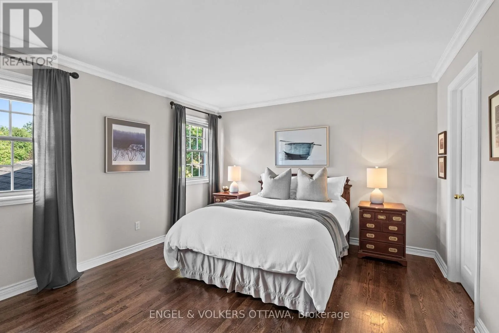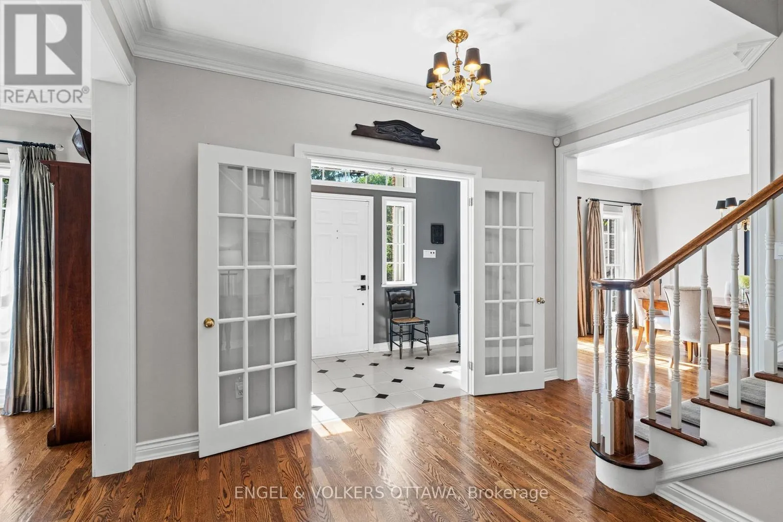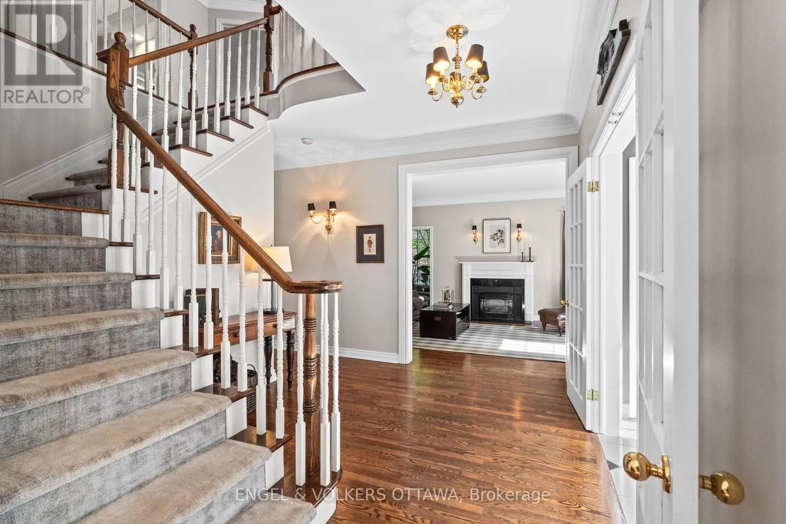 Cross Streets: Bankfield/Potter Drive. ** Directions: Bankfield to Potter, left on Pettapiece, the property will be on your left side. Poised on a serene ravine lot within the prestigious enclave of Manotick Estates, this beautiful Georgian-inspired all-brick residence embodies distinguished architectural character and timeless elegance. Upon entry, elevated ceiling heights, custom millwork, and a gracefully crafted hardwood staircase create an immediate sense of sophistication. The traditional cross-hall plan reveals a formal living room with soaring windows and an elegant gas fireplace, complemented by a grand dining room ideal for entertaining. At the heart of the home, the open-concept kitchen showcases bespoke Cabico cabinetry, quartz countertops, and premium stainless steel appliances. The adjoining breakfast area flows seamlessly into a warm and inviting family room, anchored by a handcrafted brick wood-burning fireplace of exceptional character. Extending from this space, a spectacular sunroom wrapped in floor-to-ceiling windows offers panoramic views of the landscaped grounds and private ravine setting. Thoughtfully designed, the layout also includes a charming side entrance with a covered porch, leading into a well-appointed mudroom and laundry area, along with a versatile office that could easily serve as a main floor bedroom. The home's upper storey is graced with an elegant and spacious primary suite, featuring a stunning ensuite with dual custom walnut vanities, a travertine glass shower, deep soaker tub, and heated flooring. Three additional bedrooms, each generously scaled and filled with natural light, share access to a beautifully appointed bathroom. The meticulously finished lower level presents a cozy family room with a striking feature brick wall, versatile flex rooms ideal for a gym or recreation space, abundant storage, and convenient direct access to the garage. Outdoors, the enchanting backyard evokes the charm of an English garden, with a serene courtyard, water features, and sweeping views of the private ravine lot, a perfect setting for future poolside living. (id:27476)