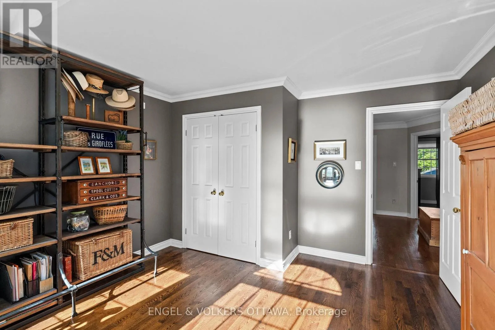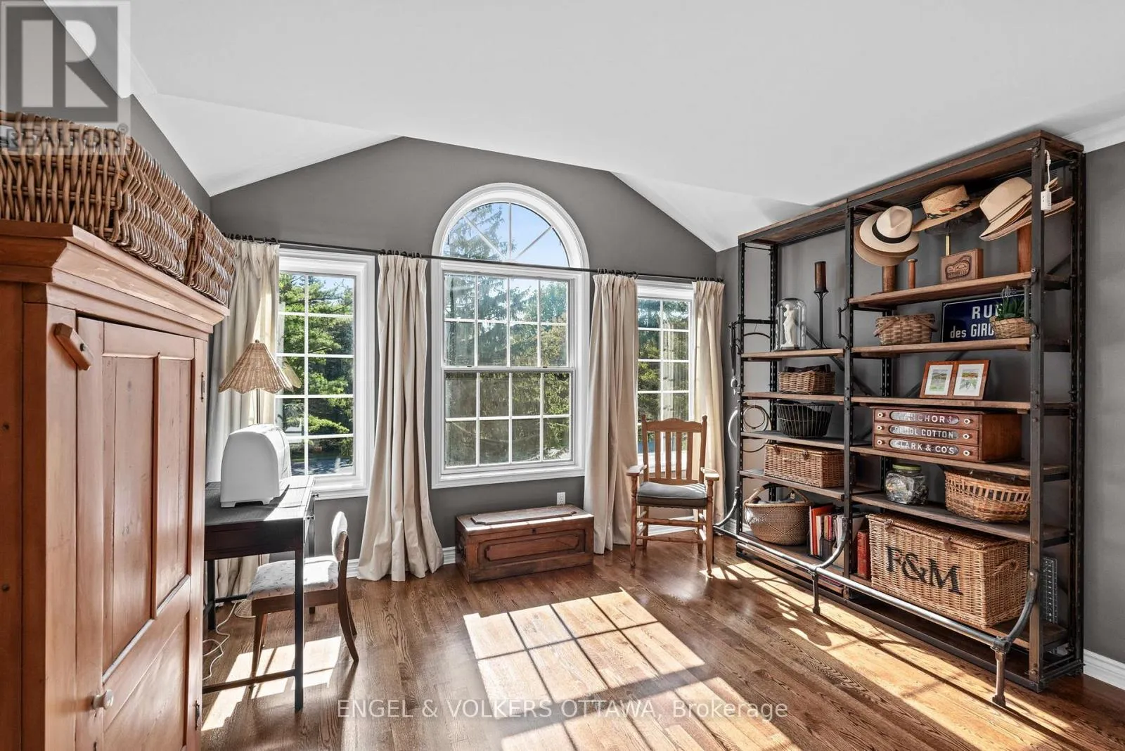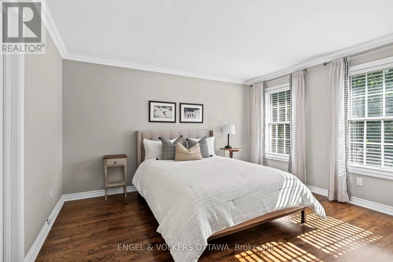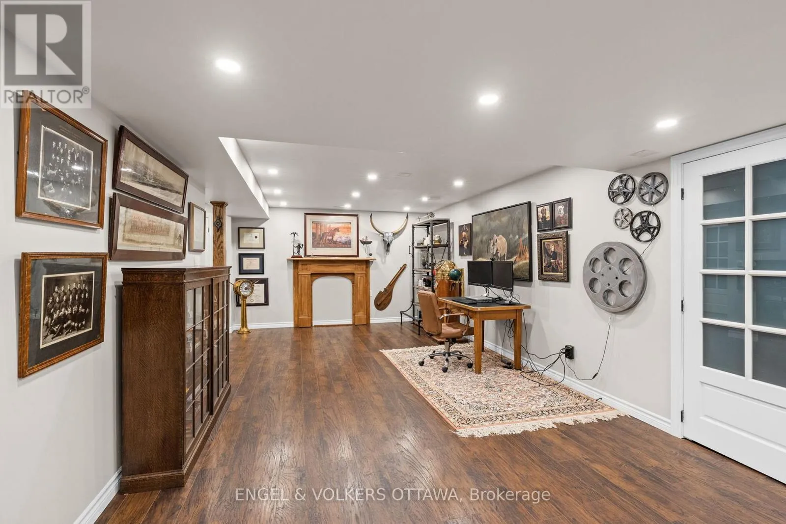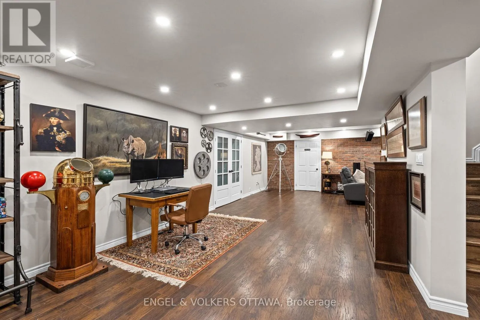 Cross Streets: Bankfield/Potter Drive. ** Directions: Bankfield to Potter, left on Pettapiece, the property will be on your left side. Poised on a serene ravine lot within the prestigious enclave of Manotick Estates, this beautiful Georgian-inspired all-brick residence embodies distinguished architectural character and timeless elegance. Upon entry, elevated ceiling heights, custom millwork, and a gracefully crafted hardwood staircase create an immediate sense of sophistication. The traditional cross-hall plan reveals a formal living room with soaring windows and an elegant gas fireplace, complemented by a grand dining room ideal for entertaining. At the heart of the home, the open-concept kitchen showcases bespoke Cabico cabinetry, quartz countertops, and premium stainless steel appliances. The adjoining breakfast area flows seamlessly into a warm and inviting family room, anchored by a handcrafted brick wood-burning fireplace of exceptional character. Extending from this space, a spectacular sunroom wrapped in floor-to-ceiling windows offers panoramic views of the landscaped grounds and private ravine setting. Thoughtfully designed, the layout also includes a charming side entrance with a covered porch, leading into a well-appointed mudroom and laundry area, along with a versatile office that could easily serve as a main floor bedroom. The home's upper storey is graced with an elegant and spacious primary suite, featuring a stunning ensuite with dual custom walnut vanities, a travertine glass shower, deep soaker tub, and heated flooring. Three additional bedrooms, each generously scaled and filled with natural light, share access to a beautifully appointed bathroom. The meticulously finished lower level presents a cozy family room with a striking feature brick wall, versatile flex rooms ideal for a gym or recreation space, abundant storage, and convenient direct access to the garage. Outdoors, the enchanting backyard evokes the charm of an English garden, with a serene courtyard, water features, and sweeping views of the private ravine lot, a perfect setting for future poolside living. (id:27476)