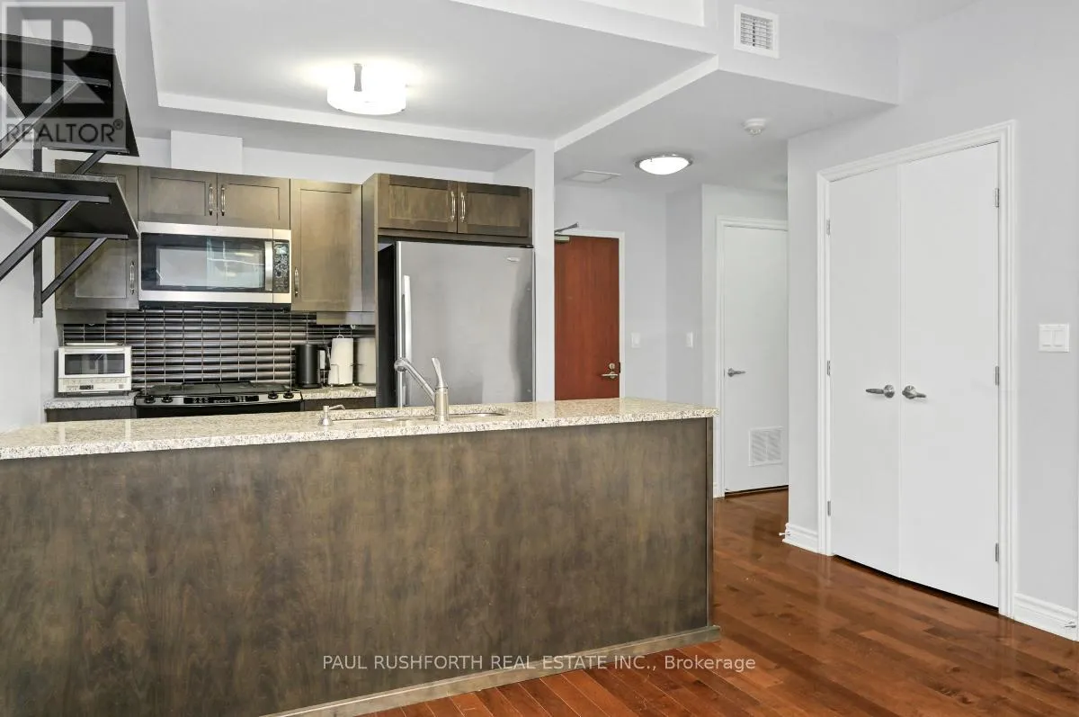 Roosevelt / Byron Welcome to WESTBORO STATION in the heart of bustling Westboro. Ideally located on the fringe of a residential neighbourhood with access parks, paths and green space. Unbeatable WALKABILITY with everything you need at your front door...fitness centres, artisan shops, bars, restaurants, cafes, grocery and more...it does not get any better!! This STUNNING 1bedroom, 1bathroom open concept condo with PERFECT KITCHEN is a SHOWSTOPPER!! Rare 20x20 OUTDOOR TERRACE is magnificent and provides a huge extension to your living space, and HOOK-UP for BBQ. NATURAL GAS HEAT and CENTRAL AIR CONDITIONING. Convenient 2nd floor allows for easy access via the stairs if preferred over the elevator. 1x UNDERGROUND PARKING. Stylish, modern finishes and design choices. GAS STOVE, GAS DRYER, stainless appliances, IN-UNIT LAUNDRY, Safe, clean quiet...simply a wonderful space to call HOME. Only a 5min walk (400m) to future Kichi Zibi OTRAIN Station with access to lines 1 and 3 putting all city locations an easy train ride away! Some photos have been virtually staged. VACANT and MOVE IN READY! (id:27476)
