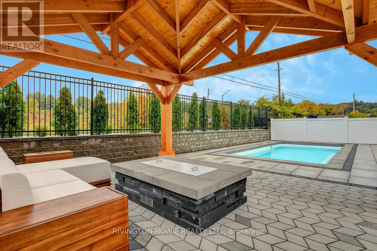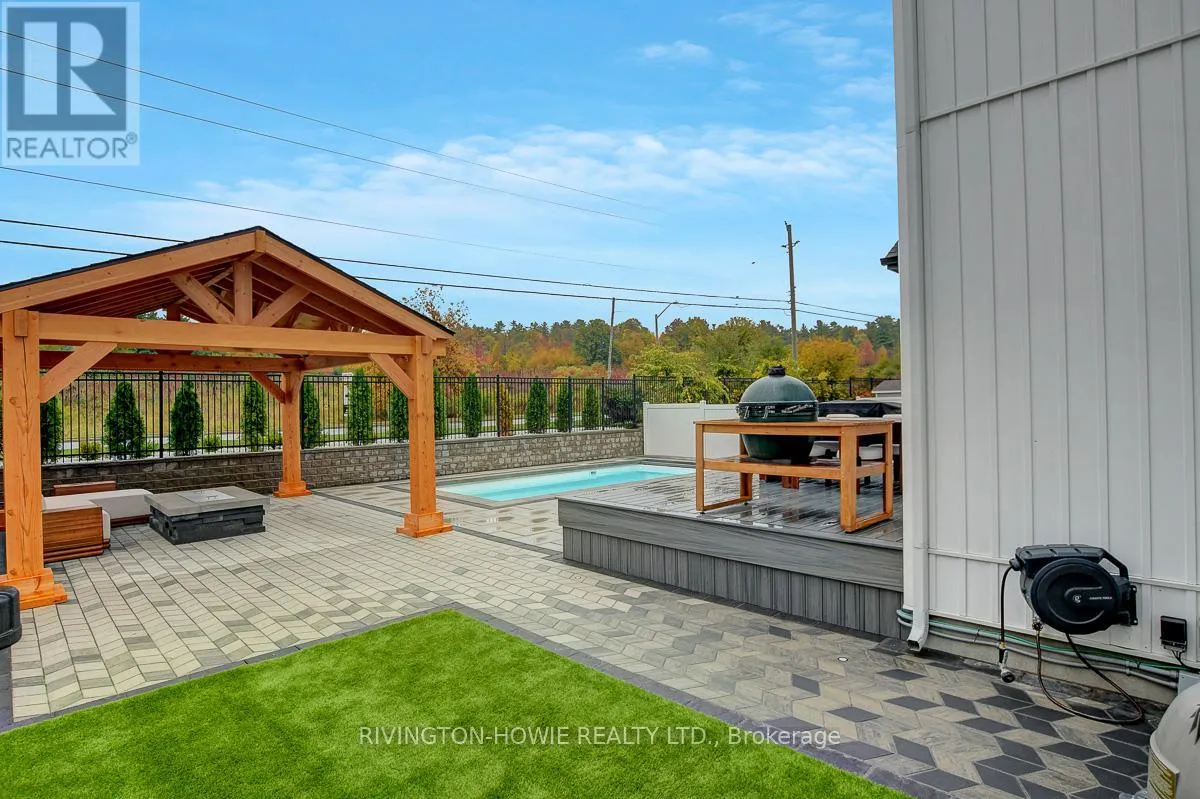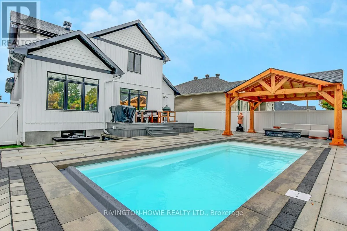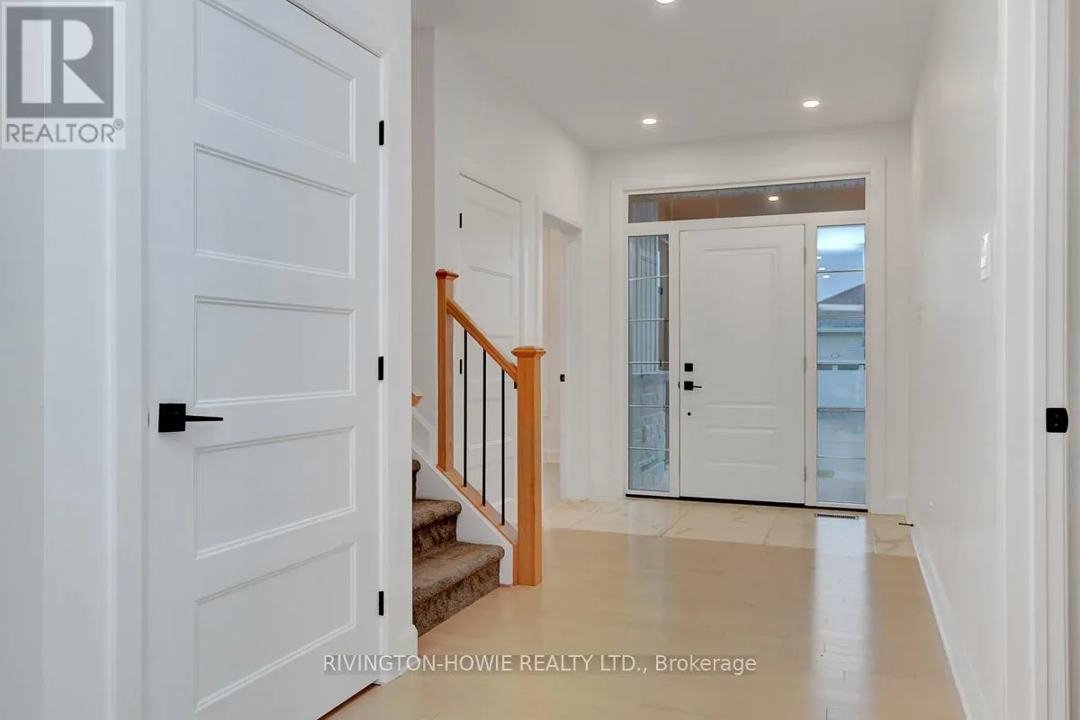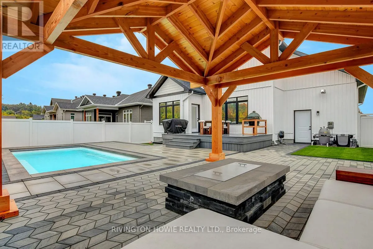 Cross Streets: March Road and Donald B Munro Drive. ** Directions: March Road to Donald B Munro Drive to left on Farmridge Ave left on Meadowridge Circle. Welcome to this exceptional 2021-built two-story home, ideally located in the desirable Village of Carp. Combining timeless curb appeal with vertical siding and upscale design, this residence offers a perfect balance of elegance and function. The main floor features an inviting open-concept layout anchored by a stunning kitchen with a waterfall granite island, built-in appliances, side-by-side fridge and freezer, pantry, and thoughtful finishes. Flowing seamlessly into the great room and bright breakfast nook, this space is perfect for family living and entertaining. The breakfast nook provides direct access to the resort-style backyard, complete with an inground swimming pool, multi-level deck, interlock patio, pergola, astro turf, and full exterior irrigation and night lighting an outdoor oasis designed for both relaxation and gatherings. A dedicated main floor office offers convenience for work or study, while main floor laundry adds everyday practicality.Upstairs, you'll find three spacious bedrooms including the primary retreat, highlighted by a walk-in closet and a luxurious 5-piece en suite with spa-like finishes. The fully finished lower level expands the living space with a stylish family room featuring a modern electric fireplace, floating shelves, custom storage, and a versatile fourth bedroom for guests or family.Throughout the home, you'll appreciate the thoughtful details warm hardwood flooring, upscale tile, designer lighting, and high-end craftsmanship that distinguish this property. A rare feature in the Village, the oversized 3-car garage provides ample parking and storage.This is more than a home; its a lifestyle where modern design meets comfort, and where every detail has been carefully considered. Don't miss the opportunity to own a signature Rivington Homes build in one of Ottawas most sought-after communities. (id:27476)