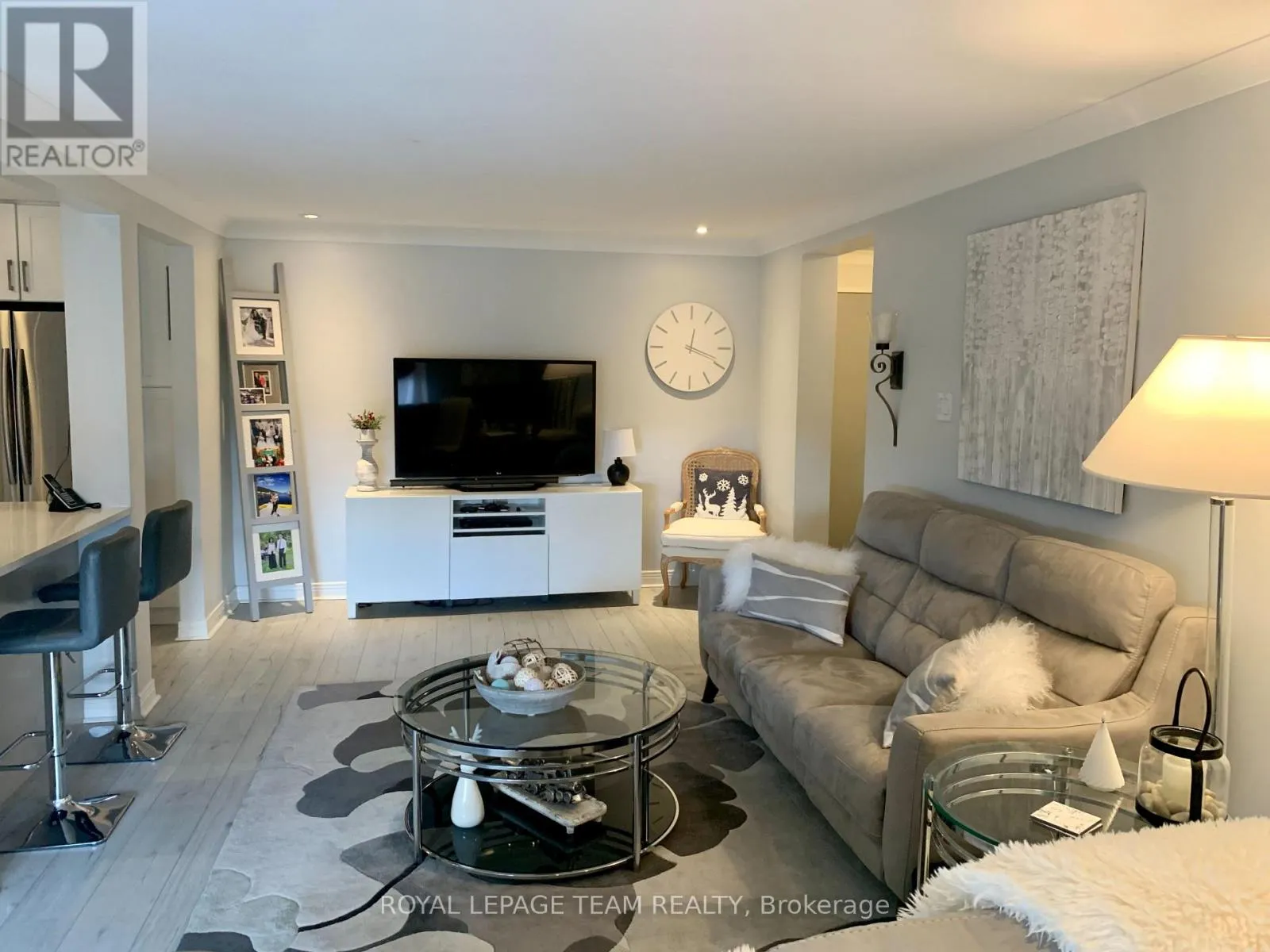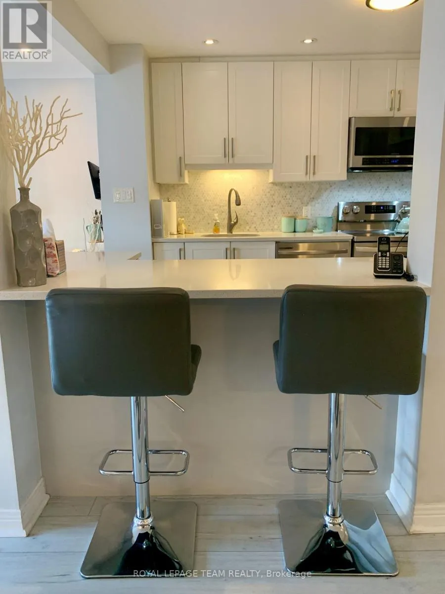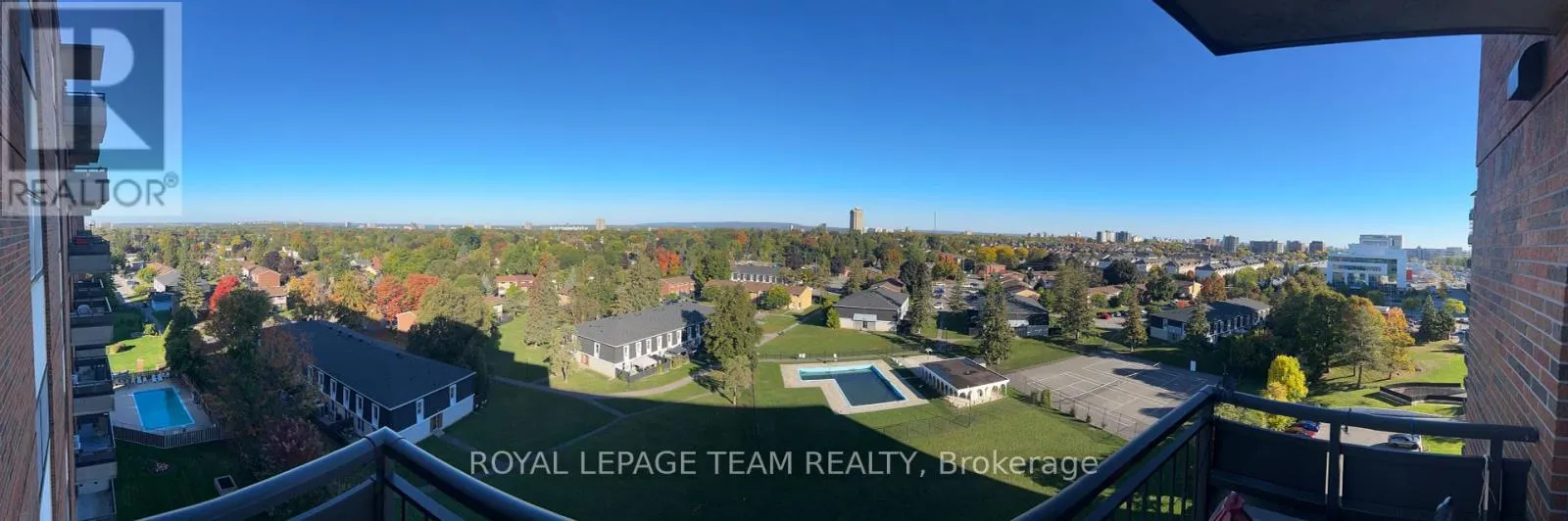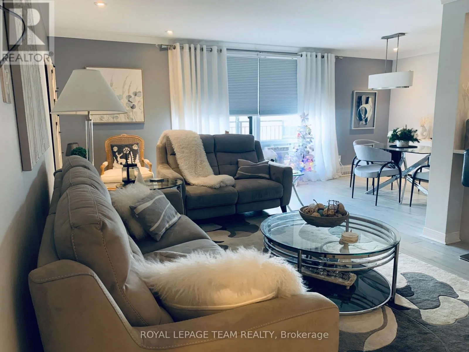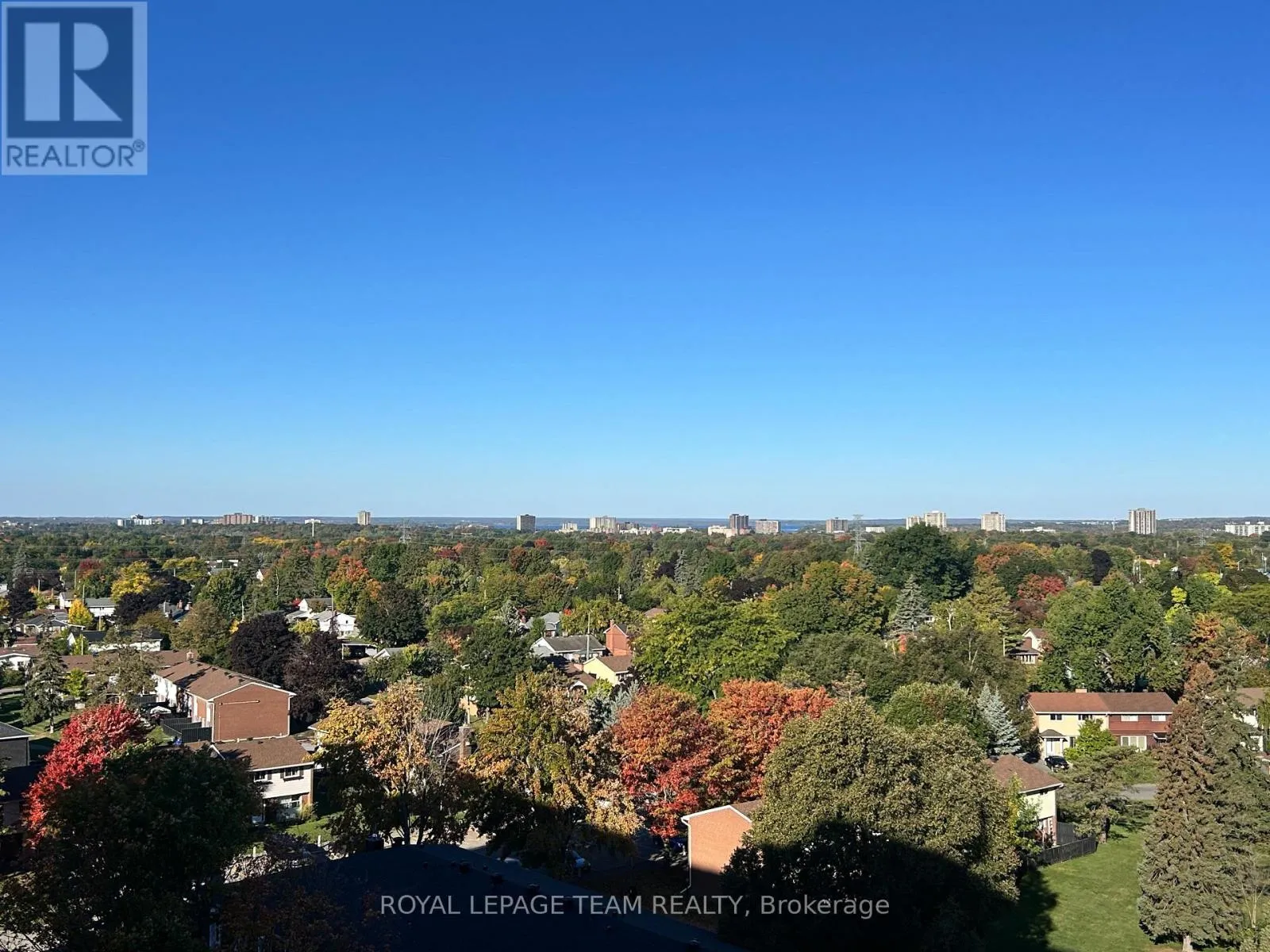 Cross Streets: Baseline just west of Maitland Avenue. ** Directions: Merivale to Baseline on the North West Corner. Welcome to 1485 Baseline Road, Apartment 1004. This is a great location that is perfect for retired couples looking to downsize. This 2 bedroom, 1 bathroom apartment is sure to impress. First and foremost, the view is spectacular! The layout features an open concept living and dining area with great floors, a large sunny kitchen with quartz counters tops, an island and breakfast counter, spacious eating area and a patio door that leads to an amazing belcony. It also features a large foyer and a large in unit storage room. There is also a large locker in the basement. The elevators go to the indoor garage. You will be impressed with the generously sized primary bedroom. There is an additional great sized bedroom and a full bathroom. The laundry room is conveniently located on the lower level right off the elevators. There was over $60,000 done in renovations since 2015. This apartment is located close transit, schools, parks and plenty of shopping. There is an amazing tenant who would love to stay. Call the listing agent for details. The lease expires February 28, 2026. 24 hour notice for all showings. Parking #95 Locker #45A. The furniture is from the previous resident. (id:27476)