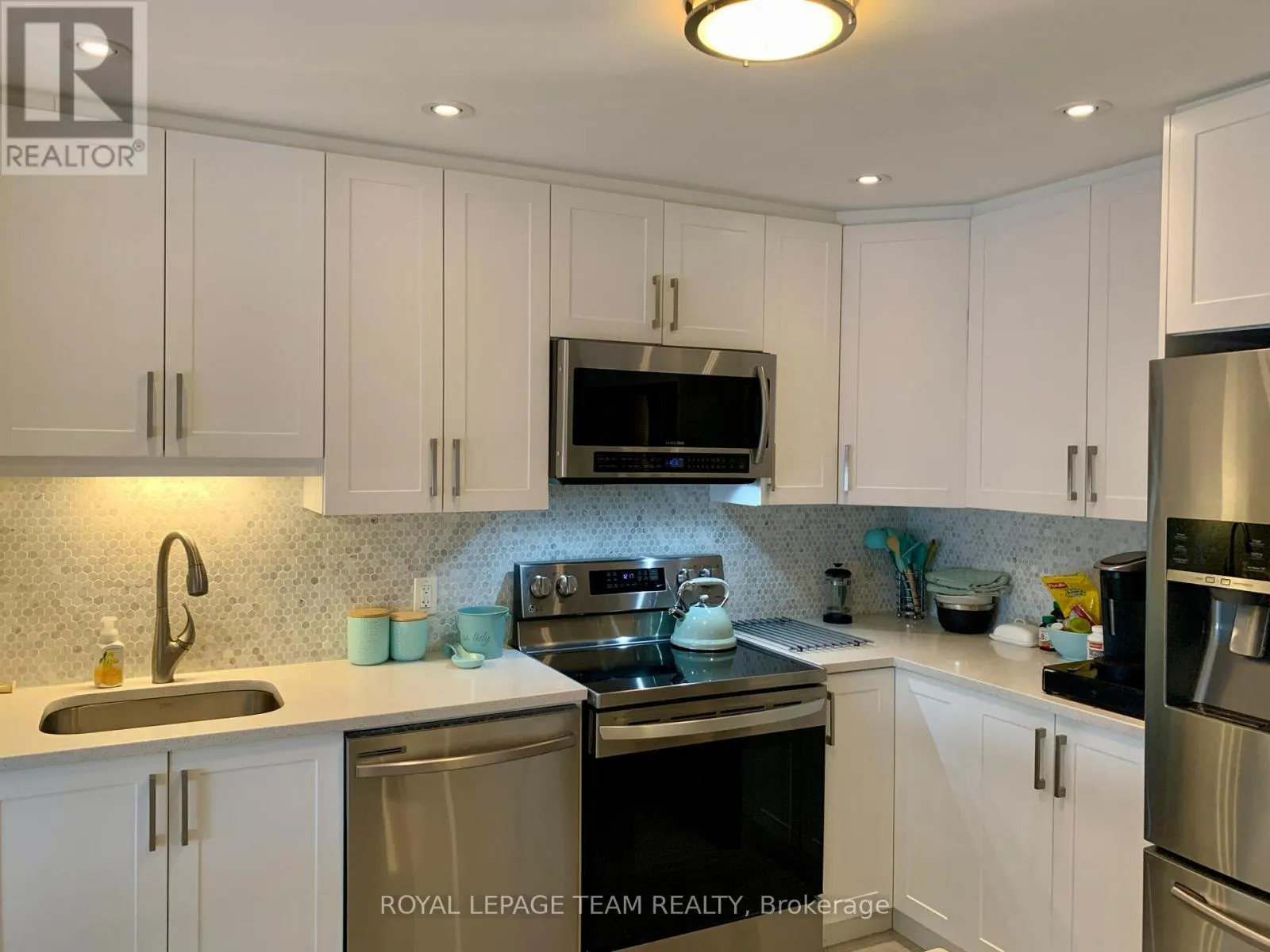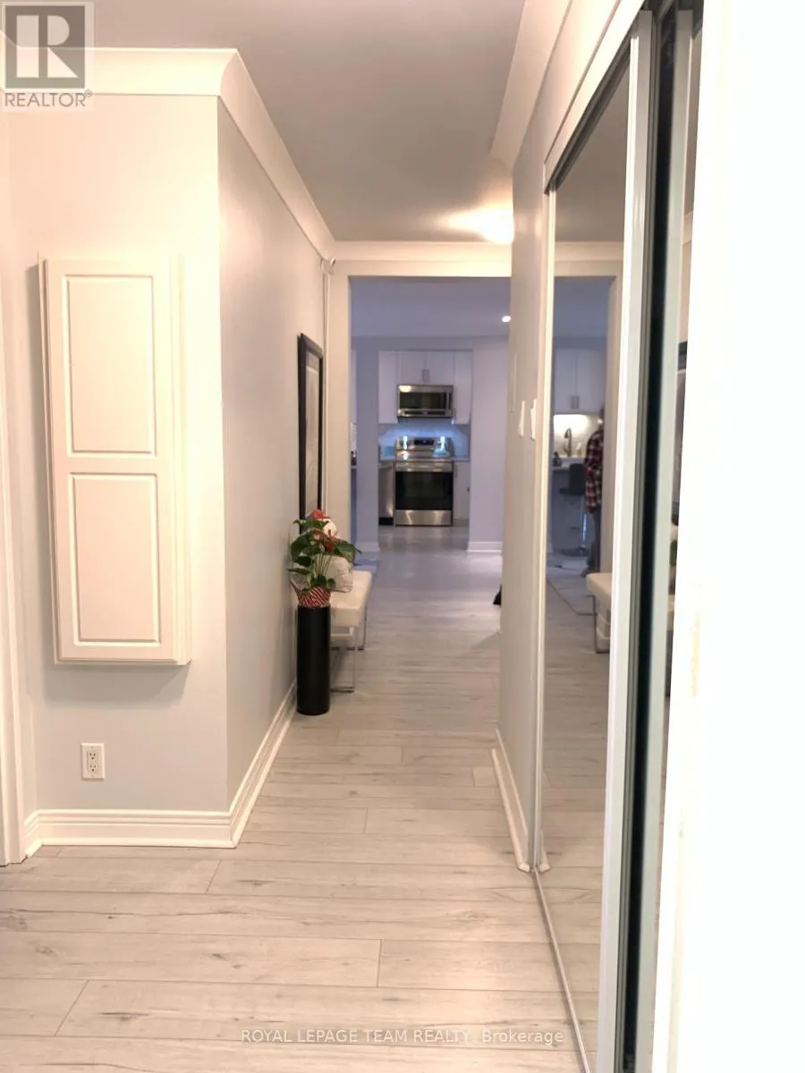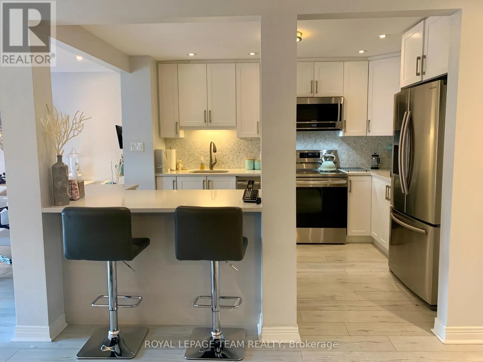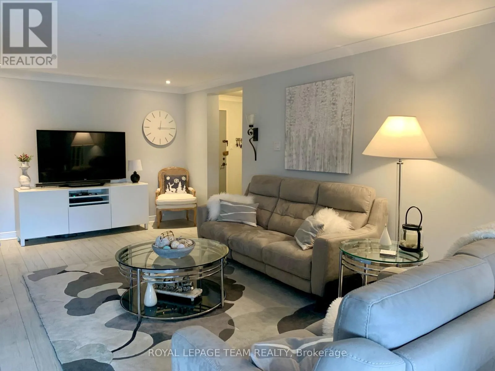 Cross Streets: Baseline just west of Maitland Avenue. ** Directions: Merivale to Baseline on the North West Corner. Welcome to 1485 Baseline Road, Apartment 1004. This is a great location that is perfect for retired couples looking to downsize. This 2 bedroom, 1 bathroom apartment is sure to impress. First and foremost, the view is spectacular! The layout features an open concept living and dining area with great floors, a large sunny kitchen with quartz counters tops, an island and breakfast counter, spacious eating area and a patio door that leads to an amazing belcony. It also features a large foyer and a large in unit storage room. There is also a large locker in the basement. The elevators go to the indoor garage. You will be impressed with the generously sized primary bedroom. There is an additional great sized bedroom and a full bathroom. The laundry room is conveniently located on the lower level right off the elevators. There was over $60,000 done in renovations since 2015. This apartment is located close transit, schools, parks and plenty of shopping. There is an amazing tenant who would love to stay. Call the listing agent for details. The lease expires February 28, 2026. 24 hour notice for all showings. Parking #95 Locker #45A. The furniture is from the previous resident. (id:27476)