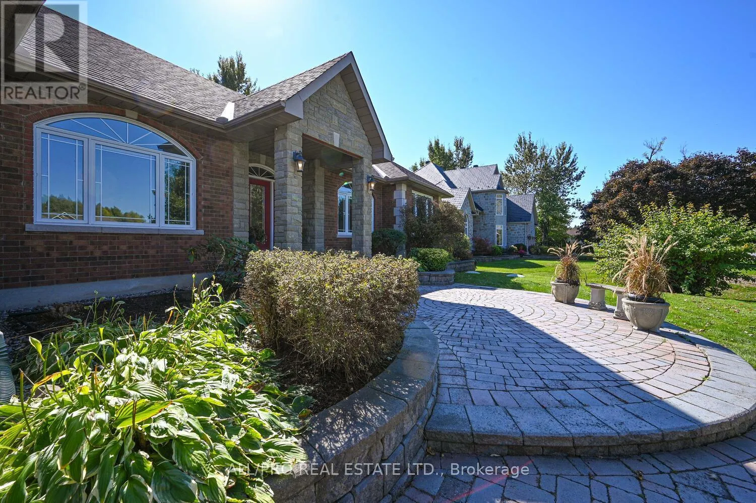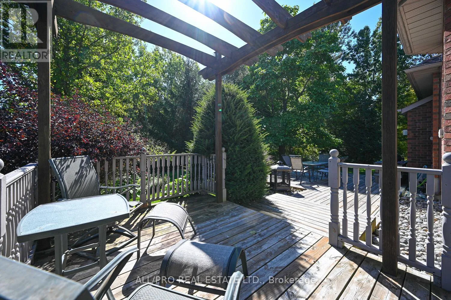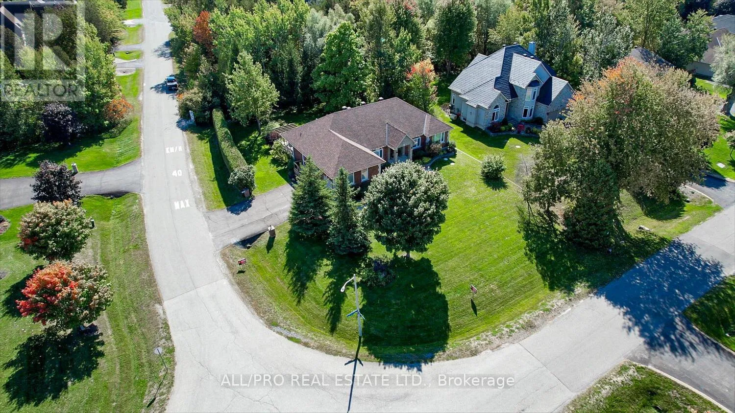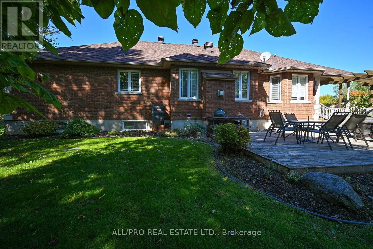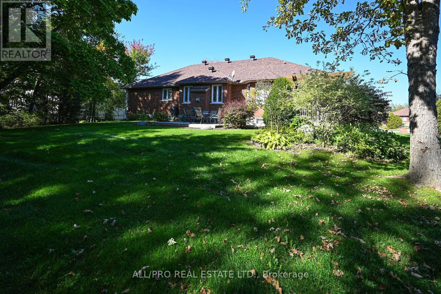 Cross Streets: Stagecoach and Woodstream. ** Directions: Mitch Owens to South on Stagecoach Rd and East on Woodstream to South on Tintern Dr. Discover this stunning all-brick custom bungalow offering 3 bedrooms, 3 bathrooms, and exceptional craftsmanship throughout. Situated on a beautifully landscaped 0.5-acre lot with mature trees, this home features charming front patios, walkways, and perennial gardens with an irrigation system, plus a private back deck for relaxing or entertaining. Step inside to soaring 9-ft ceilings, elegant crown mouldings, rich hardwood flooring, and a bright open-concept design. The vaulted family room with a cozy fireplace flows seamlessly into the spacious eat-in kitchen, complete with granite countertops, gas stove, quality cabinetry, and ample seating perfect for family gatherings. The large principal bedroom offers a walk-in closet and a luxurious 5-piece ensuite. The fully finished basement boasts a huge family room, cold storage, plenty of space for hobbies, and the potential to add a 4th bedroom if desired. Freshly painted and move-in ready, this home combines style and functionality. As part of a welcoming community, enjoy access to the outdoor pool, tennis, and basketball courts with a low annual association fee of just $400. (id:27476)