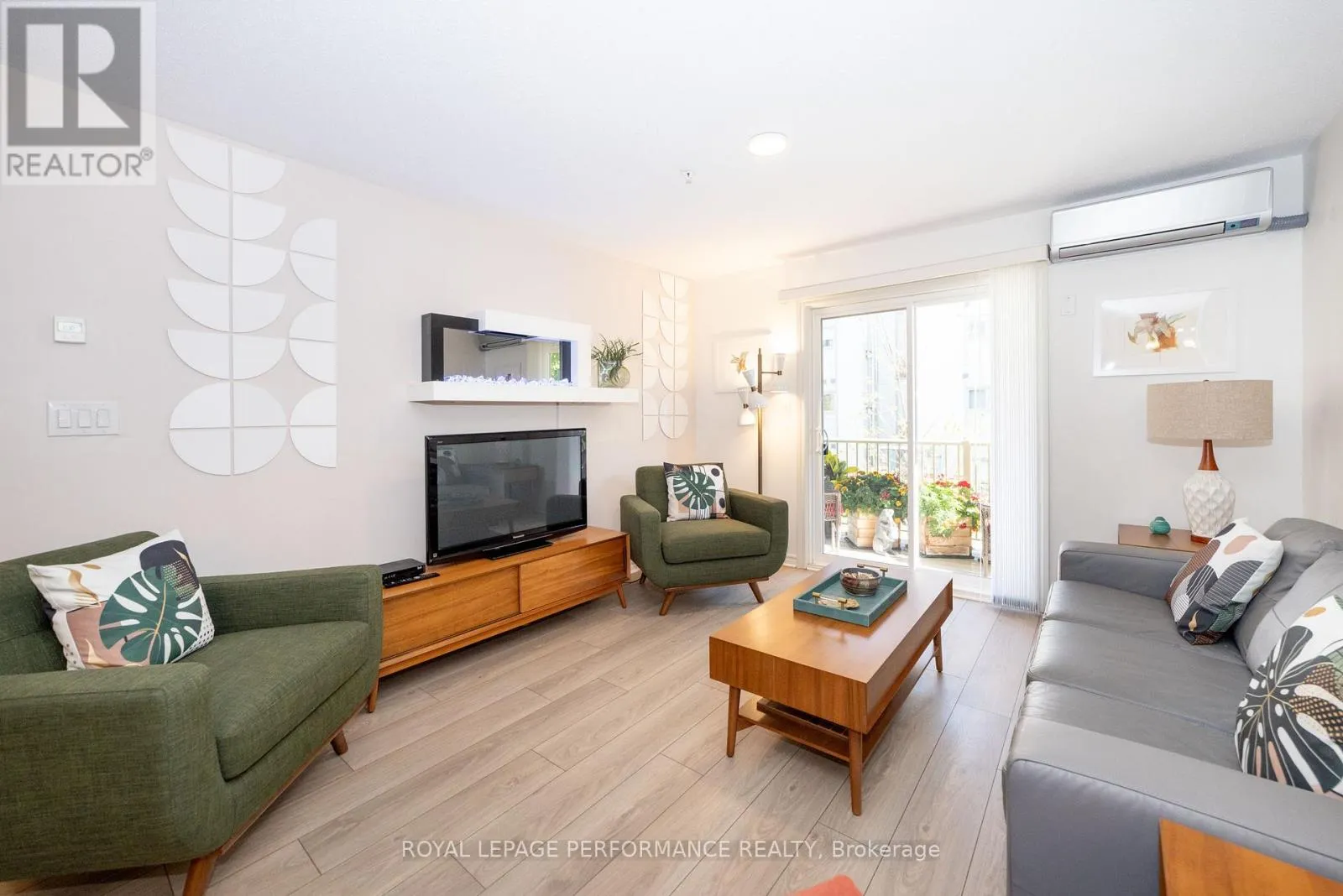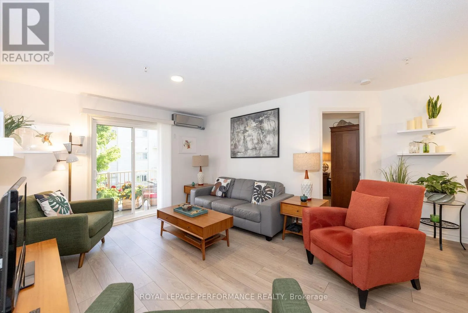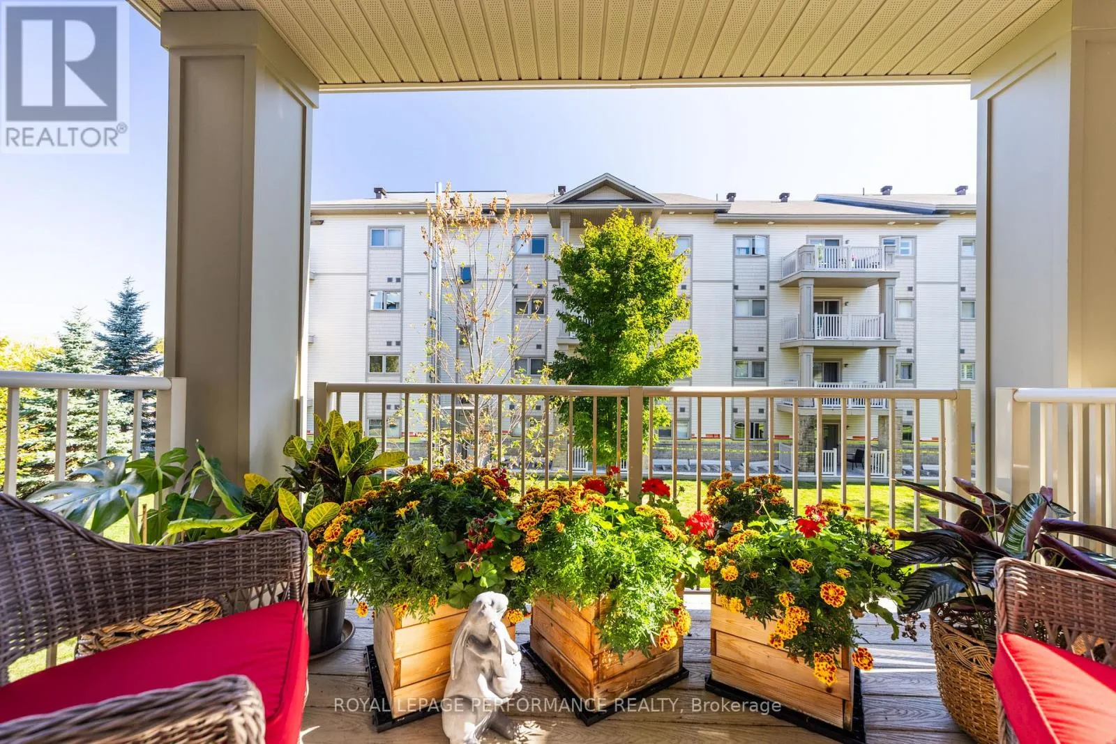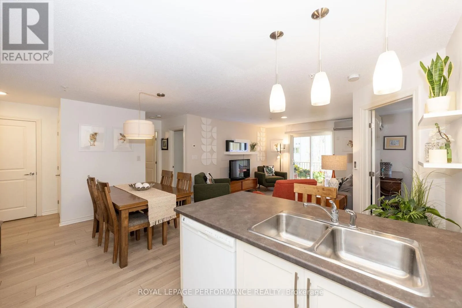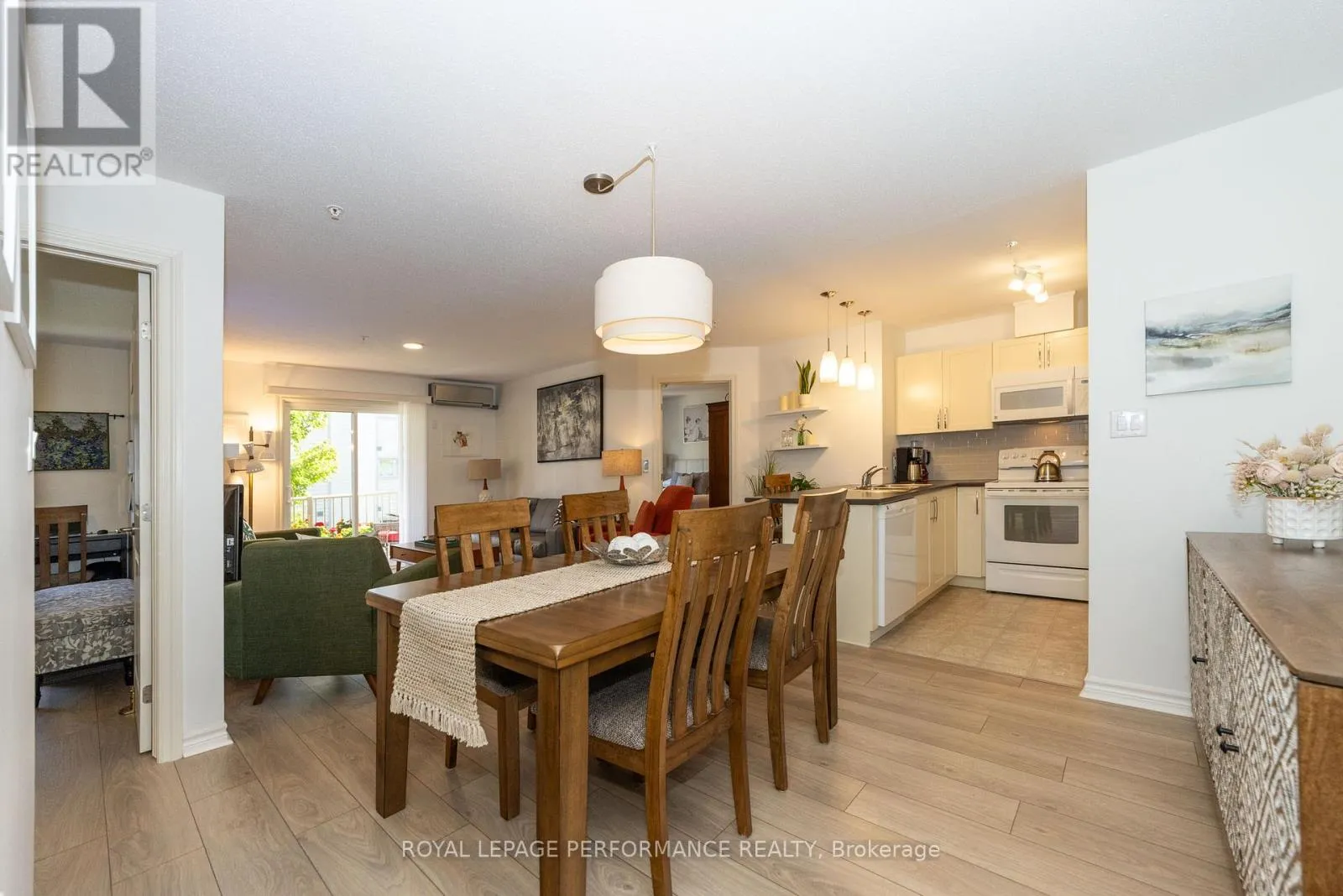 Cross Streets: Pinnacle Street. ** Directions: Trim Road to Pinnacle Street to Potts Private. Welcome to 141 Potts in Notting Hill South, located in the heart of Orléans! This quiet condo complex, built by Cardel in 2013, is ideal for adult living and offers a prime location within walking distance to the Trans Orleans Pathway, Millennium Park (with its large playground and sports fields), a shopping plaza with Sobeys, Starbucks, Tim Hortons, LCBO, CIBC, restaurants, and more. You'll also enjoy quick access to gas stations, pharmacies, health centers, and convenient commuting options via the highway, Brian Coburn Boulevard, and the Trim Road LRT. Situated on the second floor, this spacious 2-bedroom, 2-bathroom unit (approx. 900 sq ft) features an open-concept layout with a kitchen that flows seamlessly into the dining and living areas, and a private covered balcony overlooking green space. The primary bedroom includes a well planned closet and an ensuite with a walk-in shower, while the second bedroom is located next to the main bathroom, which features a tub/shower combo. Radiant in-floor heating (included in condo fees) and two heat pumps (in the primary bedroom and living room) for air conditioning. Additional features include in-unit laundry, a deep closet closet/pantry, an elevator and two stairwells, secure heated underground parking with adjacent locker (211), a heated garage ramp for winter safety, and a well-managed building. Perfect for those seeking a peaceful, low-maintenance lifestyle in an unbeatable location close to all amenities. (id:27476)