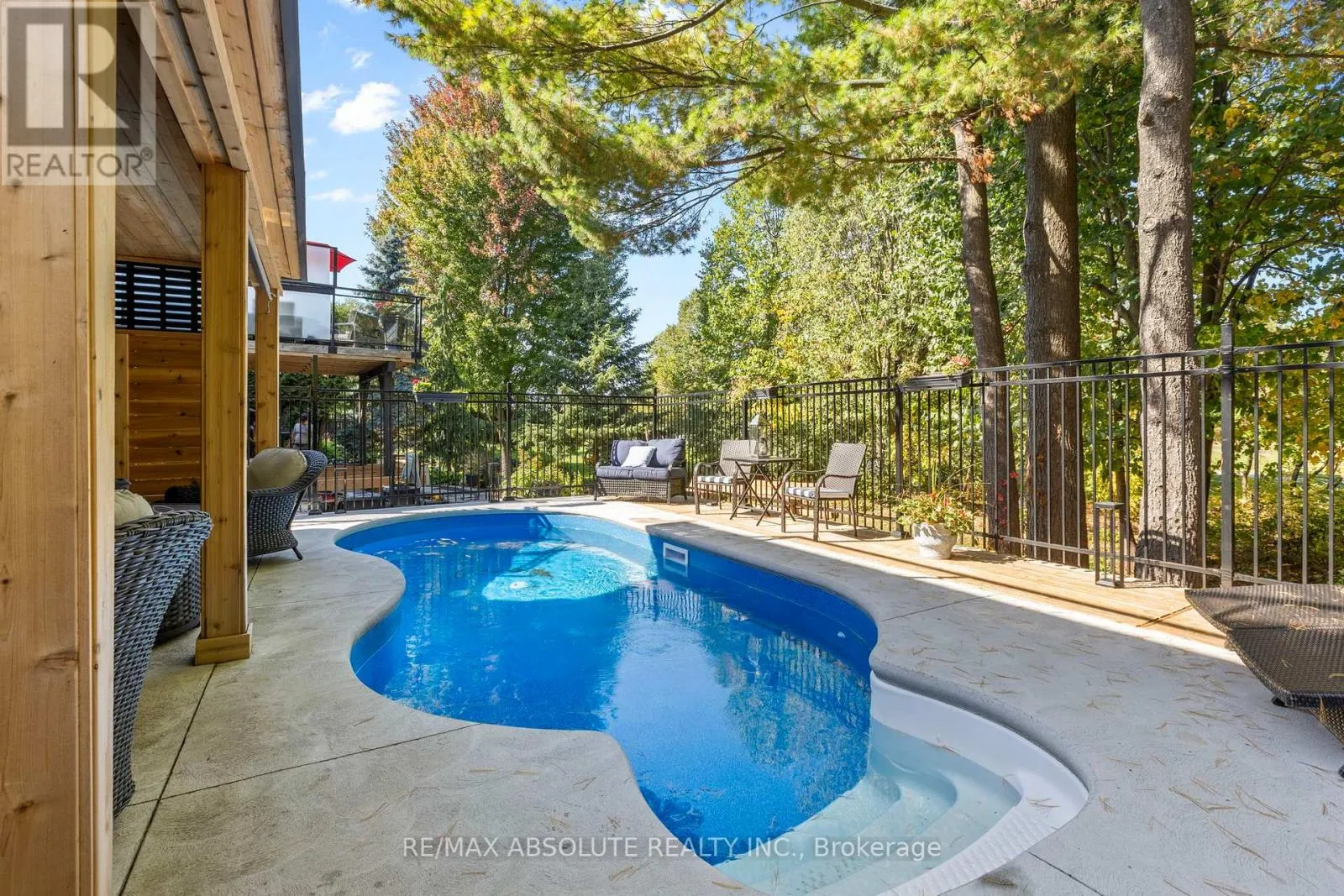 Cross Streets: CAMPEAU. ** Directions: CAMPEAU TO STONECROFT. ONE OF A KIND on the Kanata Golf Course! Incredible views from your private backyard that is complete with a balcony overlooking the mature trees, a perfect very easy to manage salt water pool (20 FT X 12FT) & a covered ALL cedar "Florida" space! This open airy home offers around 2800 square feet! of finished space (including lower level) An in law suite in the lower level would be a breeze to accommodate! The nice OPEN floor plan offers 10-foot COFFERED ceilings in the living room & dining room! NO carpet in this home, site finished hardwood on the main level & a luxury vinyl in the lower! The kitchen was JUST totally renovated (2024) with white shaker style cabinets, subway tile backsplash & a HUGE granite island with seating for 4 & built in cabinets! Easy access to the balcony from the kitchen that offers INCREDIBLE views of the golf course, glass railings so your view is not obstructed! A STUNNING floor to ceiling window in the kitchen has to be seen in person to really appreciate, it's breathtaking! GOOD size primary & walk in closet! The RENOVATED 5 piece ensuite offers a free-standing tub, oversized walk-in shower, 2 basins & granite countertops! The finishes are gorgeous throughout!! FULLY finished WALKOUT lower level, you do NOT feel like you are in a basement as this entire floor is very bright thanks to the LARGE windows & 2 sets of new patio doors! A large rec room, TWO additional bedroom, a room with built in kitchenette, a FULL bath with a WALK IN SHOWER. The backyard is an absolute oasis STEPS to shops, grocery, transit & so much more Kanata Lakes has to offer! Windows replaced in 2024 (most), Roof 2018, Ac 2018 & Furnace 2015, Pool 2023. TOTALLY turn key! (id:27476)