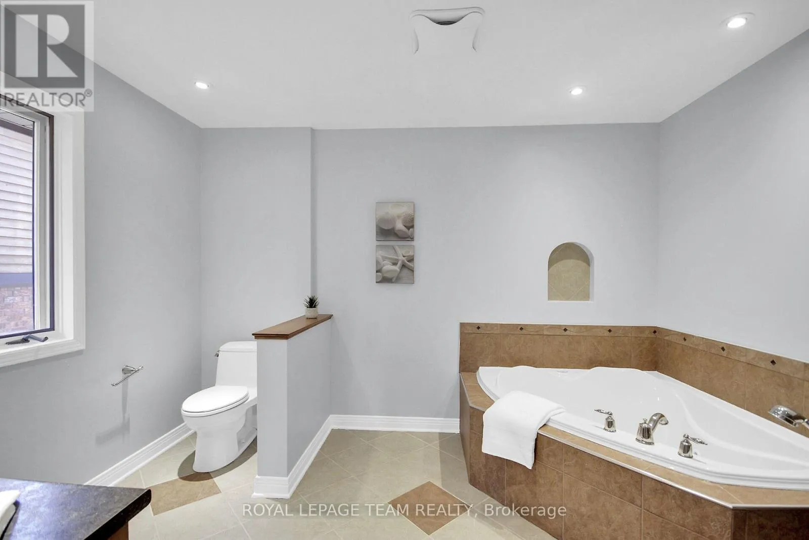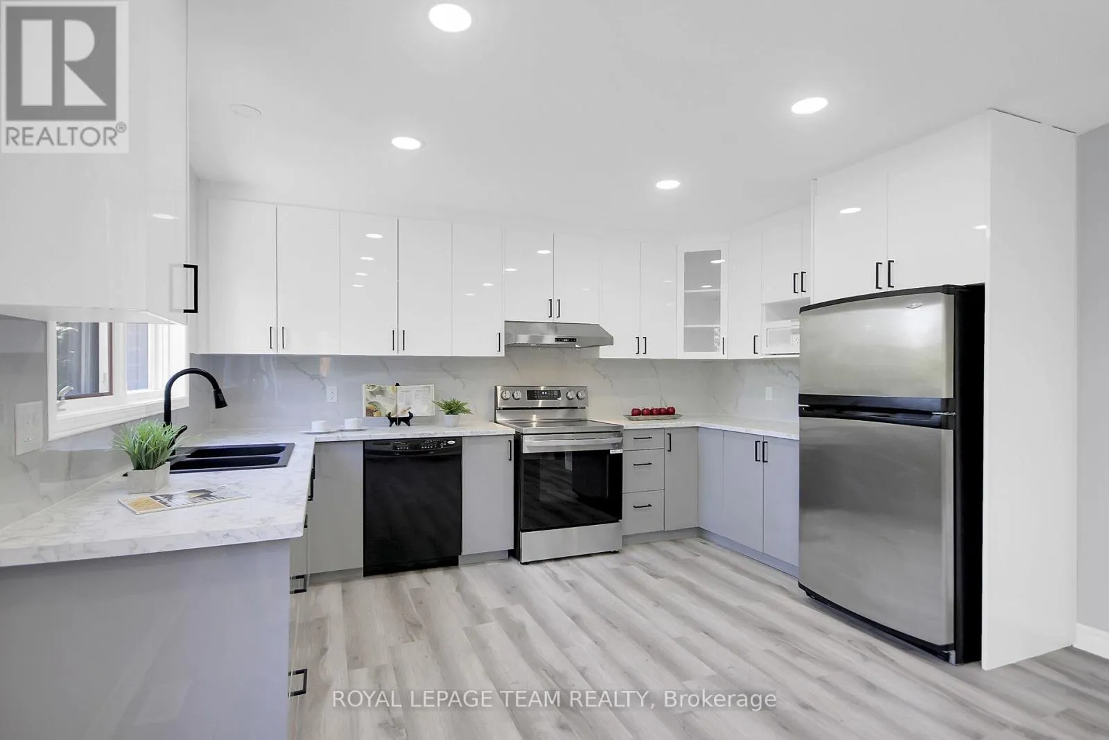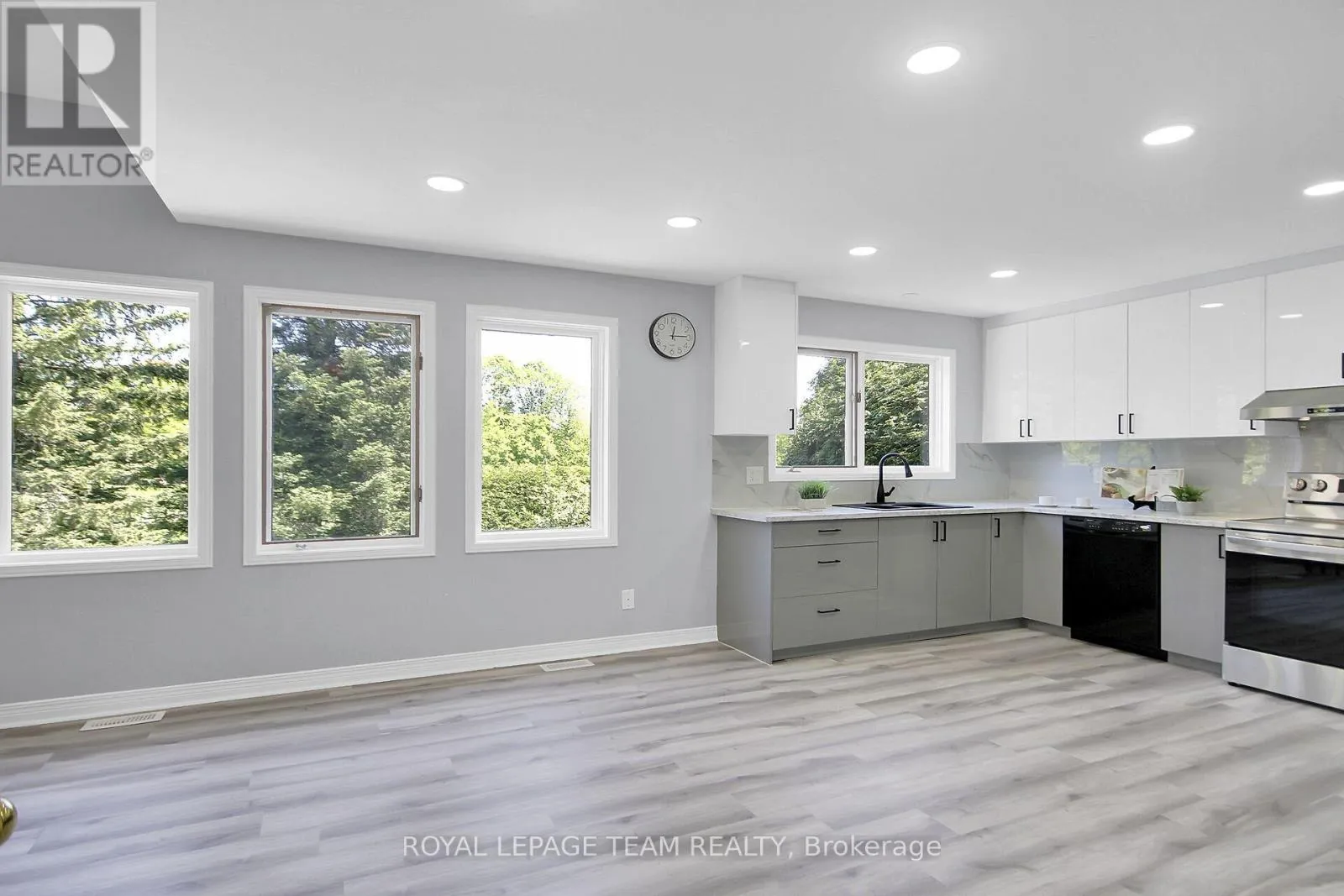 417 west to Eagleson Road exit. Straight onto Campeau Drive, Turn right onto Knudson Drive Fabulous 4 bedroom, 4.5 bath custom home with over 3700 square feet of living space above grade plus a finished lower level with deep windows & a full bath. This mostly brick home is located on an approx. 59' by 119' deep lot with mature trees & privacy cedar hedging. Wonderful home for those looking for office spaces & rooms for extended family & guests, with 2 family rooms/dens. Move in & enjoy the natural light from many windows, new kitchen, new carpet & fresh neutral paint palette. Interlock driveway & front walkway lead you to the covered porch with double doors that open into the tiled foyer with double coat closet. Living room is tremendous in size & ideal for entertaining, it opens to the generous sized dining room with modern chandelier, perfect for family gatherings. Close by is the renovated kitchen with new white & light grey cabinets, modern backsplash & counters, flat ceilings & recessed lighting. New double sink & faucet is positioned under 2 windows that offer panoramic views. Stove and hood fan ('25), dishwasher & fridge are included. Bright eating area with 3 windows & space for an island if one desires, you also overlook the family room & second level loft-style family room or den. 2nd level has 4 spacious bedrooms & 3 full baths (2 ensuites). Double doors to primary bedroom with 3 windows, including a set of four which look out to the backyard, 2 walk-in closets & ensuite bath with heated tile flooring, whirlpool tub & separate shower. Bedroom 2 has its own ensuite bath with double titled shower. Bedroom 3 & 4 have big windows & closets. Main family bath has tile flooring, vanity sink & a tub/shower combined with tile surround & a linen closet. Expansive lower level rec room has a wall of deep windows, great for play, home theatre or a private suite. A 3 piece bath is close by. Move in & enjoy Kanata Lakes, walk to top schools, many parks, tennis, arena & library. Shops, hi-tech, bus service & 417 mins. away. 48 hours irrevocable on offers. (id:27476)