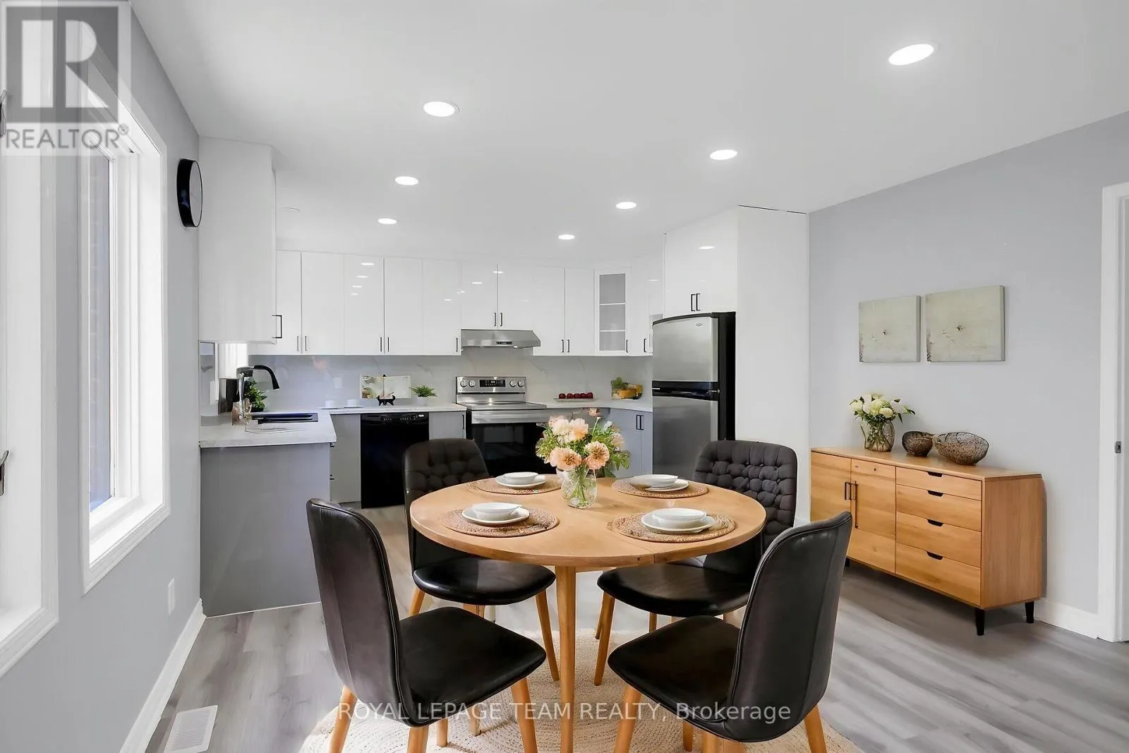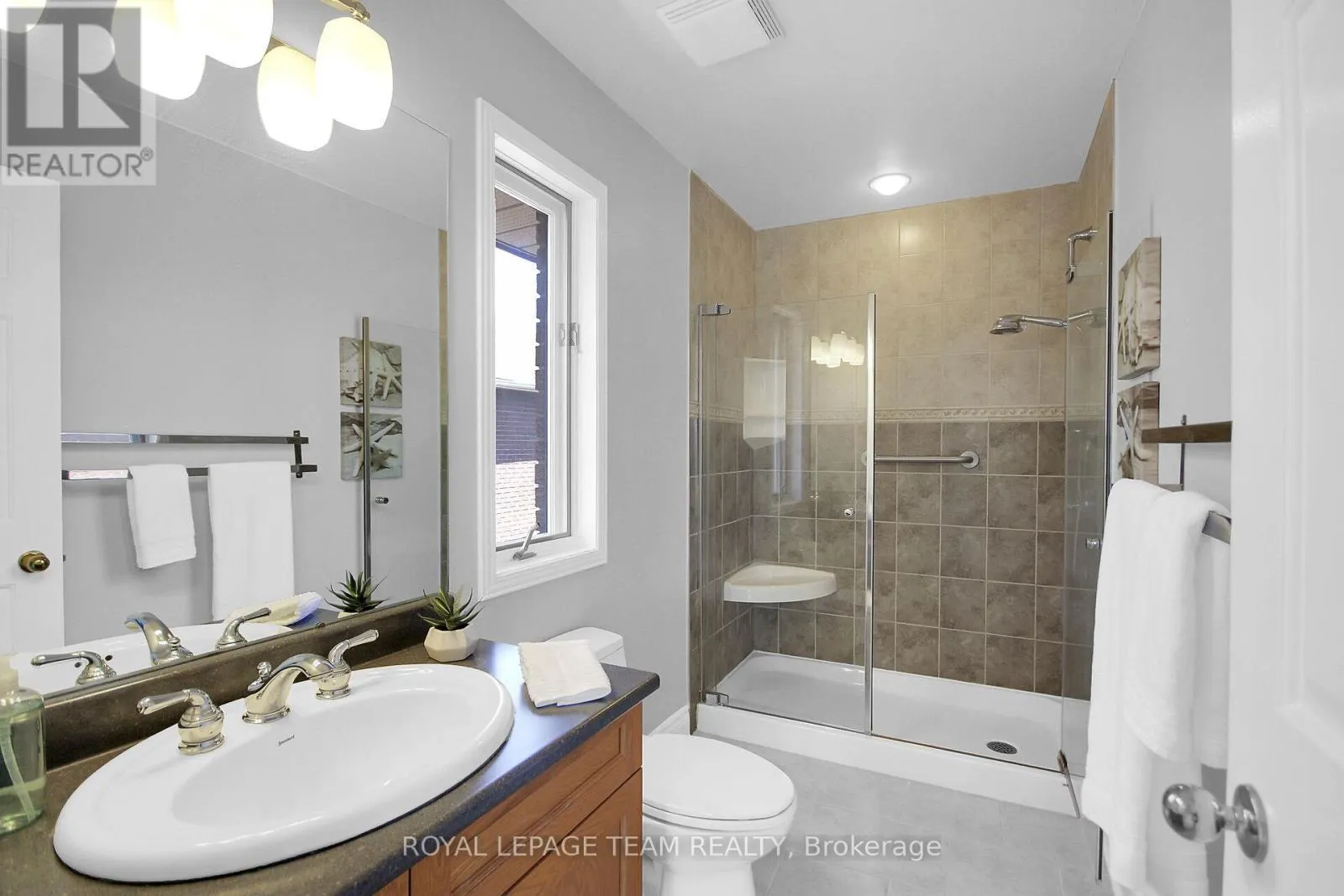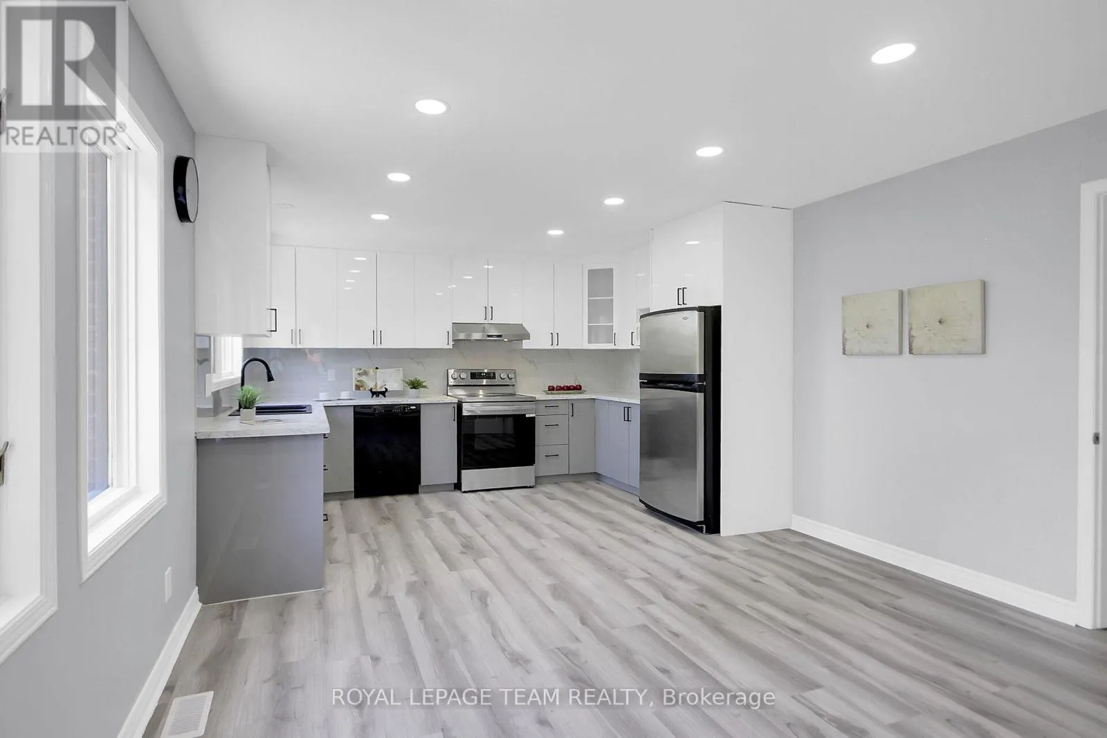 417 west to Eagleson Road exit. Straight onto Campeau Drive, Turn right onto Knudson Drive Fabulous 4 bedroom, 4.5 bath custom home with over 3700 square feet of living space above grade plus a finished lower level with deep windows & a full bath. This mostly brick home is located on an approx. 59' by 119' deep lot with mature trees & privacy cedar hedging. Wonderful home for those looking for office spaces & rooms for extended family & guests, with 2 family rooms/dens. Move in & enjoy the natural light from many windows, new kitchen, new carpet & fresh neutral paint palette. Interlock driveway & front walkway lead you to the covered porch with double doors that open into the tiled foyer with double coat closet. Living room is tremendous in size & ideal for entertaining, it opens to the generous sized dining room with modern chandelier, perfect for family gatherings. Close by is the renovated kitchen with new white & light grey cabinets, modern backsplash & counters, flat ceilings & recessed lighting. New double sink & faucet is positioned under 2 windows that offer panoramic views. Stove and hood fan ('25), dishwasher & fridge are included. Bright eating area with 3 windows & space for an island if one desires, you also overlook the family room & second level loft-style family room or den. 2nd level has 4 spacious bedrooms & 3 full baths (2 ensuites). Double doors to primary bedroom with 3 windows, including a set of four which look out to the backyard, 2 walk-in closets & ensuite bath with heated tile flooring, whirlpool tub & separate shower. Bedroom 2 has its own ensuite bath with double titled shower. Bedroom 3 & 4 have big windows & closets. Main family bath has tile flooring, vanity sink & a tub/shower combined with tile surround & a linen closet. Expansive lower level rec room has a wall of deep windows, great for play, home theatre or a private suite. A 3 piece bath is close by. Move in & enjoy Kanata Lakes, walk to top schools, many parks, tennis, arena & library. Shops, hi-tech, bus service & 417 mins. away. 48 hours irrevocable on offers. (id:27476)