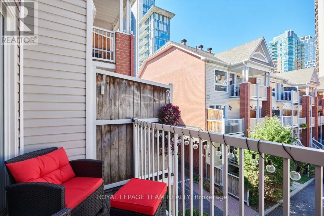 Cross Streets: Lyon / Nepean. ** Directions: Street parking available in complex off Nepean. Discover unparalleled convenience and comfort at 299 Nepean, the embodiment of the urban professional's dream townhouse condo, balanced with a palatable price! Enjoy a pristine bright space, open layout, large principal living areas, smart updates, and an exceptional location. The main floor features a spacious open concept living/dining room with new windows and a gas fireplace, a crisp white kitchen with eating area and large storage area, plus ample natural light and a 2pc bath nicely tucked in. Upstairs, find two well-sized bedrooms with plenty of closet space, large windows, full updated bathroom, and generous utility/laundry room. A large balcony off the kitchen, and another off the primary provide some tranquil outdoor space. New furnace and AC, great condo management, and low utility costs makes this dwelling low maintenance and attractive for the most discerning buyer. Rarely available, and highly sought after, you won't want to miss out! Book your showing today. (id:27476)