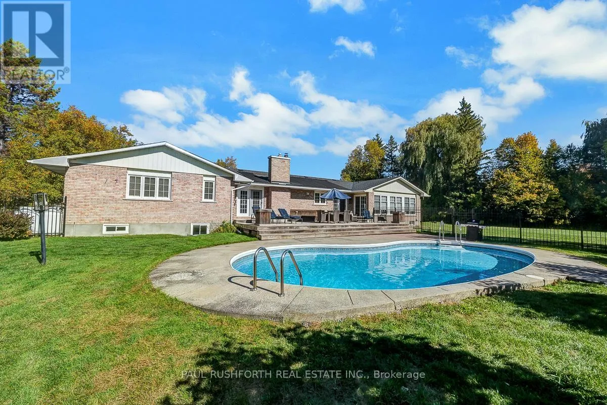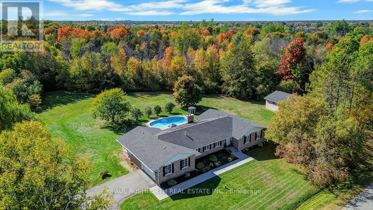 Cross Streets: PERTH / MCBEAN. ** Directions: Perth St to McBean St to RICHLAND. DREAM PROPERTY. SPECTACULAR. High quality STUNNING 2700sqft BUNGALOW on a MAJESTIC 1.7 ACRE treed estate lot in desirable RICHMOND boasting an additional DETACHED TRIPLE GARAGE / WORKSHOP!! PRIVACY & TRANQUILITY in a natural setting mere minutes to amenities. EXTENSIVELY RENOVATED and bursting w/ upgrades & designer finishes. IMPRESSIVE CRAFTSMANSHIP, superb style, open concept layout ideal for everyday living/hosting. FOUR BEDROOMS on MAIN FLOOR + potential for 2 more on lower. This beauty has it all: paved driveway, full brick exterior, in-ground pool, hardwood floors, custom millwork, natural slate flooring, GOURMET CHEF'S KITCHEN with stylish banquet eating area, formal living/dining rooms, mudroom, main floor laundry = ONE LEVEL LIVING! SPRAWLING 4 SEASON SUNROOM (currently used as dining). LAVISH PRINCIPAL RETREAT w. ensuite ABSOLUTELY FABULOUS. OVERSIZED WINDOWS = SUNNY/BRIGHT. Finished lower featuring a lounge, HOME THEATRE, gym (+ space for 5th bedrm/office), 2pc bathroom (w.space for expanding). RESORT STYLE exterior living at its finest: IN-GROUND POOL, fully landscaped, fenced, SPRAWLING DECK & more! 2 CAR ATTACHED GARAGE. BELL/ROGERS HIGHSPEED Available. JUST PERFECT. 200AMP Electrical, Roof 2021, Furnace 2021, Hot water tank 2023. A VERY RARE OPPORTUNITY. (id:27476)