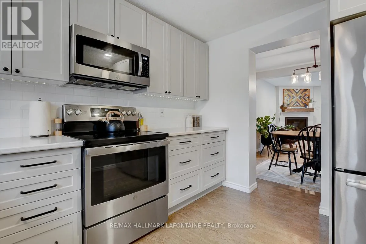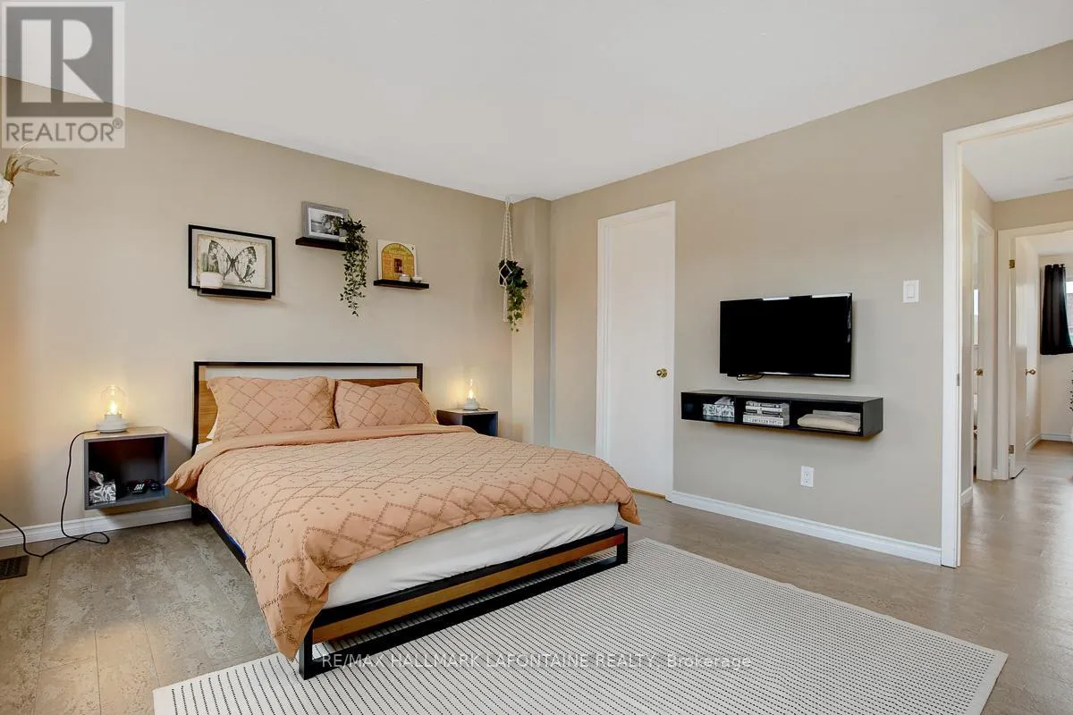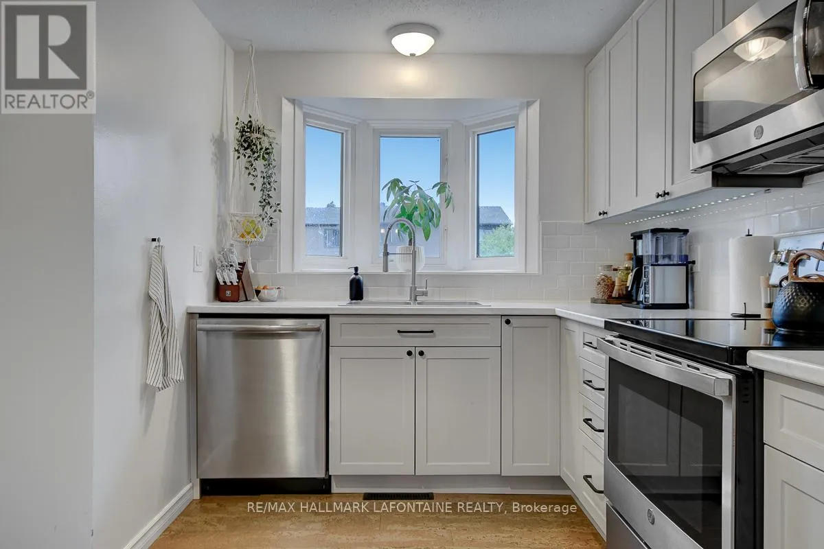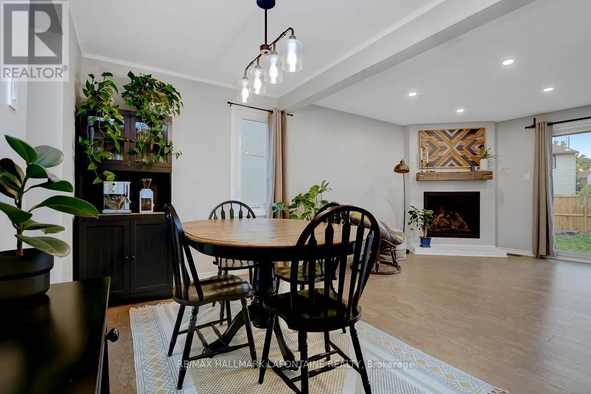 Cross Streets: Vanessa and Whelan. ** Directions: Fable to east on Whelan to east on Vanessa. Welcome home to this bright and cheerful 3-bedroom semi-detached home, connected only by the garage for extra privacy. Step inside and you'll love the warm cork flooring that runs throughout the main and second levels - both stylish and comfortable underfoot.The renovated kitchen has a charming bay window, SS appliances, pot & pans drawers and loads of cupboard and counter space to keep everything organized. The living room features a cozy fireplace, perfect for relaxing evenings, while the large dining room makes entertaining easy. Patio doors open to a spacious, fenced backyard with a deck tucked away into a private corner. Upstairs, the primary bedroom is a true retreat with its own bay window and a full wall of closet space. Two additional bedrooms and a bright 4-piece bathroom complete the second floor.The lower level has a large finished rec room as well as a big laundry room with plenty of storage space. The garage is super practical too, with inside access to both the home and the backyard deck. All of this in a friendly neighbourhood close to the Walter Baker Sports Centre, schools, shopping, theatre, golf, and more. Tenant pays gas, water, hydro and HWT rental (id:27476)