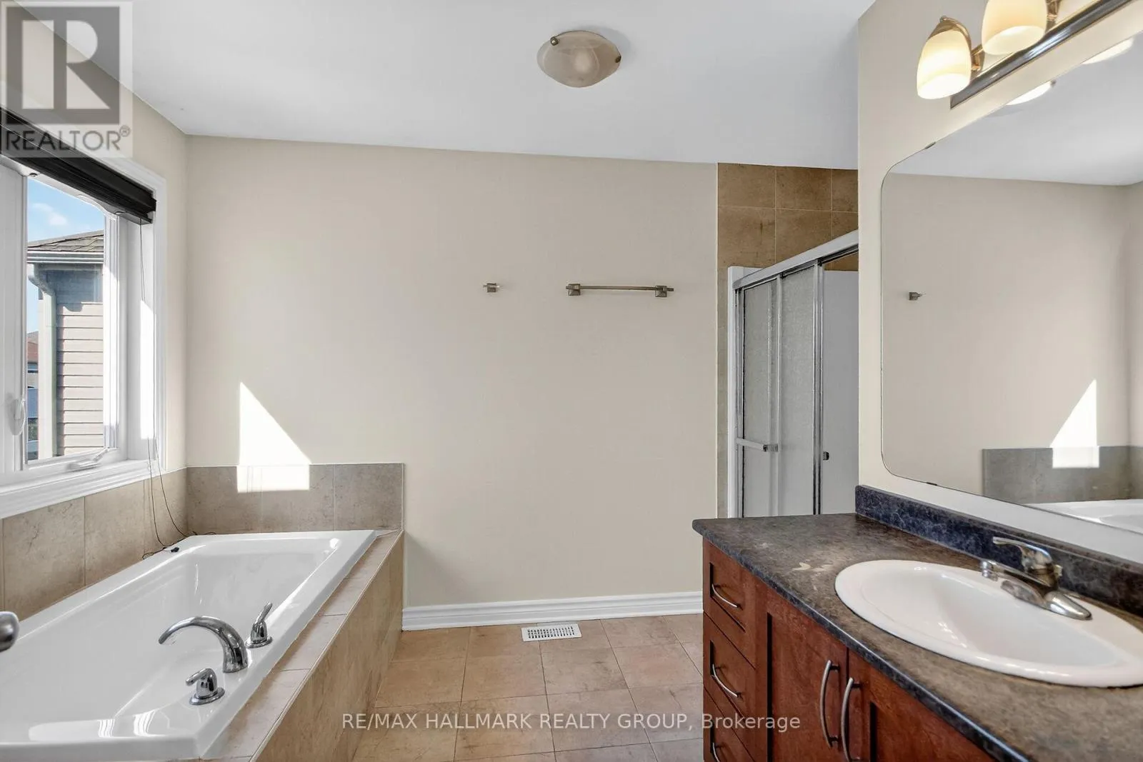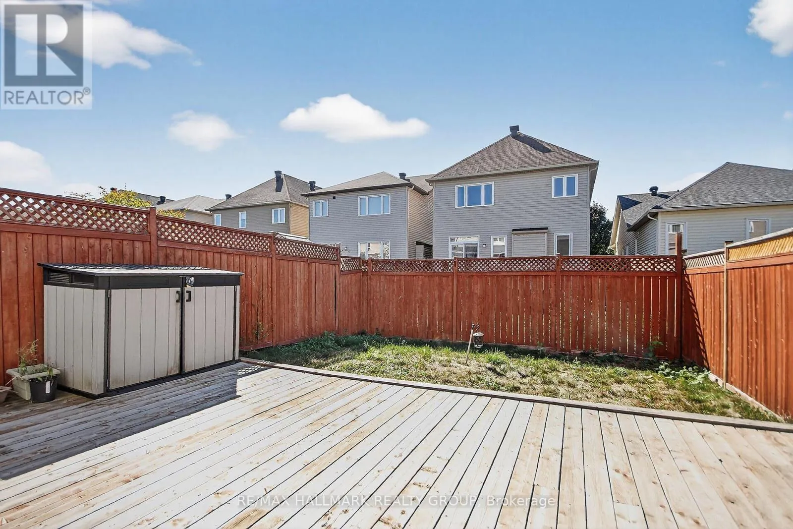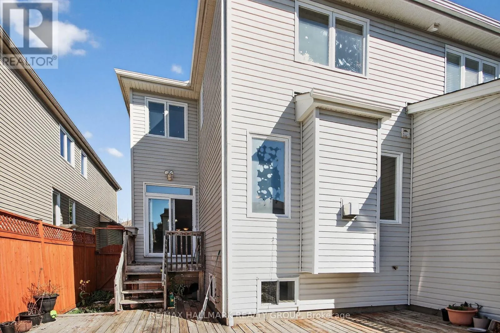 Cross Streets: Strandherd Drive to Fraser Fields Way. ** Directions: Strandherd Drive to Fraser Fields Way to Harthill Way, turn left, to second Broxburn Crescent turn left. Beautiful 3 bedroom, 3 bath semi detached home in sought after location in Barrhaven. Enter to view gleaming hardwood & terrific hidden storage for seasonal clothing, powder room and garage entrance, then up a few stairs to the formal dining or lounge area, open to kitchen (with additional eat-in area great for young children) & family room with gas FP & walk out to deck! Upstairs to 2nd floor another lounge area or loft, great for TV area or den! Luxurious Primary bedroom with over-size walk-in closet with organizers, ensuite bath with great sized soaker tub & separate shower! 2 more good sized bedrooms complete the 2nd floor. Downstairs to the fully finished basement. Large expansive rec room with L-shaped space & 3 deep windows for great daylight. Second floor & basement offer plush carpet. Lovely fenced back yard & spacious deck, still leaves lots of gardening spaces!, Flooring: Hardwood, Flooring: Carpet W/W & Mixed (id:27476)
