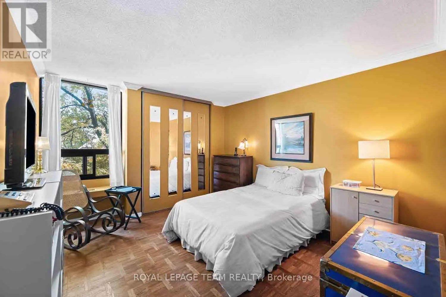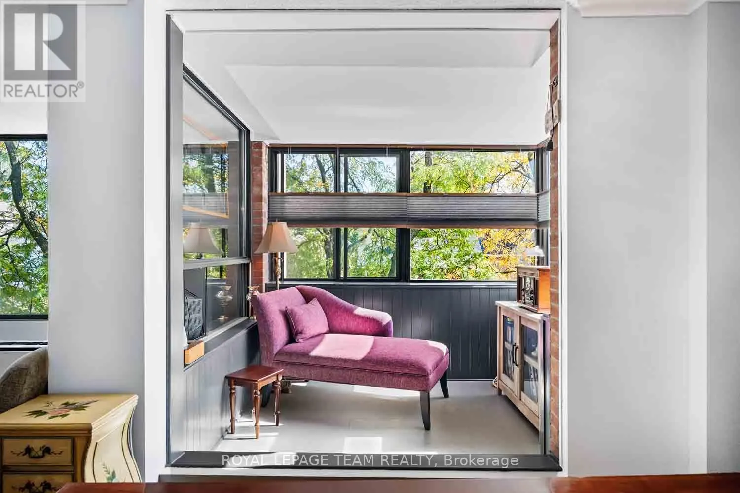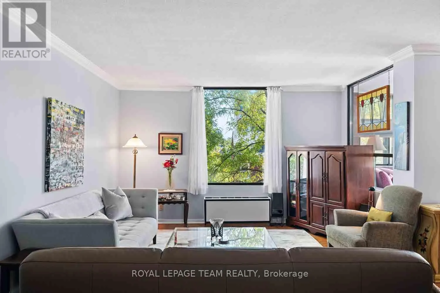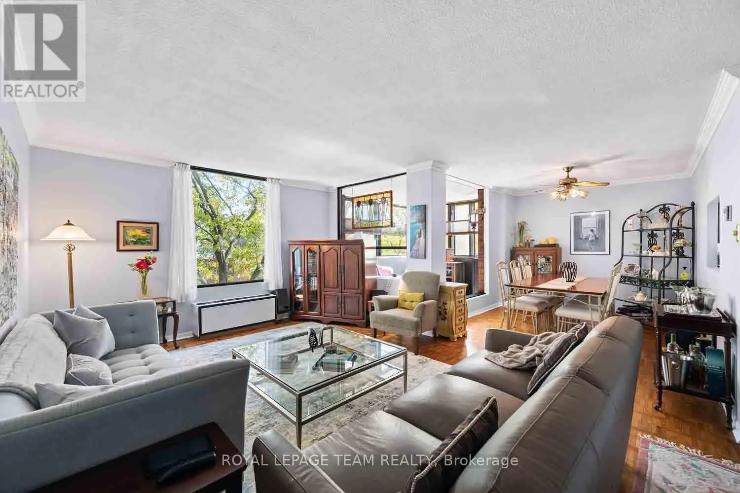 On Arthur Street between Primrose & Somerset. Arthur St is one way running north/south. Welcome to Unit 303 at 40 Arthur. Step into a bright southeast corner suite that feels truly connected to its surroundings. Nestled on a lower level, this home offers a rare perspective: generous windows frame mature trees and greenery, creating a calming outlook that's both private and tranquil. The thoughtful layout is ideal for entertaining or quiet evenings at home, with elegant details such as cove moulding adding a touch of architectural refinement. A well-designed kitchen with ample storage and workspace keeps everything within reach. Two spacious bedrooms, including a serene primary suite, offer comfort and privacy. The second bedroom is perfect for guests, a home office, or a creative studio. One of the highlights of this home is its solarium set against a canopy of trees; it's a peaceful space for morning coffee or evening relaxation. Unlike higher-floor units with skyline views, this suite immerses you in natural surroundings while still delivering the convenience of city living. Located in a sought-after building at 40 Arthur, residents enjoy excellent amenities, secure entry, and a welcoming community atmosphere. Step outside and you're moments from the vibrant restaurants of Chinatown, the cultural life of Little Italy, and easy access to transit, bike paths, and downtown Ottawa. Unit 303 offers more than just a place to live, it's a lifestyle, blending urban accessibility with nature's serenity. (id:27476)