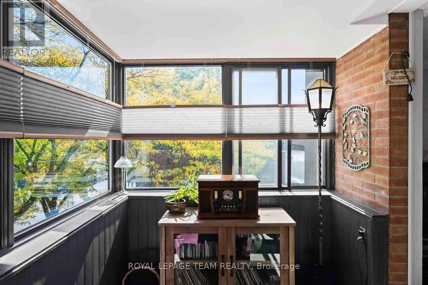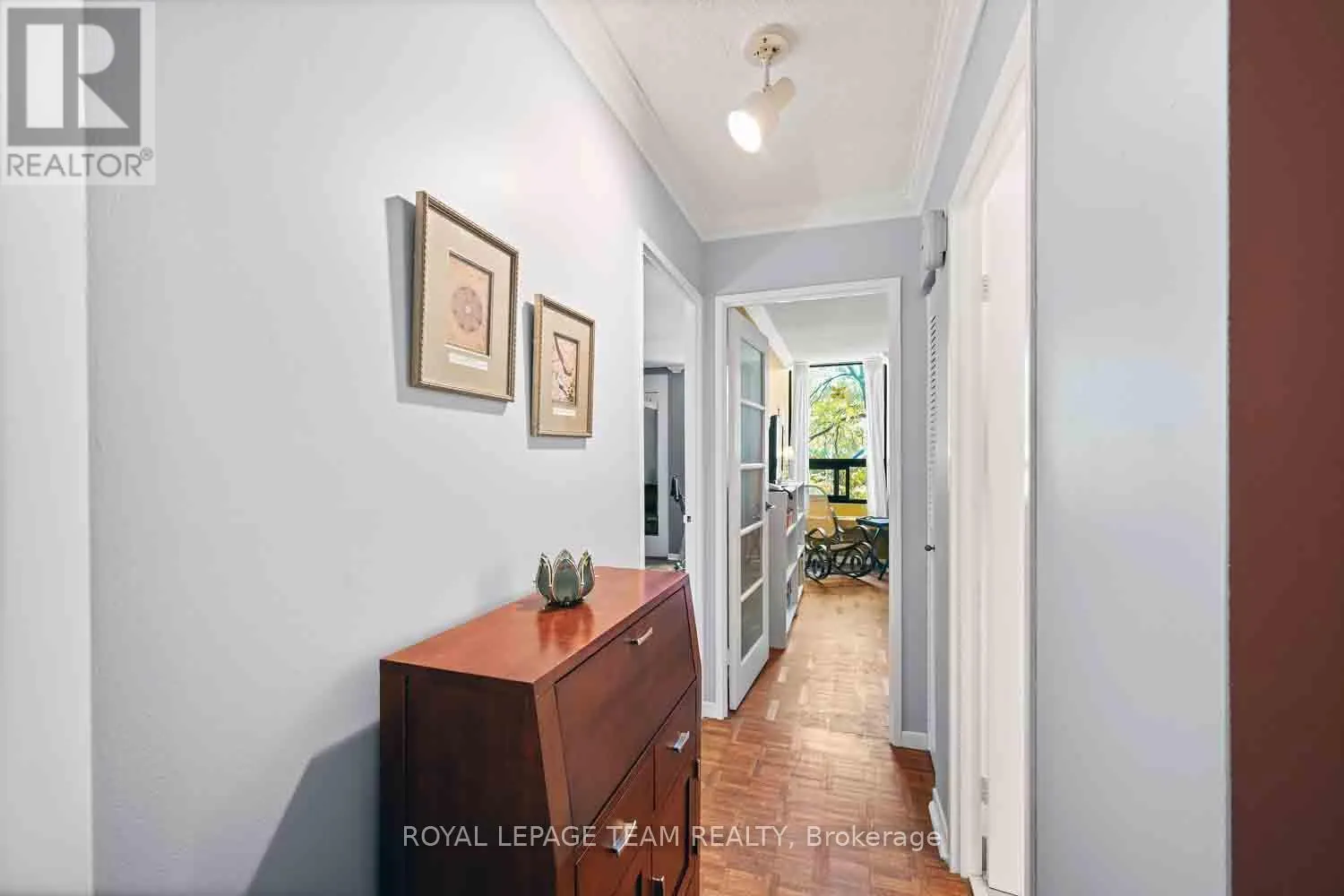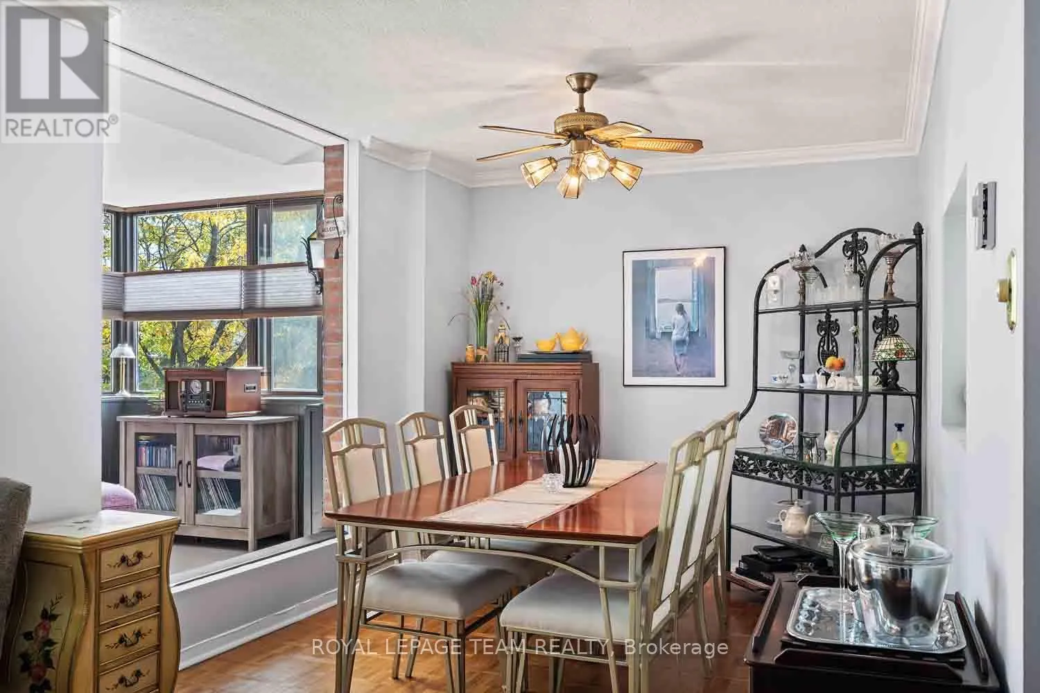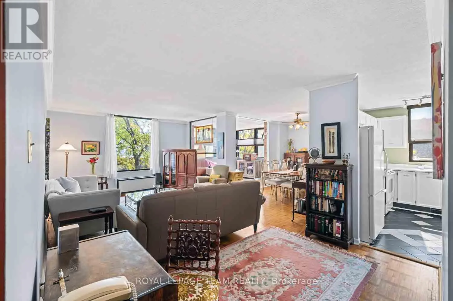 On Arthur Street between Primrose & Somerset. Arthur St is one way running north/south. Welcome to Unit 303 at 40 Arthur. Step into a bright southeast corner suite that feels truly connected to its surroundings. Nestled on a lower level, this home offers a rare perspective: generous windows frame mature trees and greenery, creating a calming outlook that's both private and tranquil. The thoughtful layout is ideal for entertaining or quiet evenings at home, with elegant details such as cove moulding adding a touch of architectural refinement. A well-designed kitchen with ample storage and workspace keeps everything within reach. Two spacious bedrooms, including a serene primary suite, offer comfort and privacy. The second bedroom is perfect for guests, a home office, or a creative studio. One of the highlights of this home is its solarium set against a canopy of trees; it's a peaceful space for morning coffee or evening relaxation. Unlike higher-floor units with skyline views, this suite immerses you in natural surroundings while still delivering the convenience of city living. Located in a sought-after building at 40 Arthur, residents enjoy excellent amenities, secure entry, and a welcoming community atmosphere. Step outside and you're moments from the vibrant restaurants of Chinatown, the cultural life of Little Italy, and easy access to transit, bike paths, and downtown Ottawa. Unit 303 offers more than just a place to live, it's a lifestyle, blending urban accessibility with nature's serenity. (id:27476)