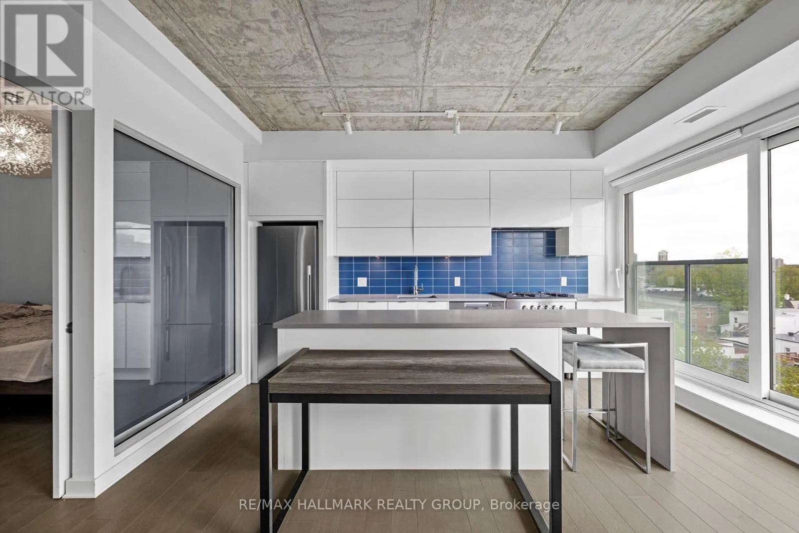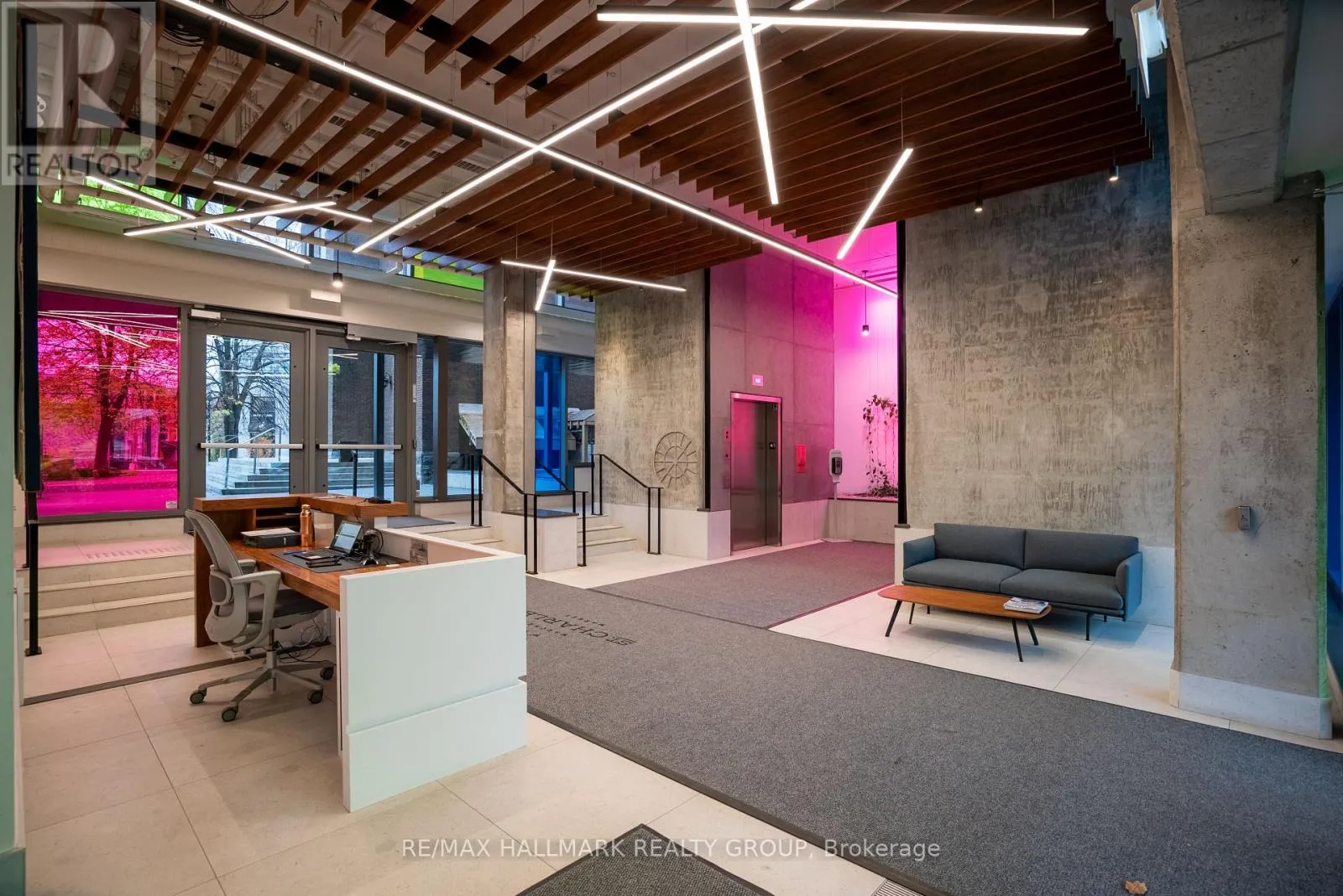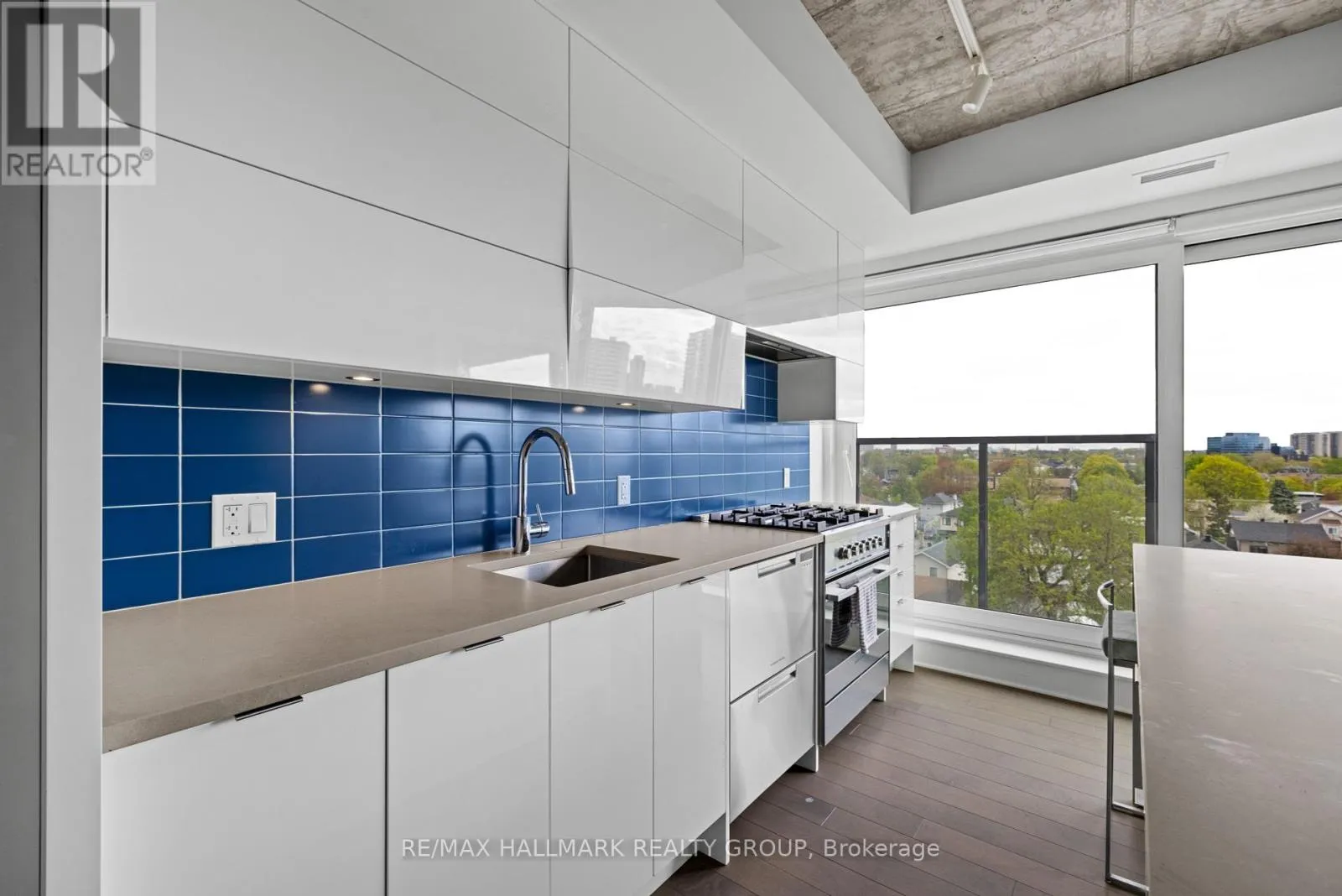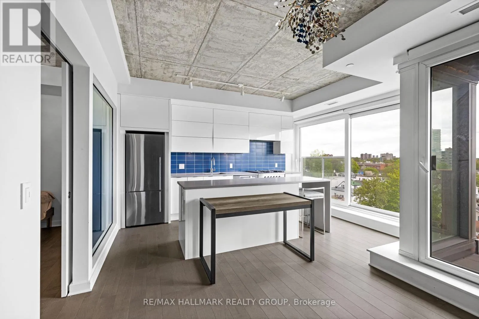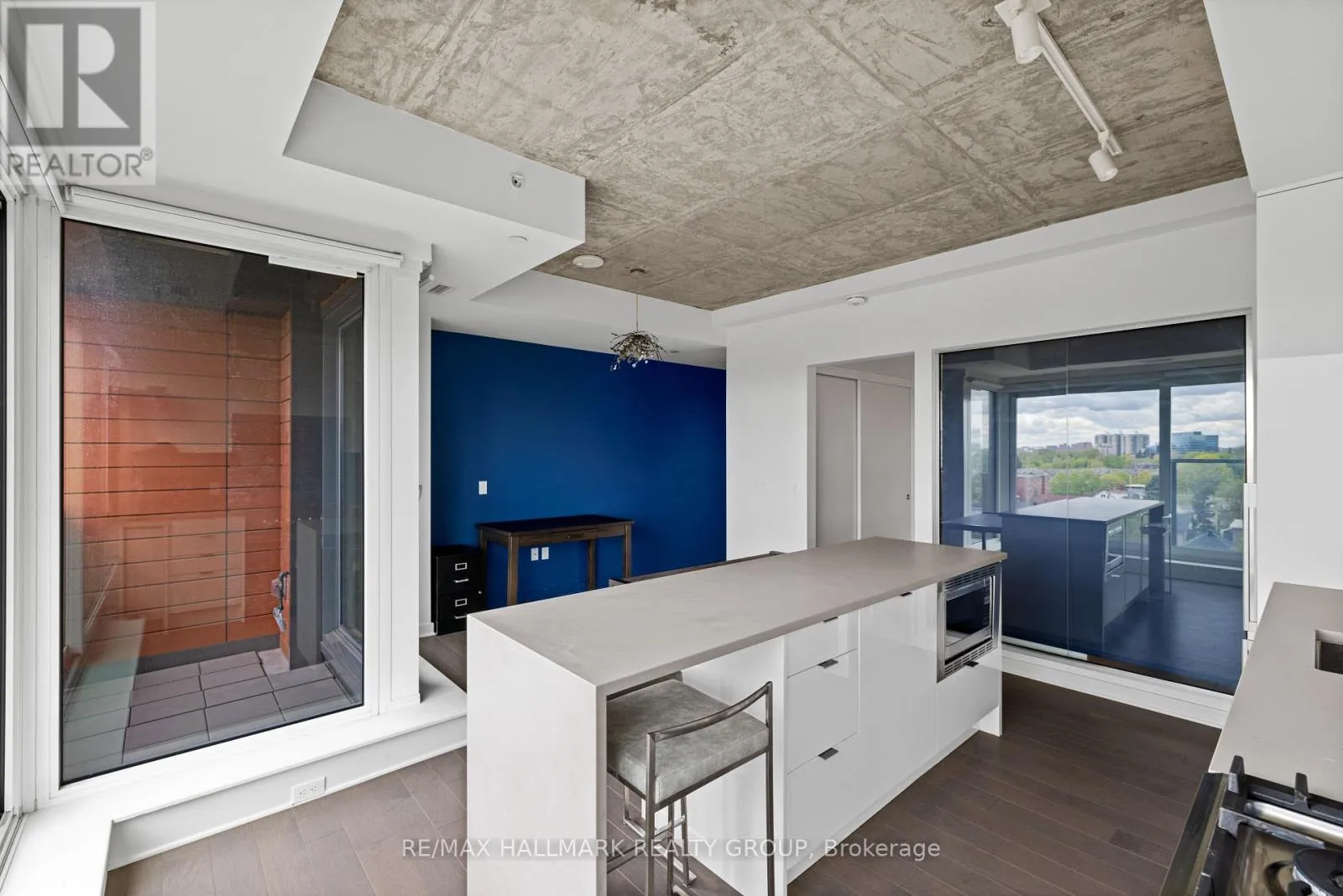 Cross Streets: St. Charles Street / Barrette Street. ** Directions: From Beechwood Avenue, South on St. Charles Street, Left on Barrette Street. Welcome to Unit 607 at 135 Barrette Street - The St. Charles Market in New Edinburgh! An upscale & remarkable project, built by ModBox Developments. Minutes to all shops, amenities, downtown/lowertown, Global Affairs, the River, public transportation & walking/biking paths! This gorgeous/modern 1-Bed, 1-Bath unit falls nothing short of perfect! Highlights include: High-end Fisher & Paykel appliances (including gas range), 2 tiered dishwasher & an abundance of cupboards/counter space. Designer Caesarstone raw concrete countertops in kitchen & quartz in bathroom (with heated floor!), FULL soundproofing between both neighbours, electronic black-out blinds in kitchen/living area, private balcony with heater & nat-gas BBQ hookup, hardwood floors throughout & full-sized in-unit laundry! Amenities include: Concierge service, Fitness Centre, Party Room, Yoga Studio, Roof top terrace & more! 2 oversized storage lockers (#48 & #49) & Valet parking via innovative automated puzzle parking system. (id:27476)