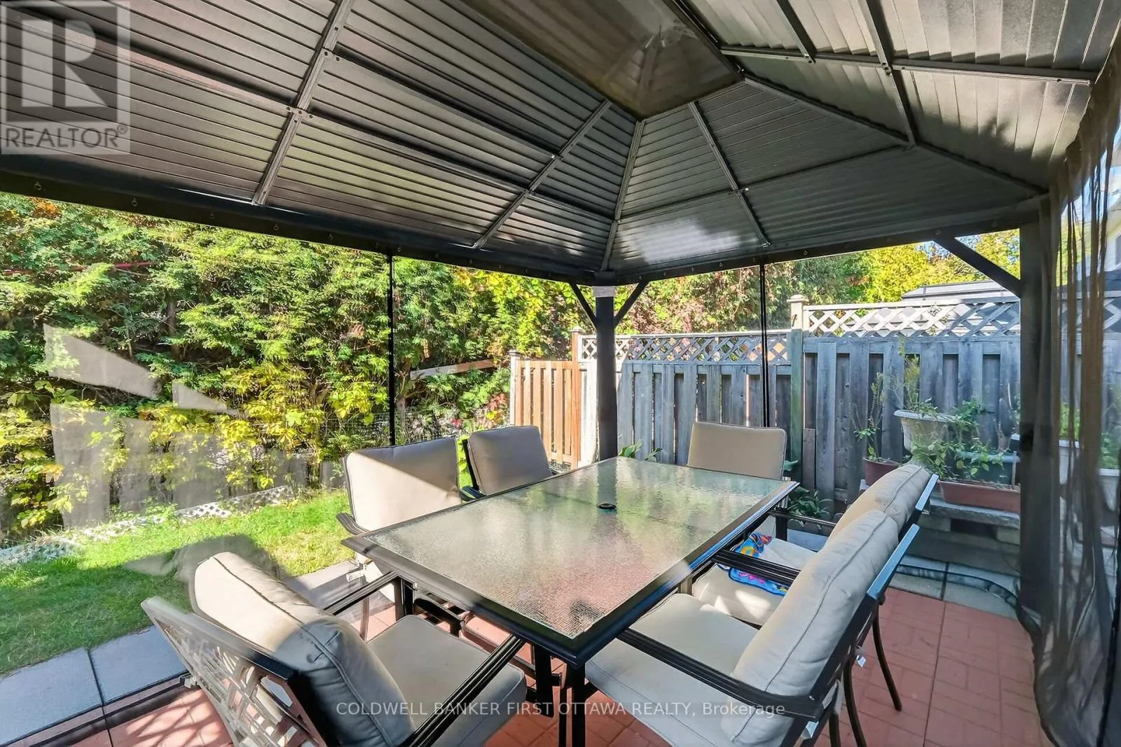 Cross Streets: Innes Rd. ** Directions: from Innes Rd East, take the bypass to Blackburn Hamlet and turn left on Pennington Lane. Well maintained and updated condo townhome in a small enclave ( 7 townhomes) with single car garage on quiet dead end Lane in Blackburn Hamlet. Bright and oversized living room with hardwood floors overlooks the back garden / terrace. Private and low maintenance backyard includes a 10' x 14' hardtop gazebo. Newer kitchen with ceramic backsplash and new ceramic floors (2025) offers load of storage and counter space, additional matching cabinets were added to the long foyer that is adjacent, along with mirrored closet doors. The foyer also boasts brand new ceramic floor as does the 2 piece powder room near the entrance which also has a newer granite top vanity. All 4 bedrooms are generously sized and can accommodate double size beds and the primary can accommodate a king size bed. Ceiling lights added to all bedrooms. Furnace and A/C 2021. The rental hot water tank is being replaced Oct 8th. Ceilings in the living, dining & master bedroom were de-stippled (smooth ceilings) & pot lights added in living, dining & kitchen , master bedroom & basement family room., The lower level family room is oversized and wood paneling walls were removed to add drywall . Convenient basement powder room w/newer vanity & fixtures, cold storage room with built in shelving and a combination laundry & furnace room compete the basement. The garage has additional built in shelving and has inside access. The exterior entrance to the home has newer interlock stone covered porch. Well managed self managed condo, Visitor parking at the end of the lane. Condo status certificate has been ordered by the owner and will be provided to interested Buyer's. Condo fee includes water, building insurance, roof shingles, snow clearance of the lane. Super clean home! (id:27476)