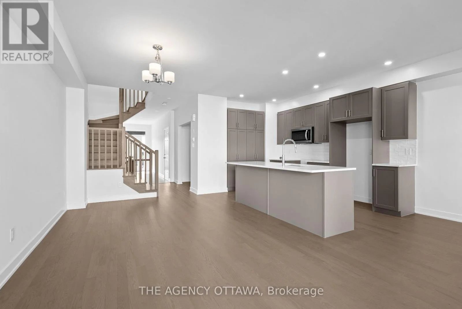 Cross Streets: Wooler Pl & Gretsch Rd. ** Directions: Take Bank St south to Findlay Creek Dr. Turn left on Wooler Pl. Turn right on Gretsch Rd. Welcome to this beautifully upgraded 3-bedroom, 2.5-bathroom townhome offering style, function, and comfort throughout. The main level features a versatile office/den with custom built-in shelving, ideal for a home office or study, along with a bright open-concept living area. Gather in the inviting living room with a cozy electric fireplace, enjoy meals in the dedicated dining space, and entertain with ease in the modern kitchen showcasing a large island with upgraded level 3 quartz counters and upgraded stylish backsplash. A convenient powder room completes this level. Upstairs, the spacious primary suite boasts a walk-in closet and a luxurious 5-piece ensuite. Two additional bedrooms, a full bathroom, and laundry complete the second floor. The fully finished lower level offers a generous rec space, perfect for a family room. With over $30K in upgrades - including upgraded hardwood flooring and hardwood stairs - this home blends quality finishes with thoughtful design, making it truly move-in ready. (id:27476)