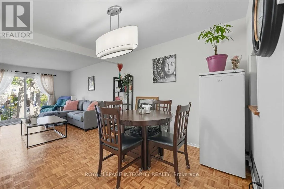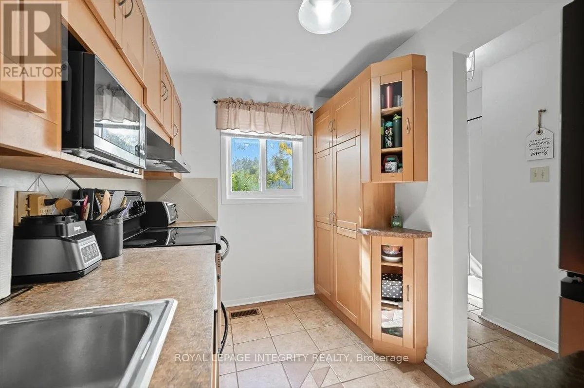 Cross Streets: Jeanne D'arc / Bilberry. ** Directions: Jeanne D'arc to Bilberry Drive. Welcome to this beautifully updated 2 bedroom, 2 bathroom condo townhome in sought-after Convent Glen! Step from the private pathway and welcoming front yard into a bright foyer with a large closet and convenient powder room. The updated kitchen offers ample storage with large pantry, wood cabinets and ceramic tile flooring. The open-concept dining and living room feature a cozy wood-burning fireplace, and patio doors that lead to a private patio, perfect to unwind after work or to entertain family and friends. Upstairs, a skylight brightens the hallway leading to two spacious bedrooms, and a full bathroom. The fully finished basement extends your living space with a recreation room, storage area and a large laundry room. The location is unbeatable - steps to schools, shopping, transit, and scenic NCC trails along the Ottawa River. Don't miss this opportunity - move-in ready and waiting for you! (id:27476)