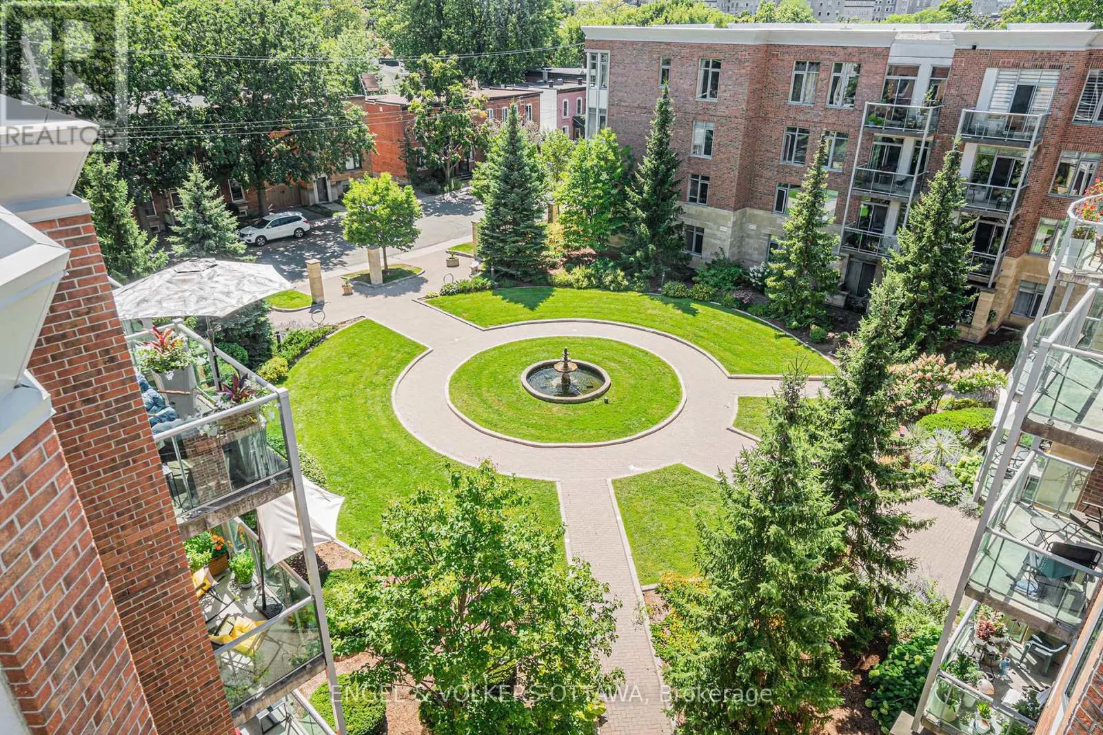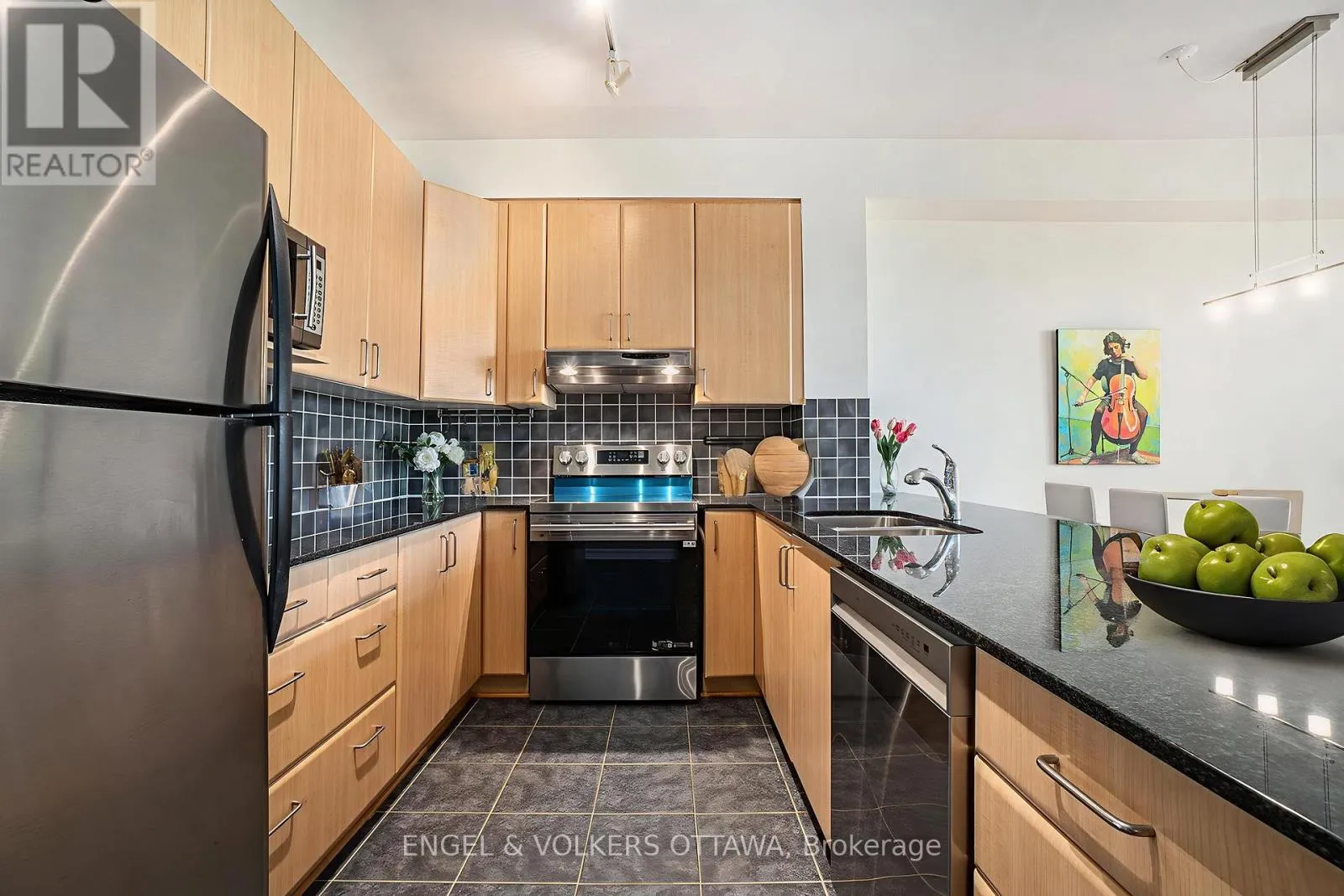 Cross Streets: Cathcart and Bolton. ** Directions: Sussex, East on Boteler, Right on Cathcart to Bolton (North end of Byward Market). Welcome to Sussex Square, where sophistication meets lifestyle in the most tranquil part of Lowertown. Surrounded by embassies, green spaces, and the historic charm of old Bytown, this exceptionally managed building offers a rare opportunity to live in one of the city's most desirable locations. Just minutes by foot to the Rideau Centre, Global Affairs Canada, New Edinburgh's Stanley Park, and the banks of both the Ottawa and Rideau Rivers, the convenience is unparalleled. 205 Bolton makes a striking impression with its high curb appeal and beautifully maintained grounds, including a serene water feature and inviting common spaces. Residents enjoy access to a refined main lobby, a welcoming social lounge with kitchen and patio, a rooftop terrace with barbecues and sweeping views of Parliament Hill, as well as a top-tier fitness centre. With three elevators, secure underground parking, well-lit locker rooms, bike storage, and thoughtful building management, every detail has been considered to elevate the experience of home. This particular one-bedroom has oversized windows, soaring nine-foot ceilings, and one of the most appealing layouts in the building with 760 sq ft as per builder plans (Arcadia model). The private balcony is a perfect retreat, while the spacious primary living area has room for home office or creative space. The modern kitchen is accented with granite counters and blends seamlessly with the open living area, complete with hardwood floors, and in-suite laundry. The home also includes an oversized underground parking space and a dedicated storage locker for added convenience. With heat and water included in the monthly maintenance fees and the status certificate already ordered, this residence presents a turn-key opportunity to embrace the best of downtown living in an elegant and well-appointed setting. New stove and dishwasher w fresh paint. Extraordinarily clean and tidy... Parking space #88. Locker #A-171. (id:27476)