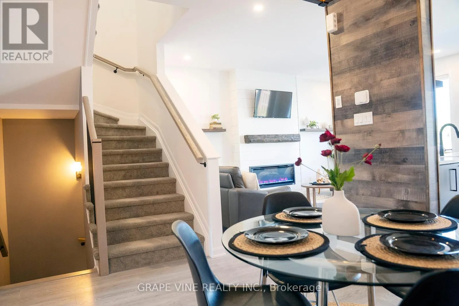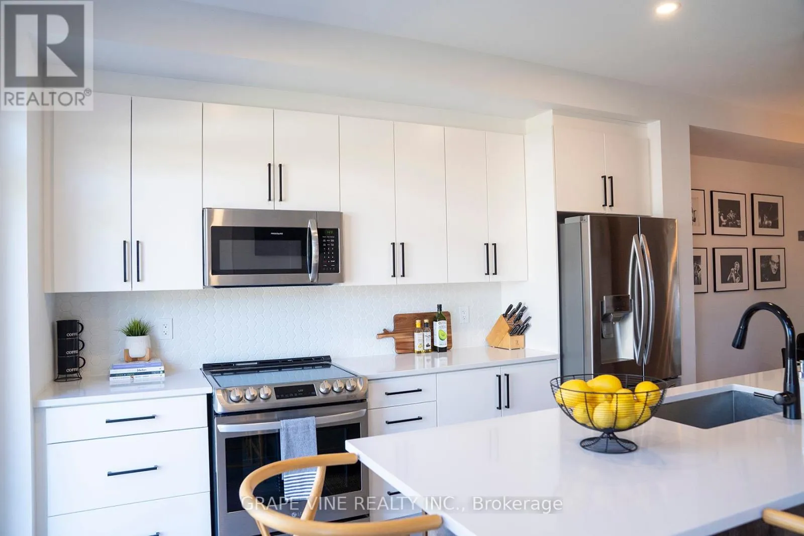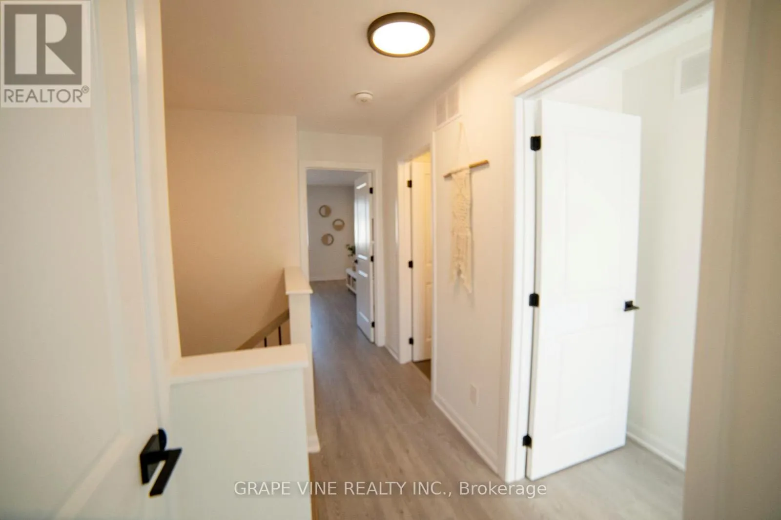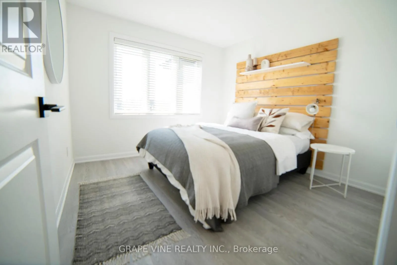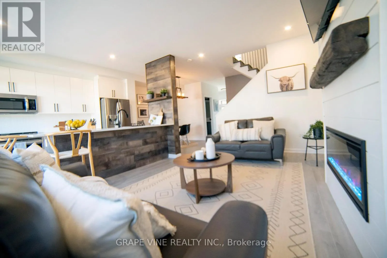 Cross Streets: Robin Easey. ** Directions: Located in the beautiful Quinn's Pointe Community near Greenbank and Barnsdale. Turn from Greenbank onto Cappamore, right onto Robin Easey, left onto Caltra Cres. Move-in ready! Welcome to this beautiful, newly built (2021) and upgraded 3 bedroom contemporary freehold townhome showcasing over $60,000 in premium upgrades. Enjoy high-end flooring throughout, including the finished basement, and a bright, open-concept layout perfect for modern living. The chef's kitchen features quartz countertops, an oversized island, sleek backsplash, and stainless steel appliances-ideal for entertaining. The living room boasts large windows and a custom gas fireplace with a rustic beam mantel and stylish board-and-batten detail. Upstairs, the primary suite offers a walk-in closet and spa-inspired ensuite, while two additional south-facing bedrooms share a beautifully upgraded full bath. Additional highlights include quartz counters in all baths, pot lights, California shutters, custom blinds, iron spindle staircase, upgraded lighting, spacious garage, and more. Backing onto single-family homes and steps from schools, parks, transit, shopping, and the Minto Rec Centre, this stylish, sun-filled home in Quinn's Pointe/Half Moon Bay is the perfect blend of comfort and sophistication. (id:27476)