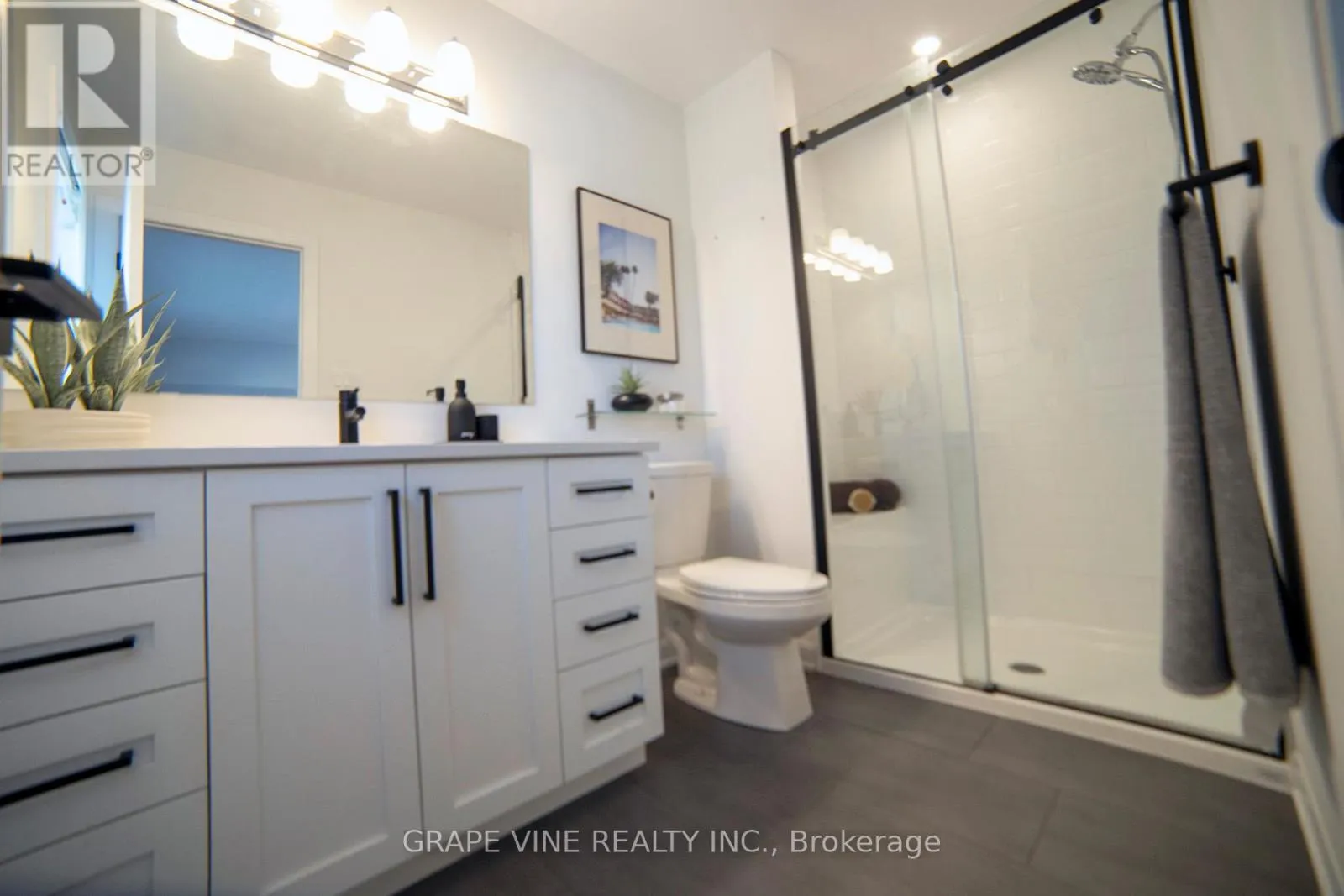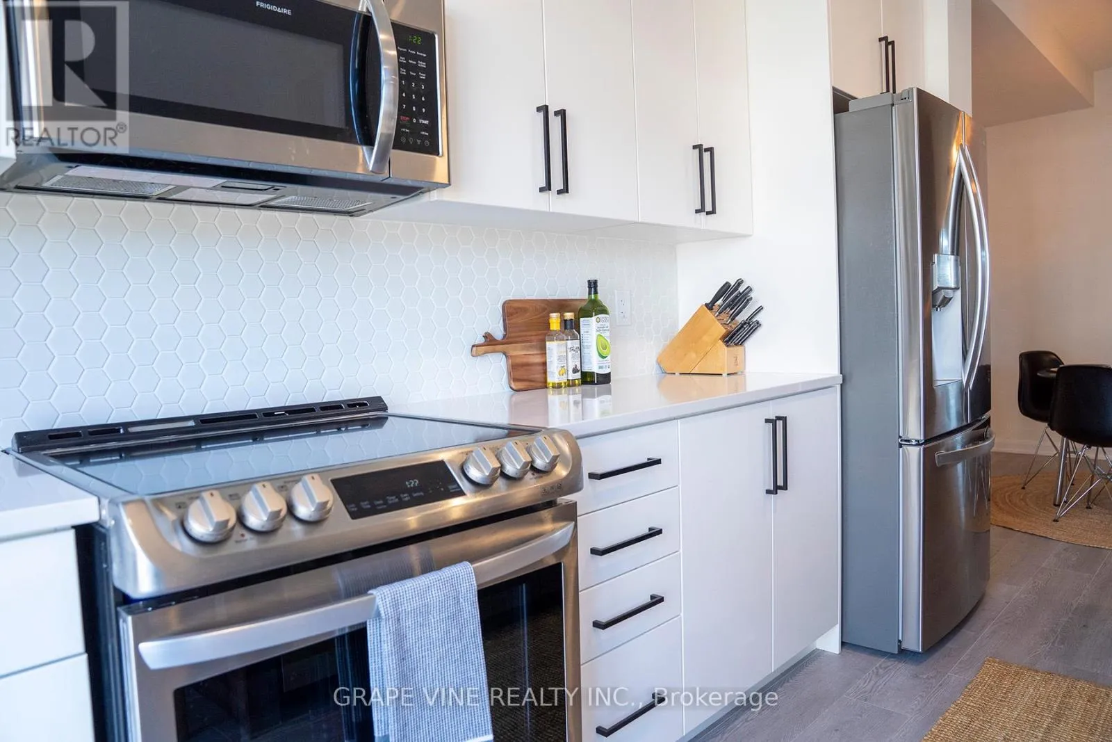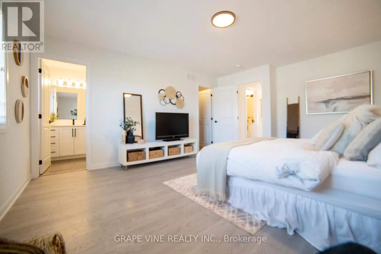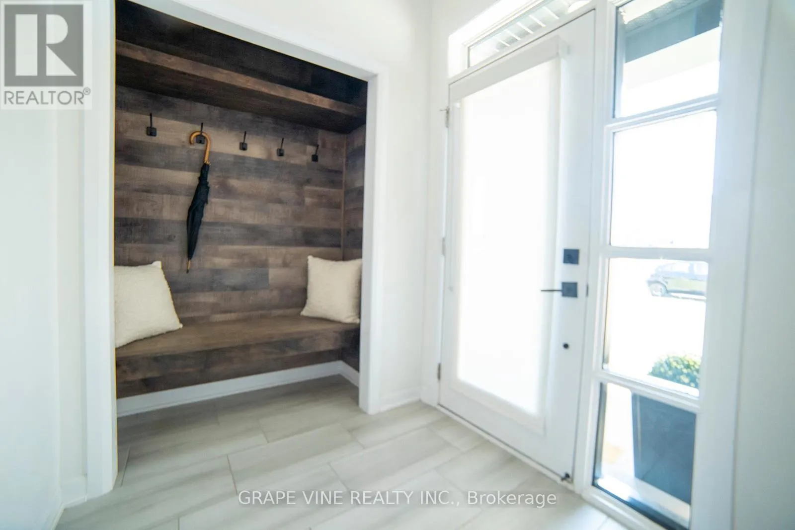 Cross Streets: Robin Easey. ** Directions: Located in the beautiful Quinn's Pointe Community near Greenbank and Barnsdale. Turn from Greenbank onto Cappamore, right onto Robin Easey, left onto Caltra Cres. Move-in ready! Welcome to this beautiful, newly built (2021) and upgraded 3 bedroom contemporary freehold townhome showcasing over $60,000 in premium upgrades. Enjoy high-end flooring throughout, including the finished basement, and a bright, open-concept layout perfect for modern living. The chef's kitchen features quartz countertops, an oversized island, sleek backsplash, and stainless steel appliances-ideal for entertaining. The living room boasts large windows and a custom gas fireplace with a rustic beam mantel and stylish board-and-batten detail. Upstairs, the primary suite offers a walk-in closet and spa-inspired ensuite, while two additional south-facing bedrooms share a beautifully upgraded full bath. Additional highlights include quartz counters in all baths, pot lights, California shutters, custom blinds, iron spindle staircase, upgraded lighting, spacious garage, and more. Backing onto single-family homes and steps from schools, parks, transit, shopping, and the Minto Rec Centre, this stylish, sun-filled home in Quinn's Pointe/Half Moon Bay is the perfect blend of comfort and sophistication. (id:27476)