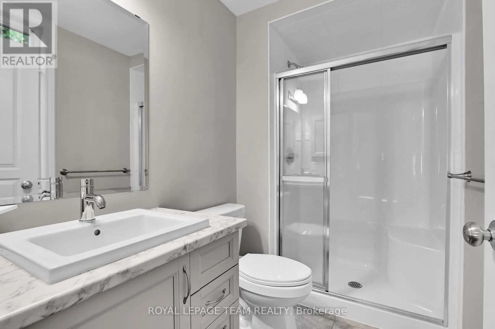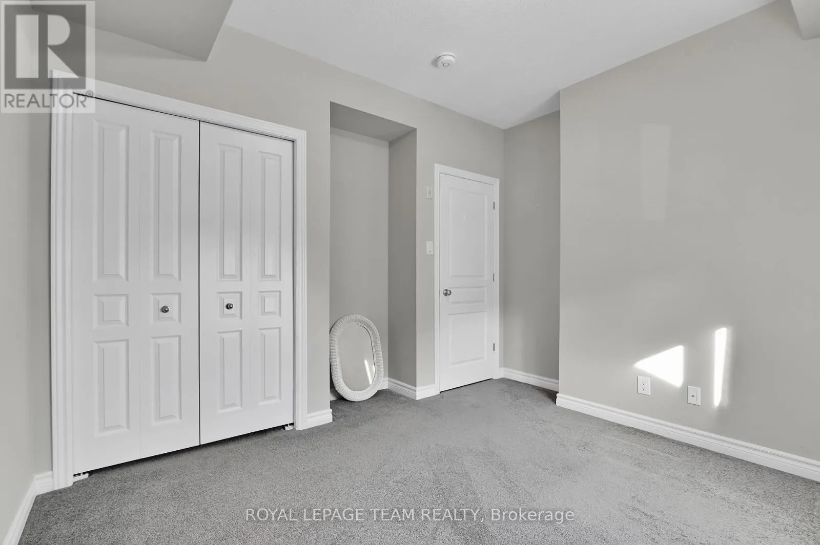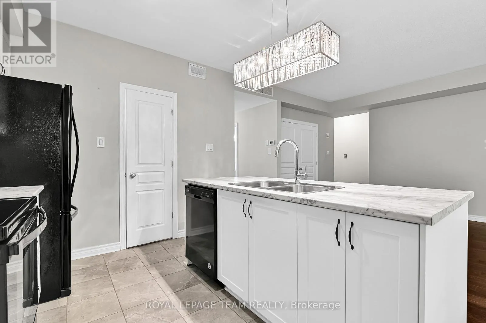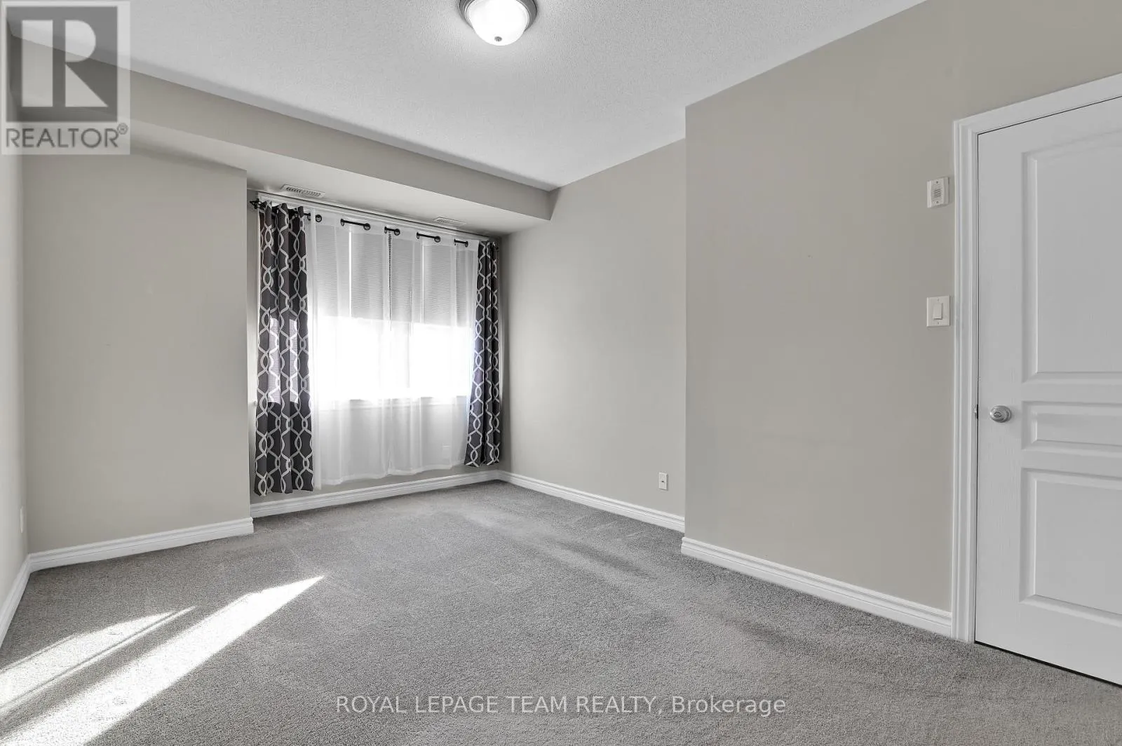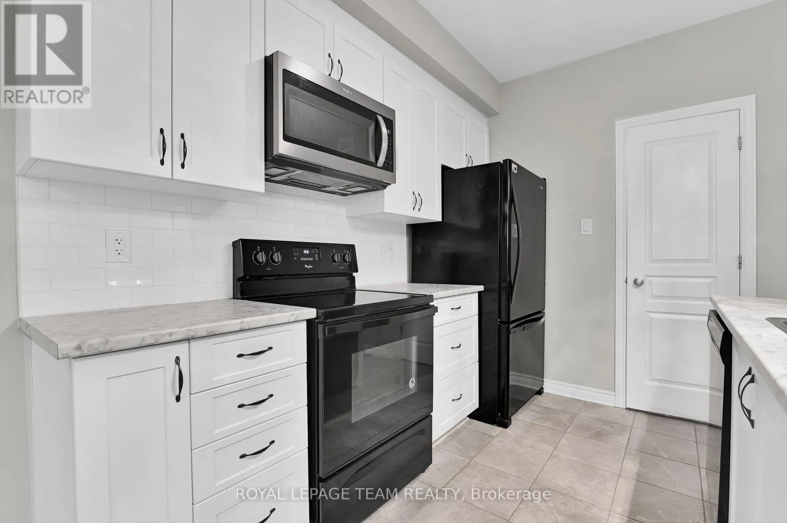 Cross Streets: Earl Armstrong & Canyon Walk. ** Directions: Earl Armstrong to Canyon Walk to Beryl Pvt. Exceptional 2 bedroom, 2 bath, END UNIT backing onto beautiful trees and with a private balcony to sit and enjoy nature. There are so many great features of this particular unit and with it's ideal location, there is only 1 shared wall which is in the foyer. The open concept plan showcases the spaciousness (and 9' ceilings) and the natural light that fills the home. Beautiful hardwood flooring in the primary living areas and cozy carpeting in both bedrooms, all in excellent condition. The bright European style designer kitchen offers a convenient pantry and large breakfast bar at the center island. Gorgeous, upgraded lighting adds to the comfort of the tasteful decor. The Primary bedroom is spacious, and provides a walk-in closet and lovely 3 piece ensuite with walk-in shower. There is also a roomy second bedroom and 4 piece main bathroom with tub / shower combo complete with subway tiles. Enjoy the in-unit, full size washer / dryer and handy linen closet. This condo has 2 separate entries and is only 1 short flight of stairs up from the front entrance. The second entrance has ramp access and a stairlift along with an extra wide door making access easier for those with mobility restrictions. The Primary bedroom and main bathroom also have wider doorways (33"). TWO PARKING SPOTS, one directly outside the front door! An easy walk to the new O-Train, OC Transpo bus, and loads of new retail outlets. This condo has Energy Star rating with low E-Argon windows, higher insulation in exterior walls and high efficiency furnace. Water is included in the condo fees. No smoking permitted in units or in common areas. Pets are allowed. Don't wait...this unit stands out, and with all the special features, it won't be around for long!! (id:27476)
