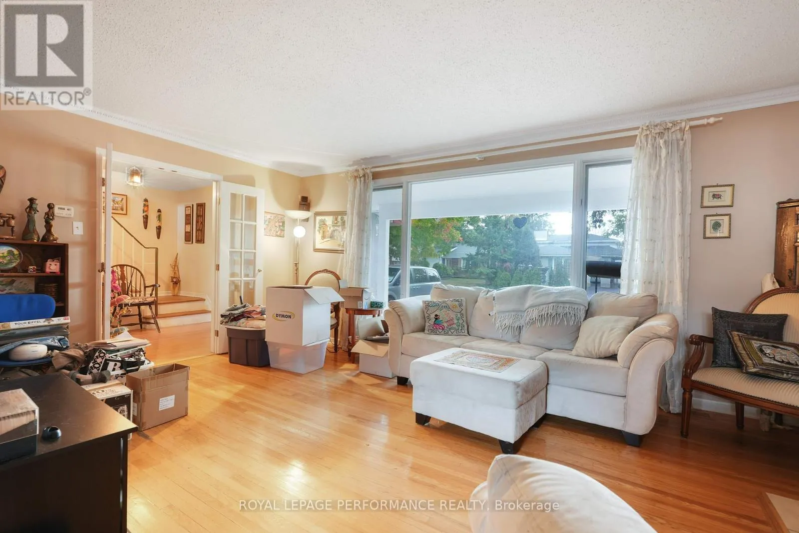 Cross Streets: Bank St/Heron Rd. ** Directions: From Bank St turn onto Anoka St. Spacious two-storey detached home. Bright main floor with large windows and hardwood throughout. Formal living room with crown moulding opens to the dining room. Generous kitchen with plenty of cabinetry and counter space. Powder room and workshop complete the main level. Upstairs offers four well-sized bedrooms, including a primary suite with 2-piece ensuite, a full main bath, and a bonus family room. Finished lower level with rec room, laundry, and utility space. Enjoy a large backyard with wooden deck, interlock patio, and ample green space. Double attached garage and prime location close to all amenities. Property is being sold AS IS WHERE IS. The home is currently being emptied and vacated. (id:27476)